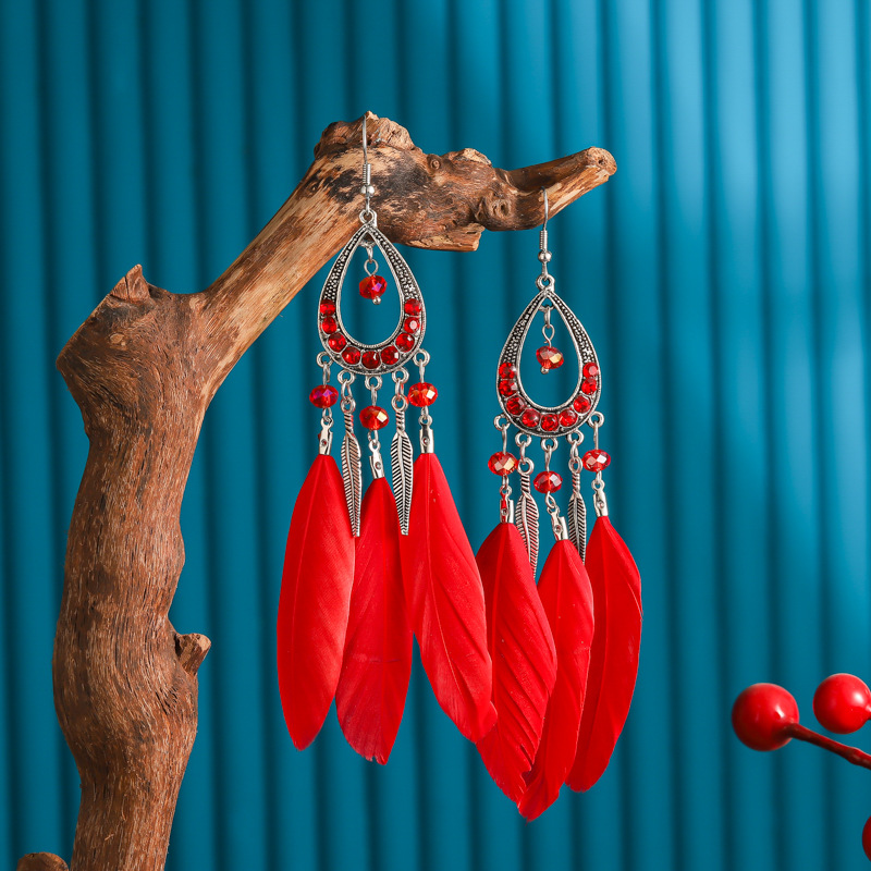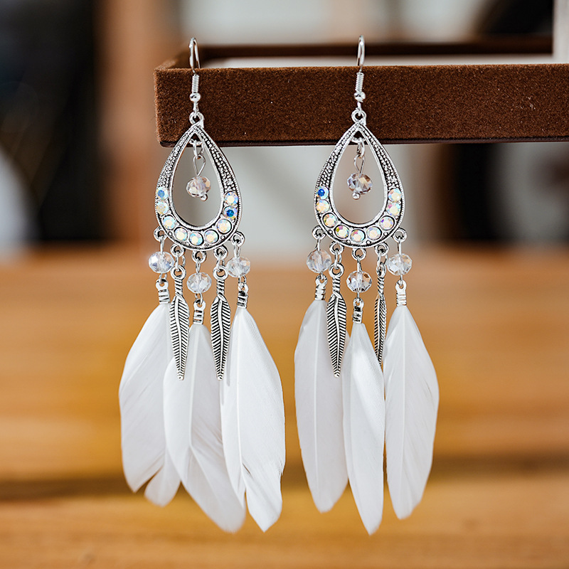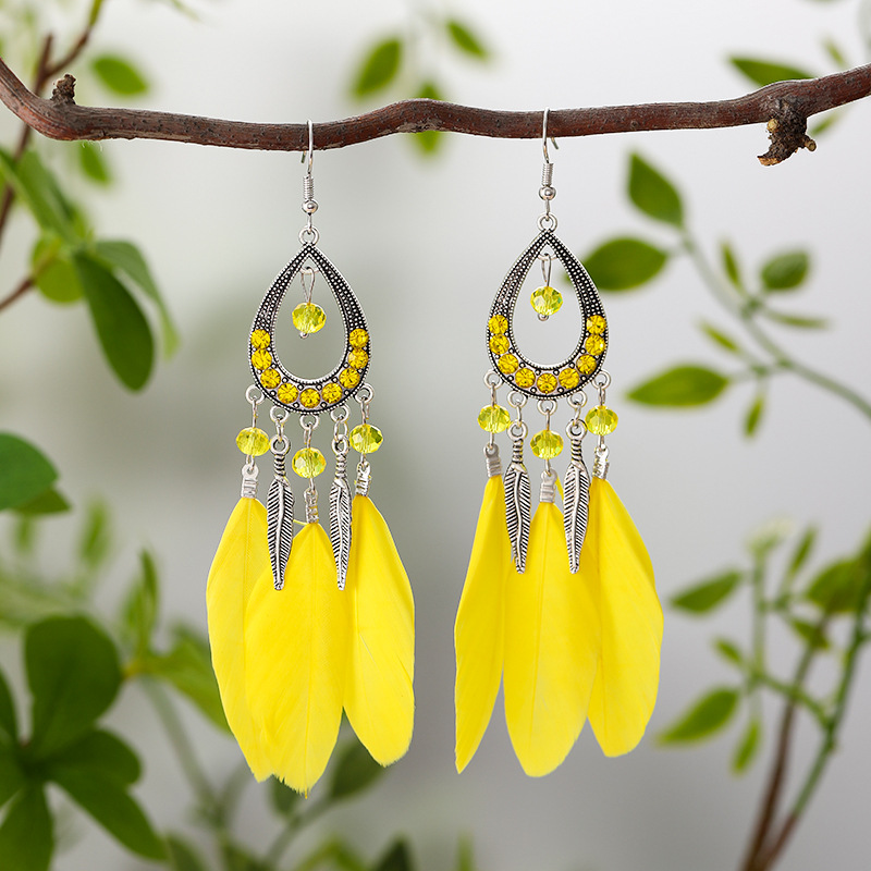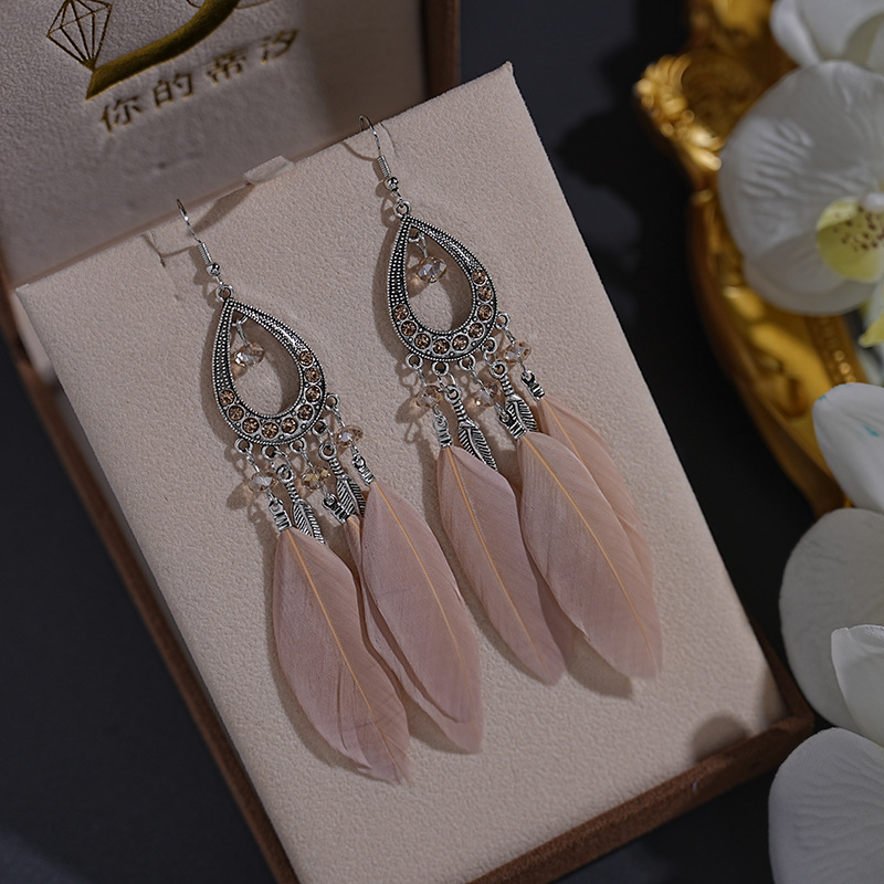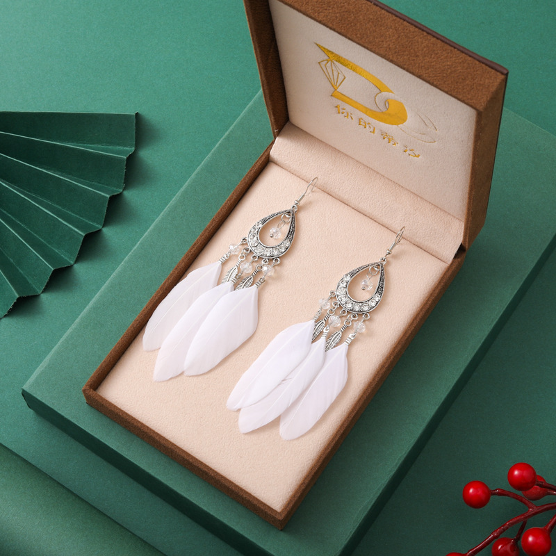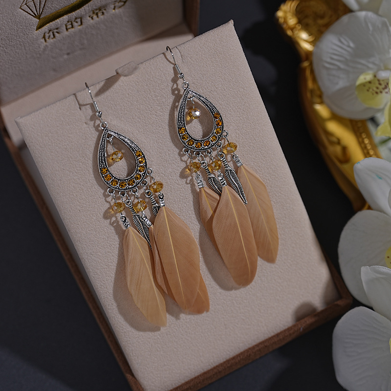 2+12 颜色 创意水晶羽毛耳环 2025你的蒂汐 复古耳饰义乌黛茜饰