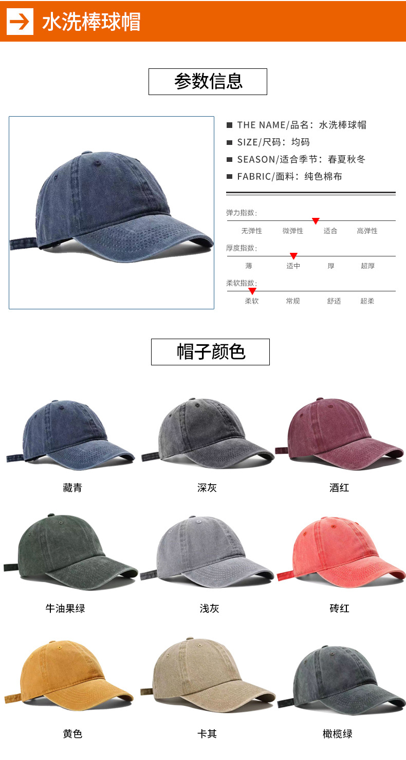 水洗纯棉鸭舌帽春夏百搭牛仔复古软顶防晒棒球帽做旧涂层水洗帽