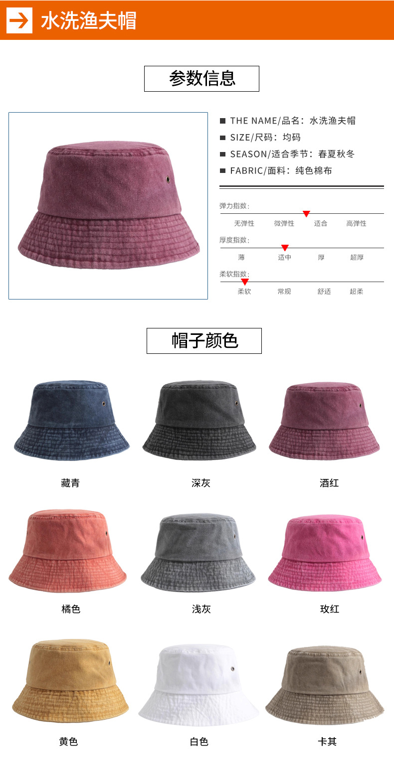 水洗做旧渔夫帽ins港风复古情侣遮阳盆帽水桶帽大头围牛仔渔夫帽