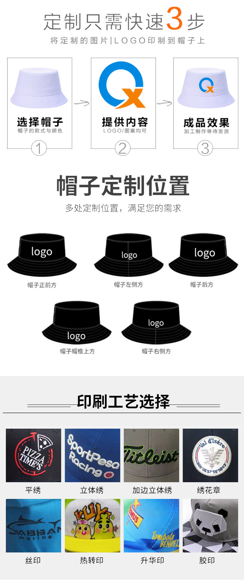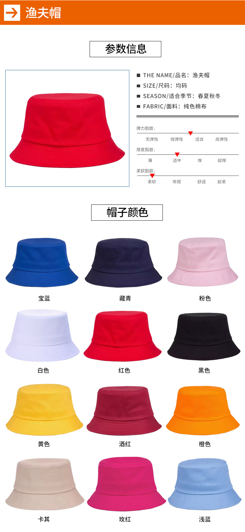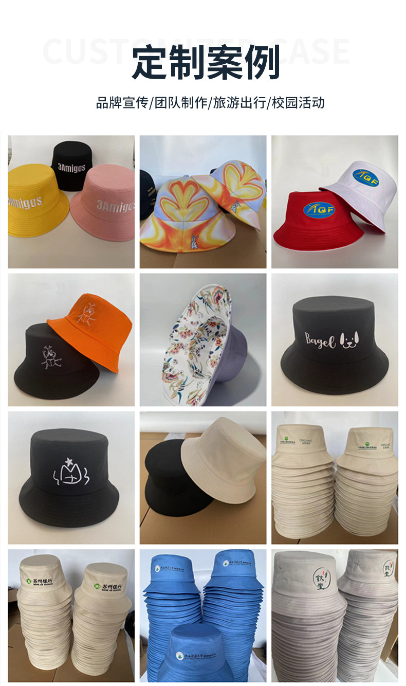 渔夫帽刺绣logo男女户外棉质时尚盆帽水桶帽沙滩出游防晒遮阳帽