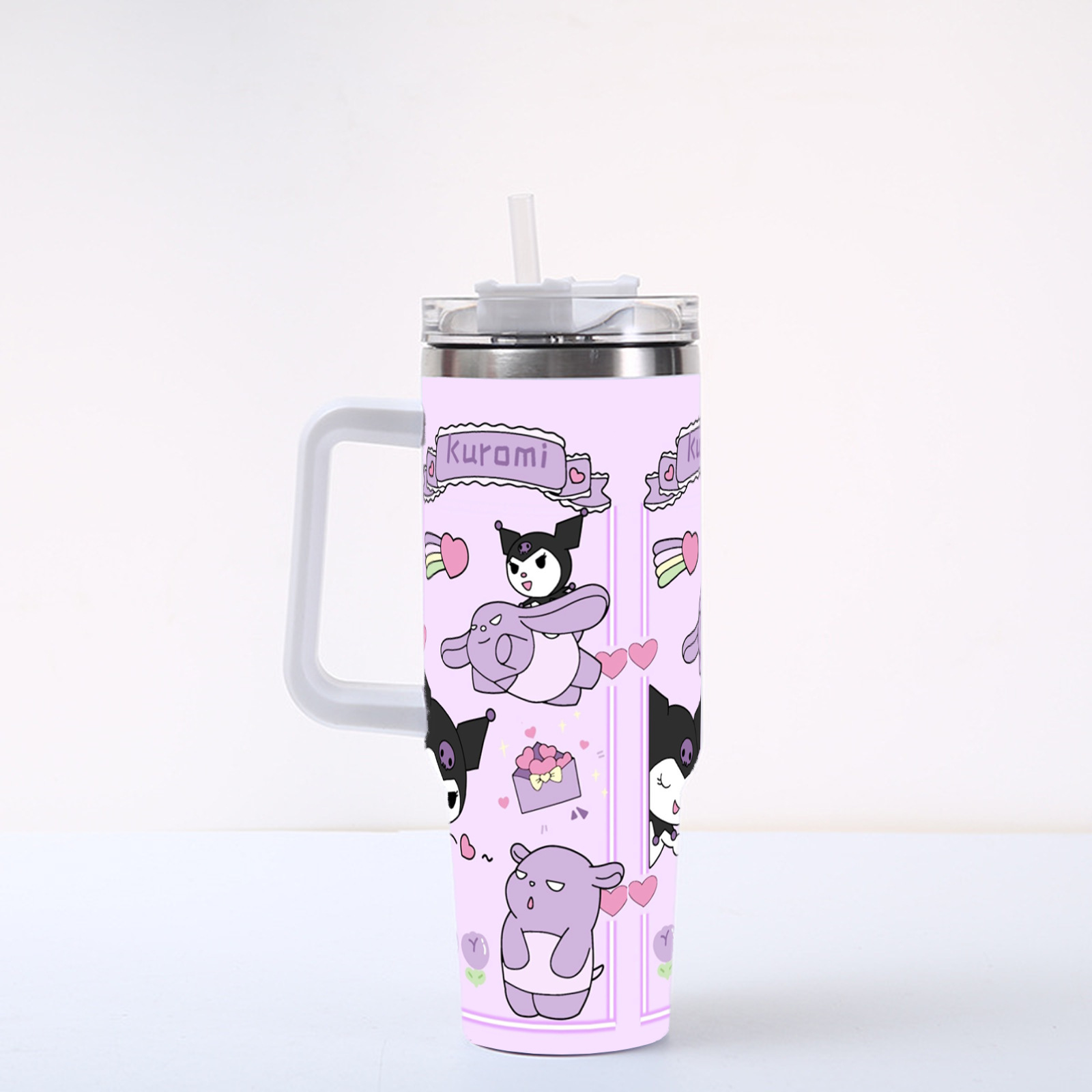 跨境亚马逊三丽鸥系列40oz汽车杯保温杯冰霸杯带把手带吸管印LOGO