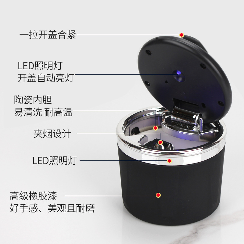 038汽车烟灰缸陶瓷内胆汽车家用带LED灯车载烟灰缸内胆陶瓷烟灰缸