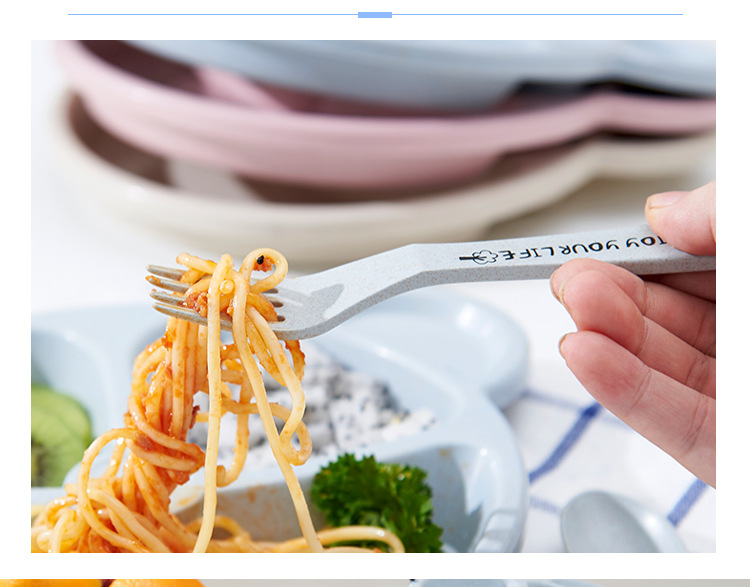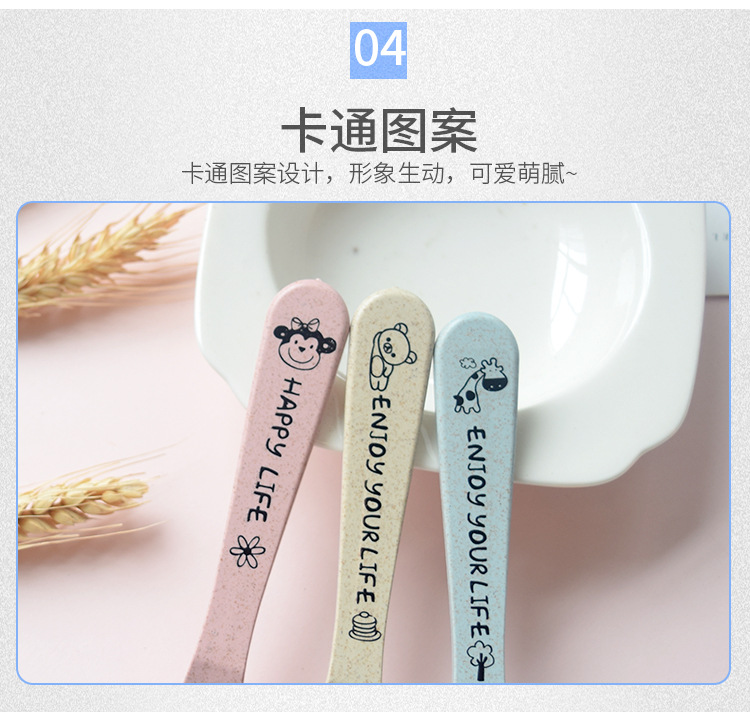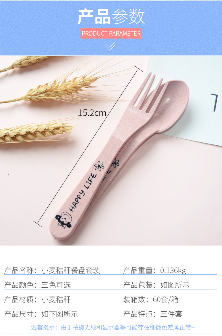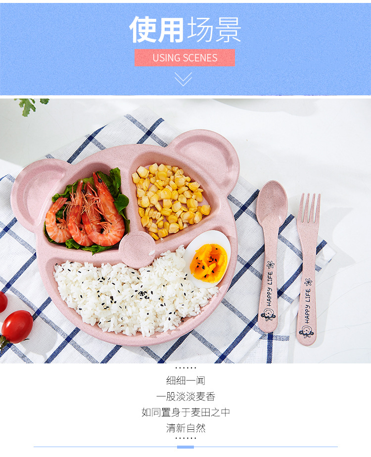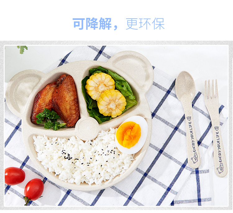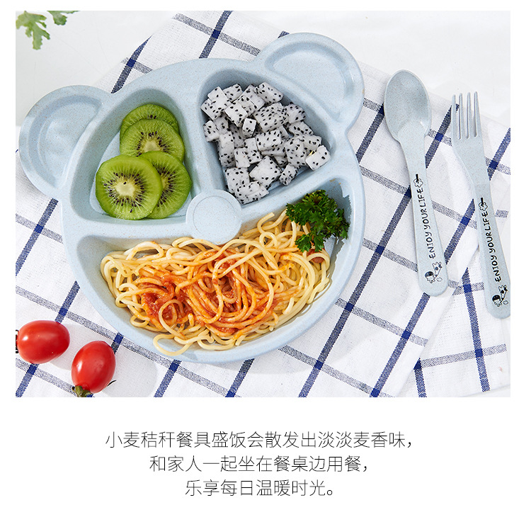 小麦秸秆卡通儿童分格餐盘吃饭幼儿园学生餐具套装3件套工厂批发
