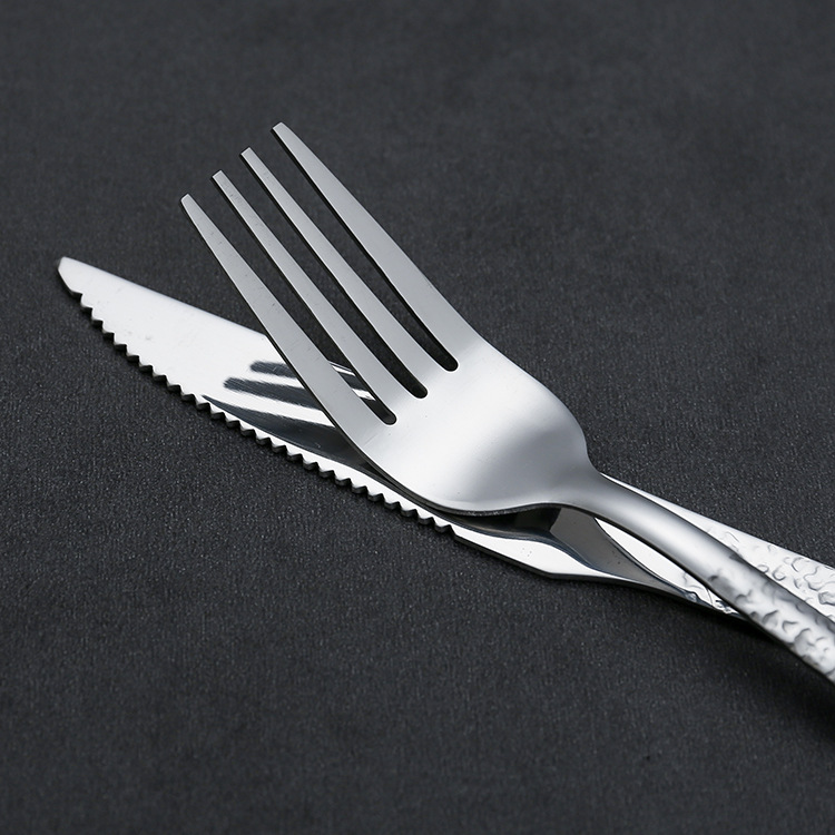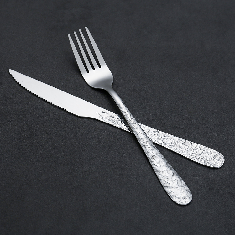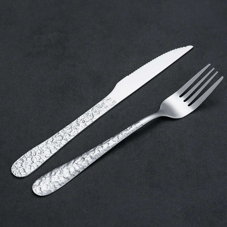 不锈钢刀叉餐具套装高颜值裂纹西餐具家用酒店长柄牛排刀叉意面叉