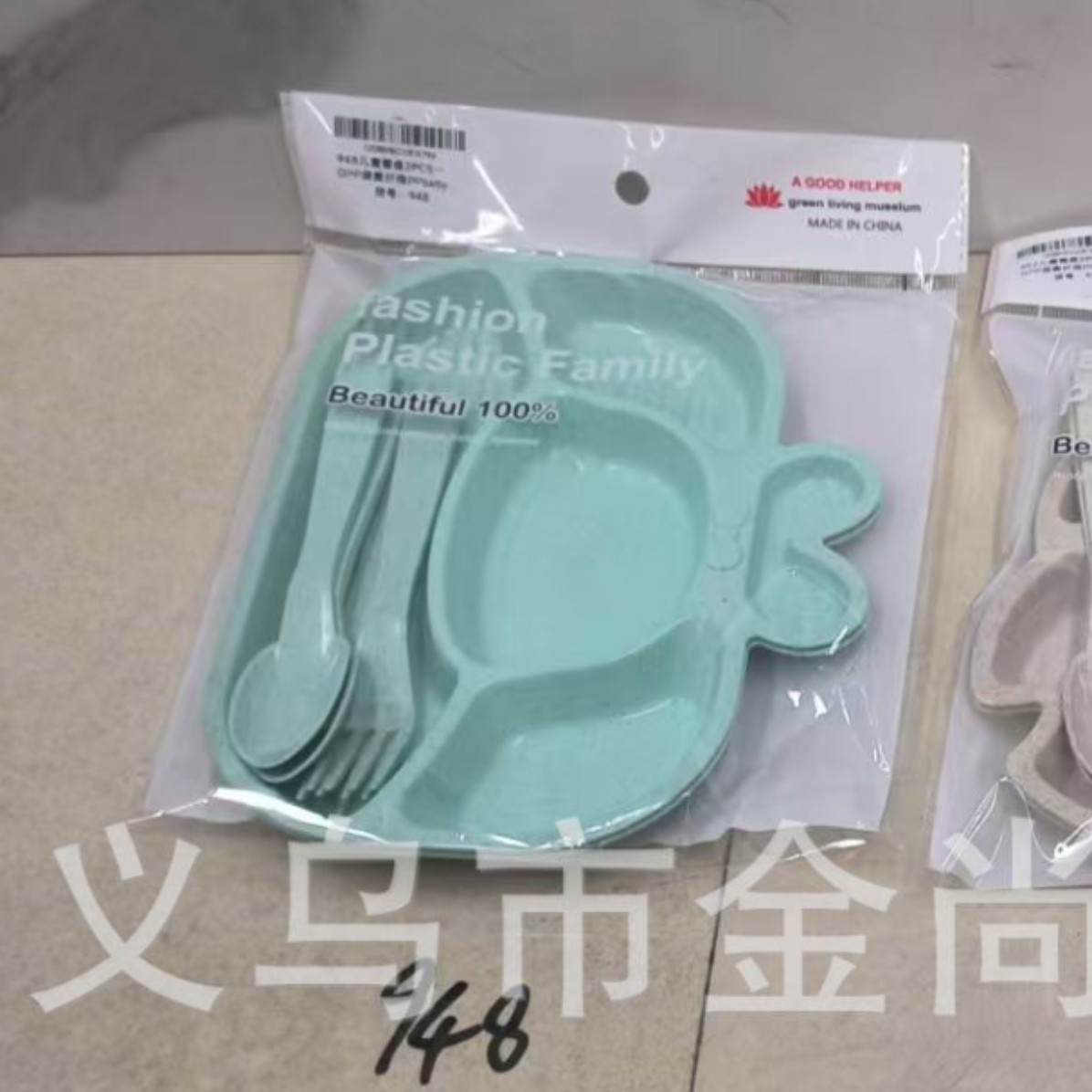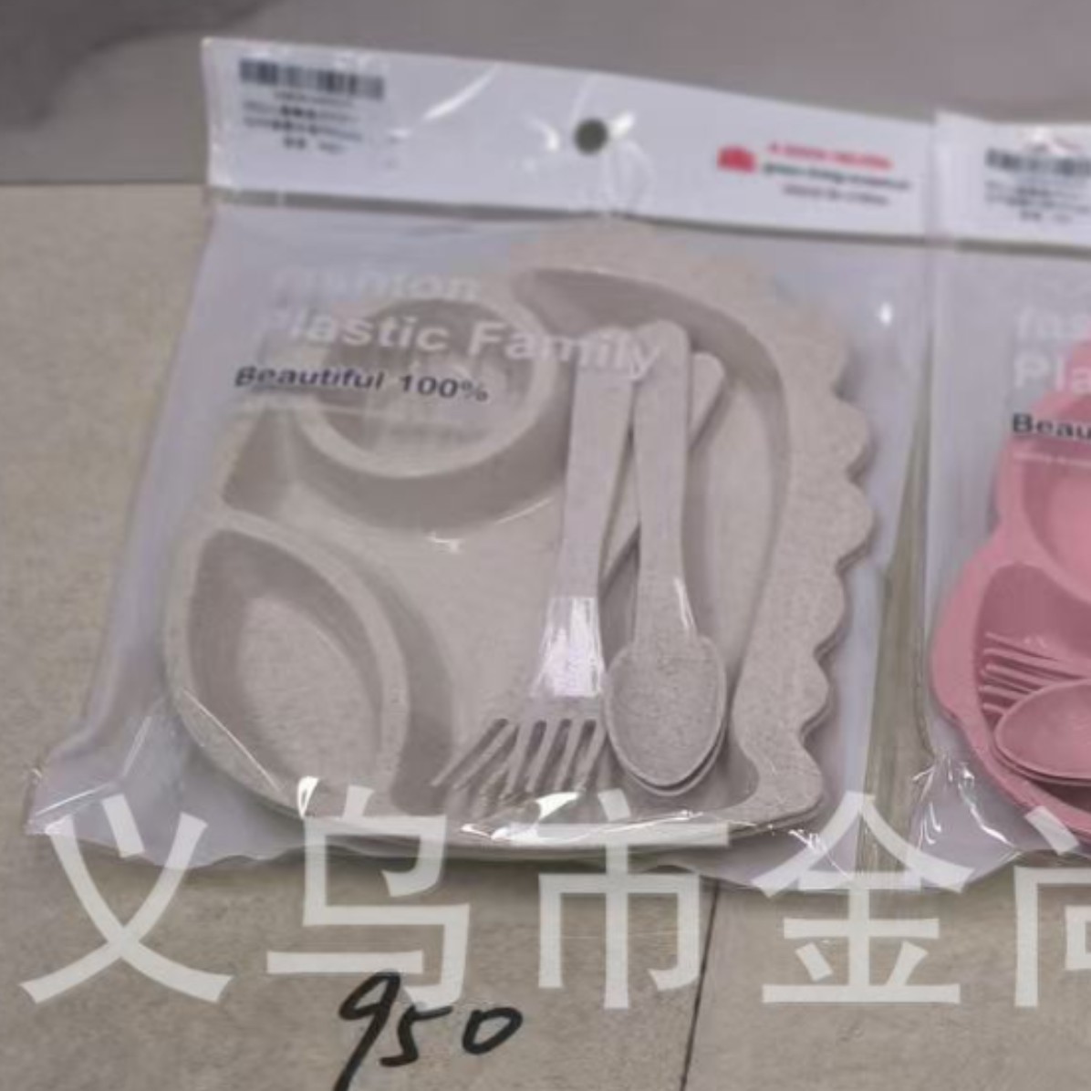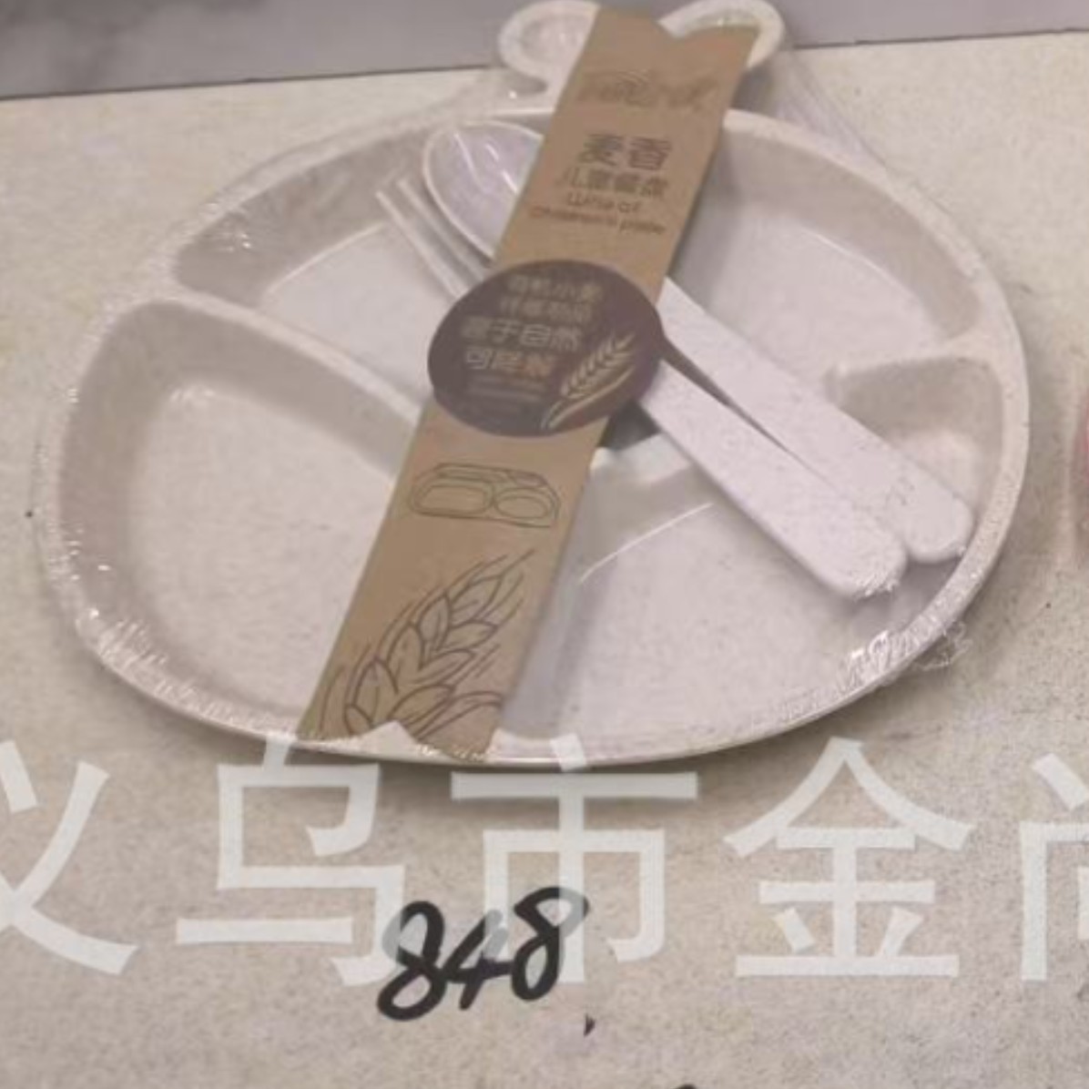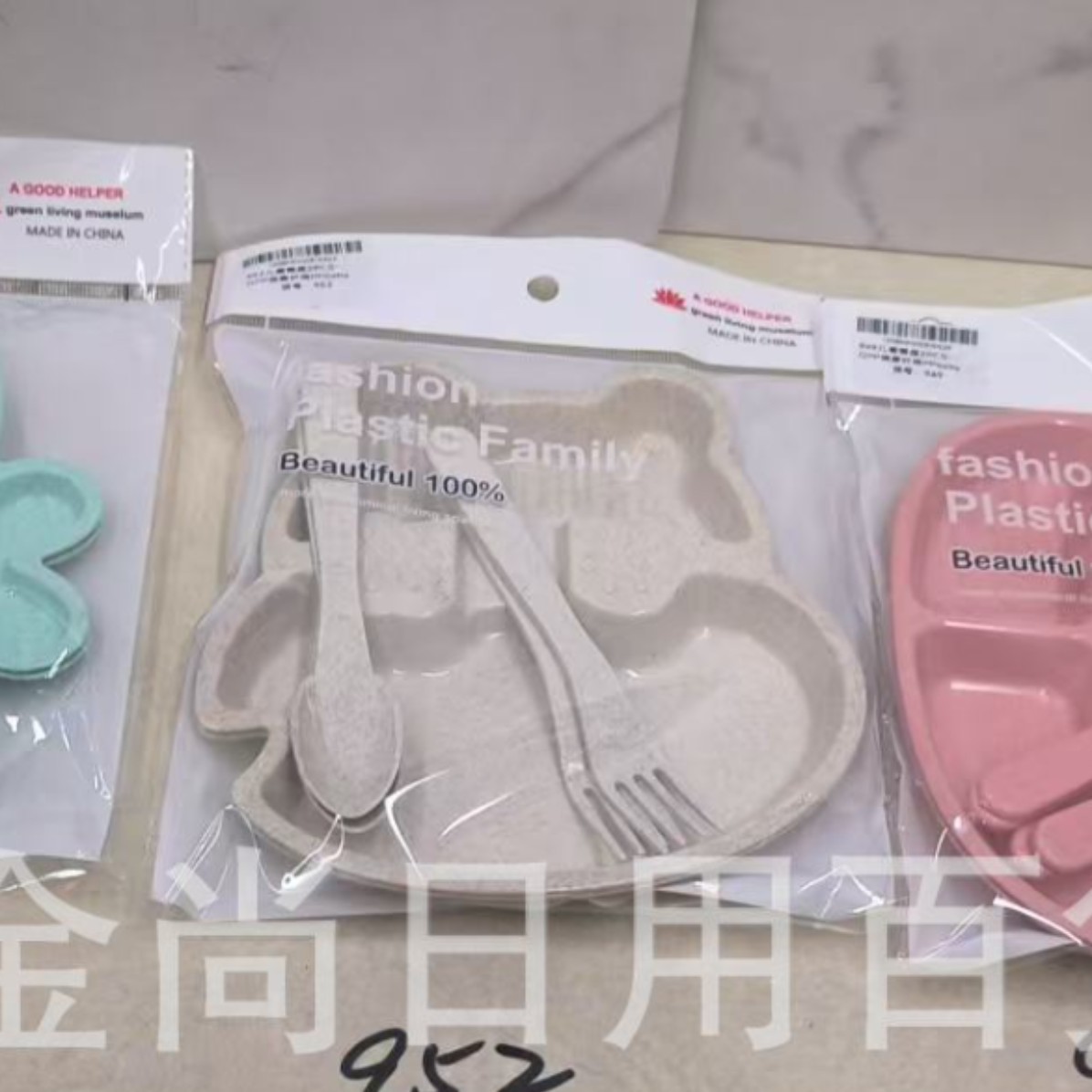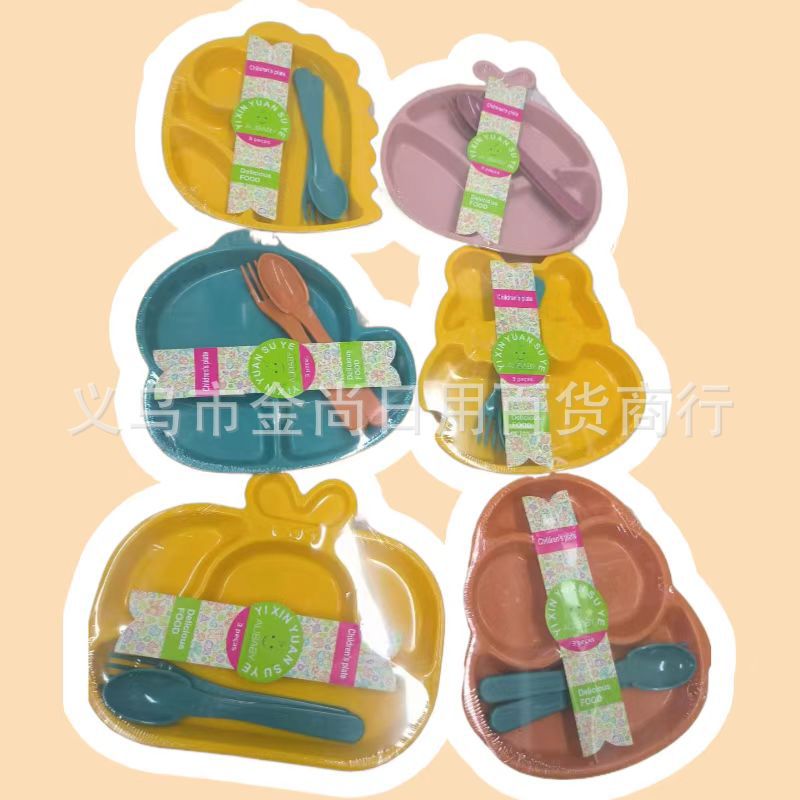 小麦秸秆卡通可爱餐盘套装 儿童分格餐具可爱餐碟叉勺三件套批发