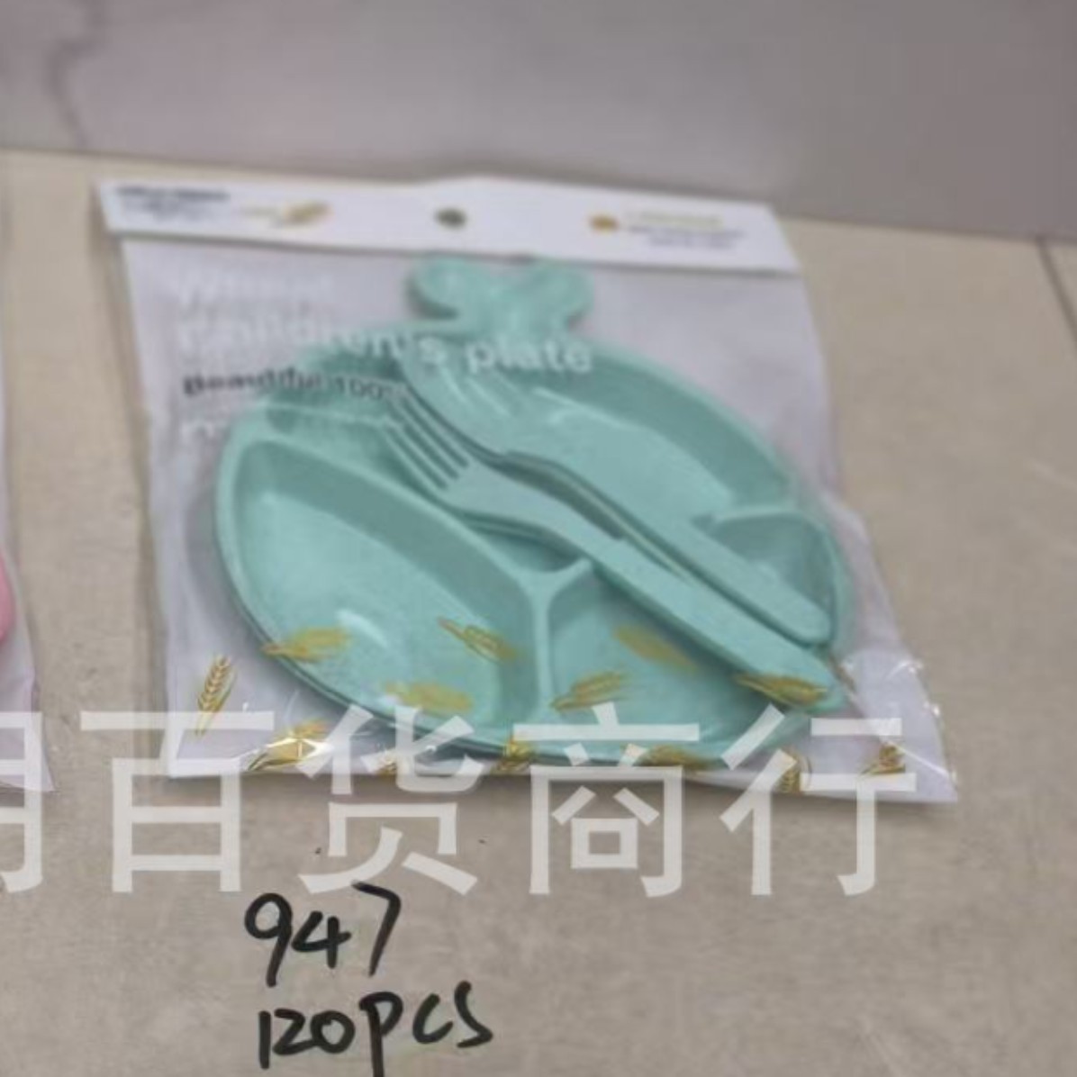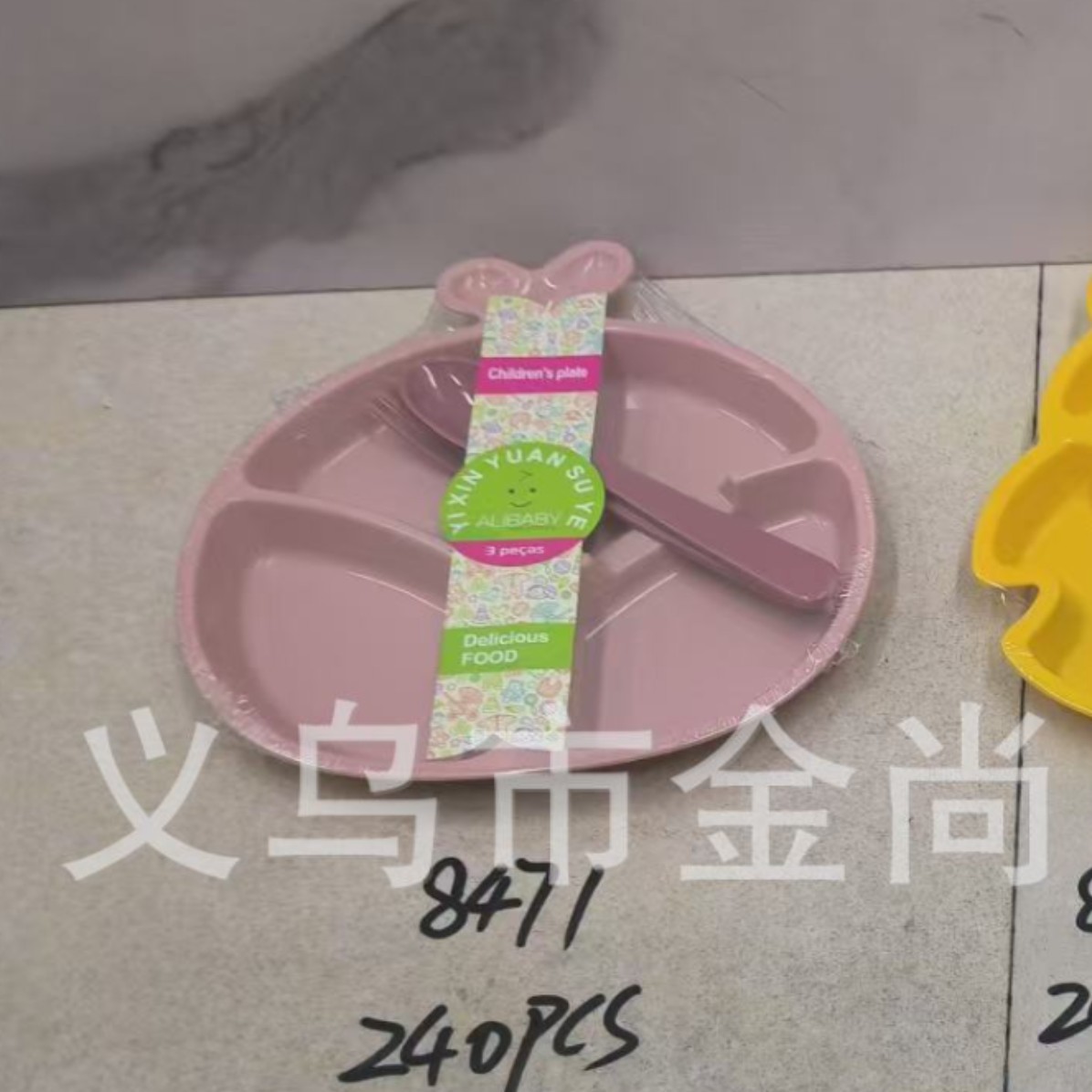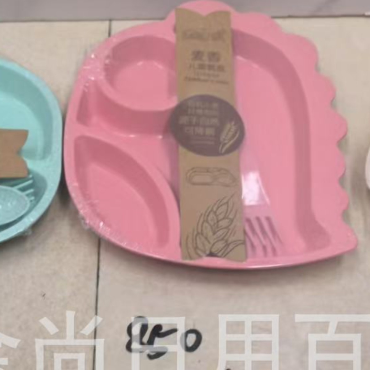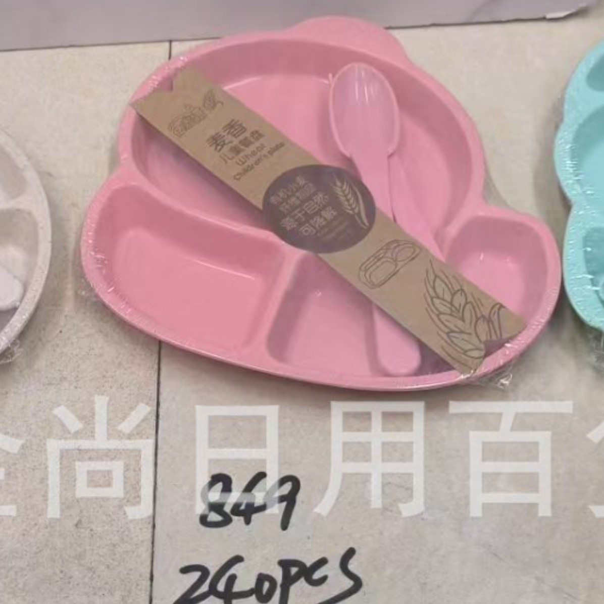 小麦秸秆卡通可爱餐盘套装 儿童分格餐具可爱餐碟叉勺三件套批发