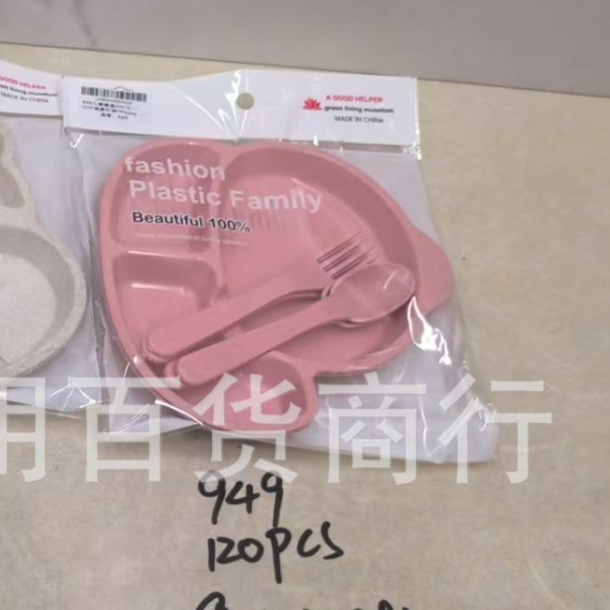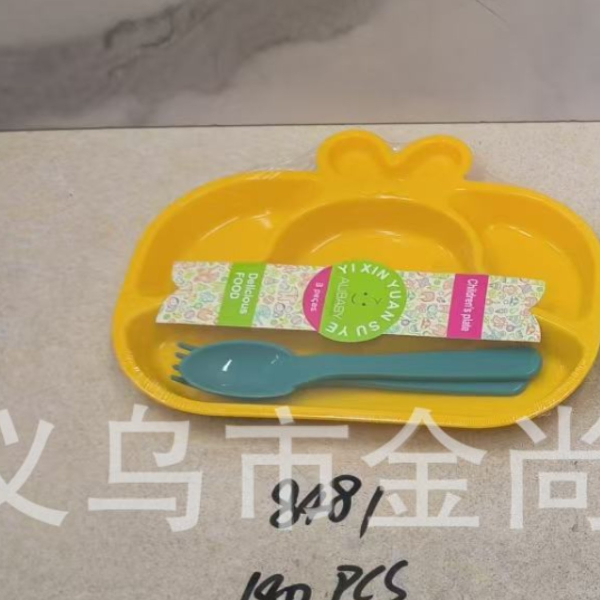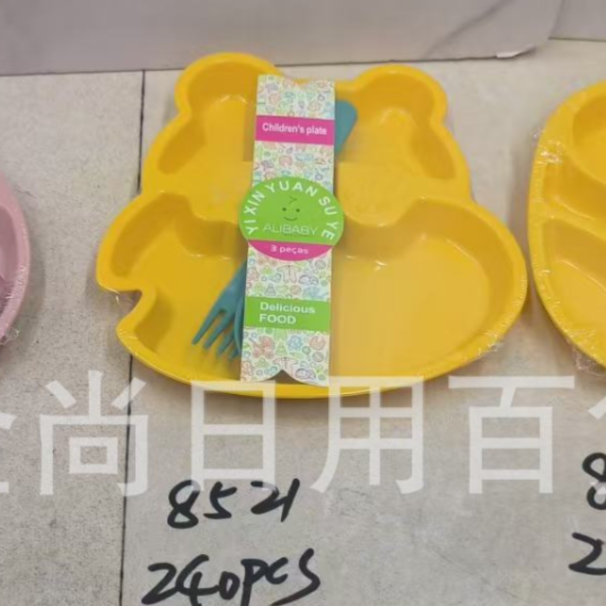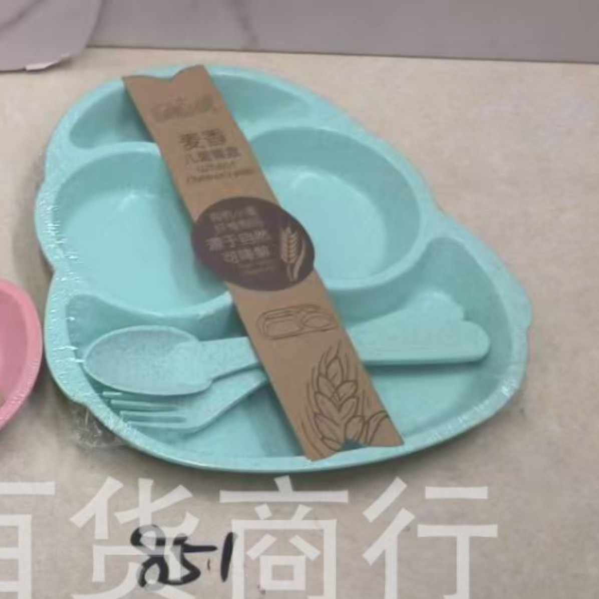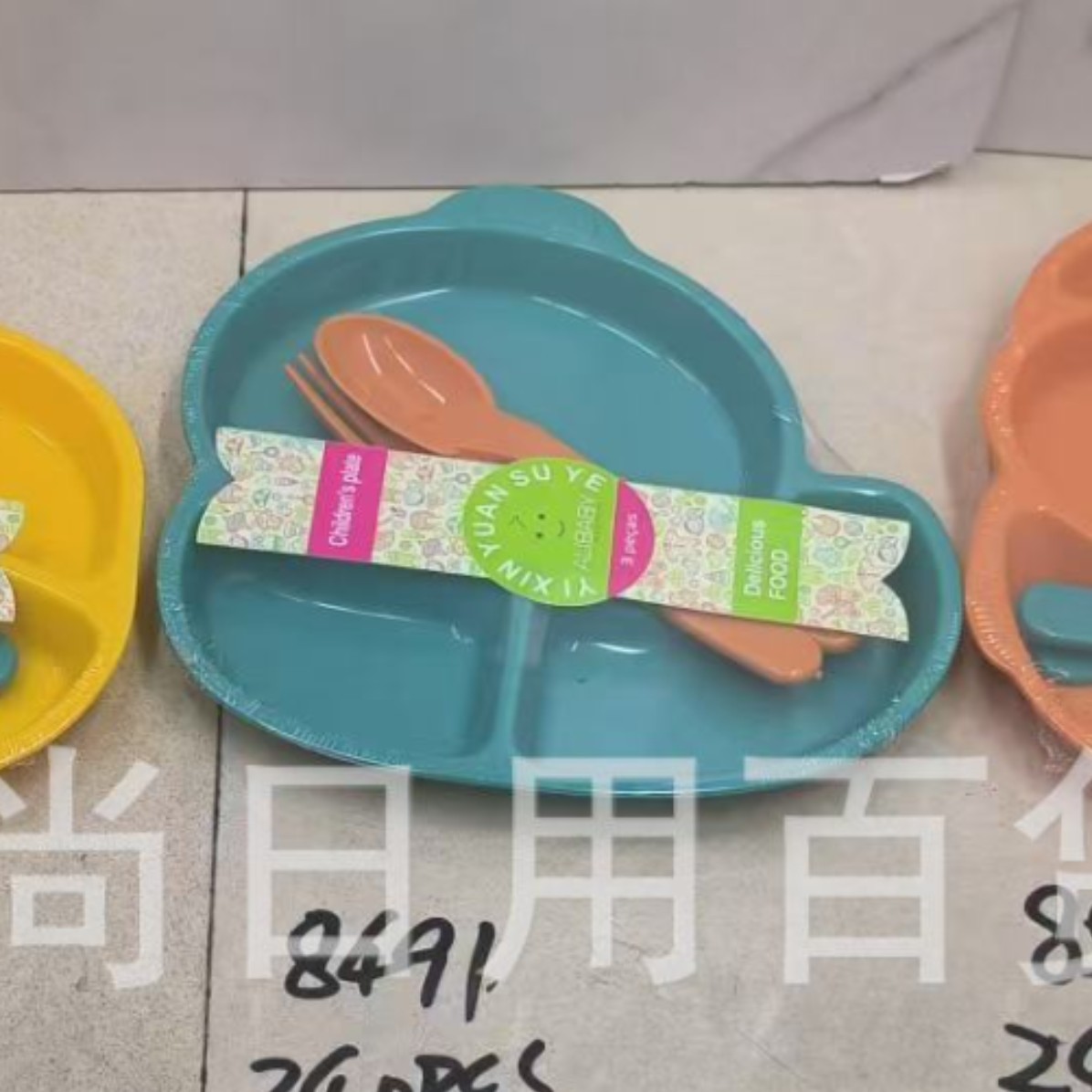 小麦秸秆卡通可爱餐盘套装 儿童分格餐具可爱餐碟叉勺三件套批发