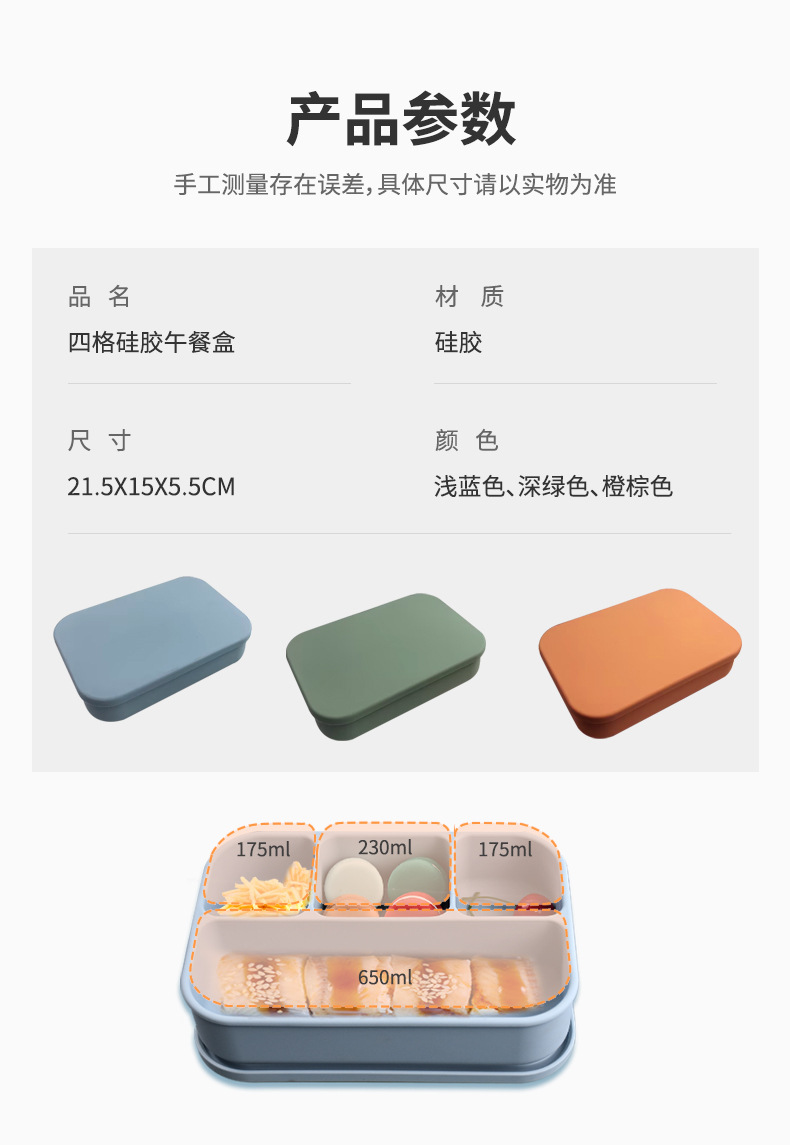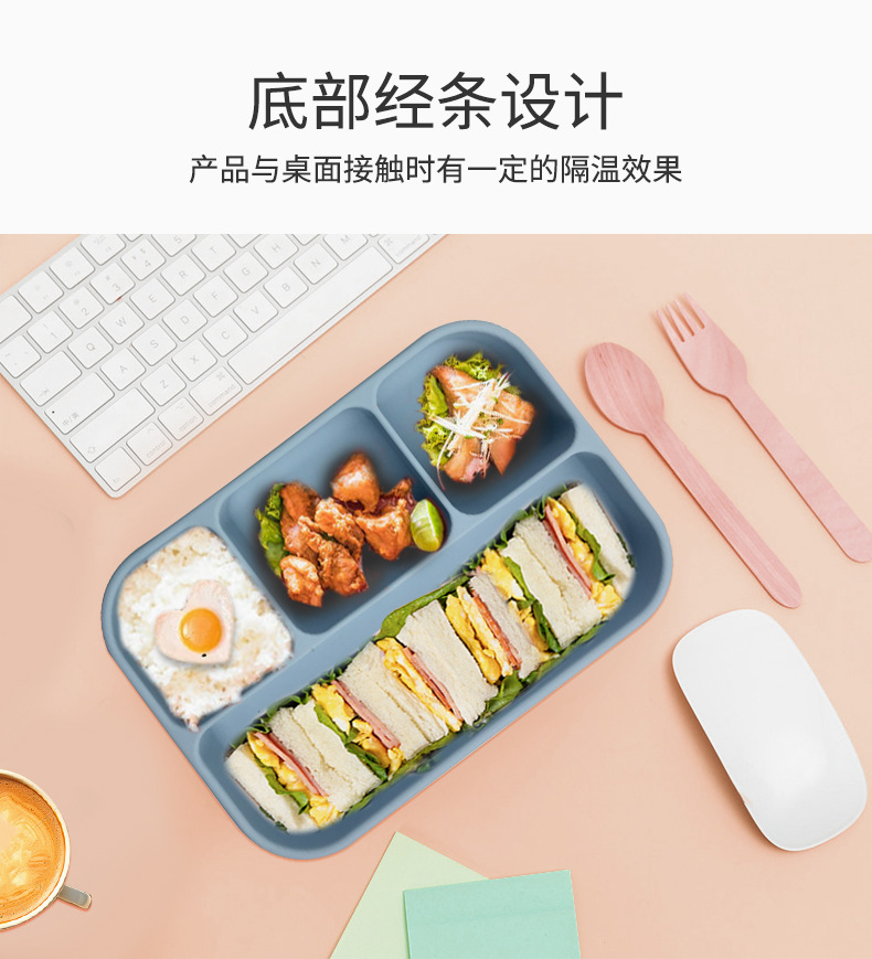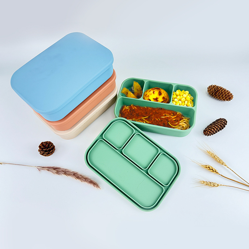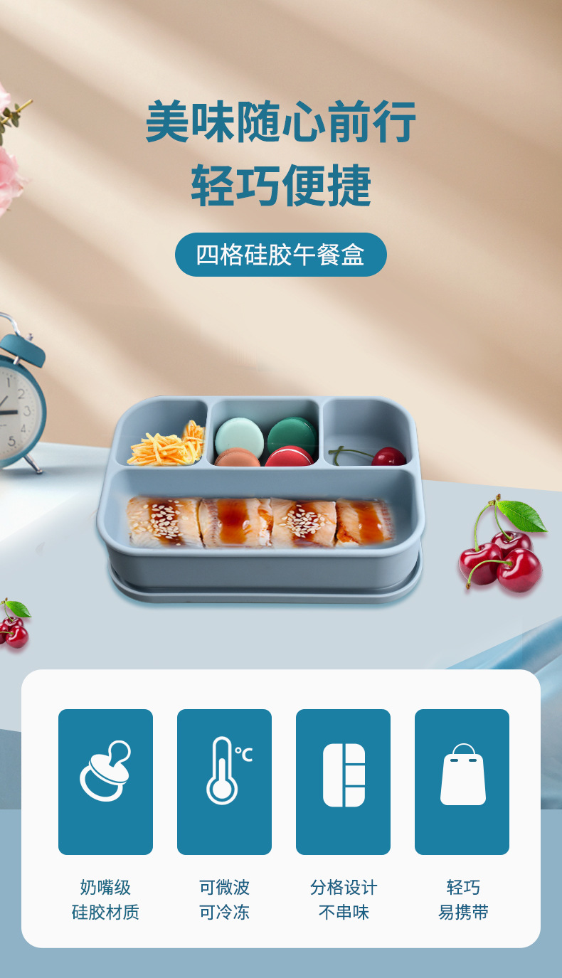 新款微波炉加热午餐盒冰箱收纳盒学生便当盒4分格食品级硅胶饭盒