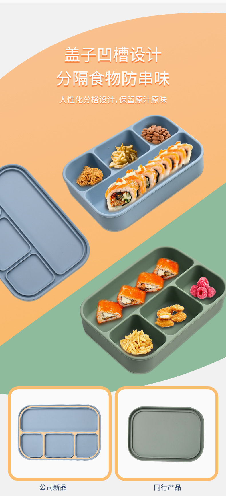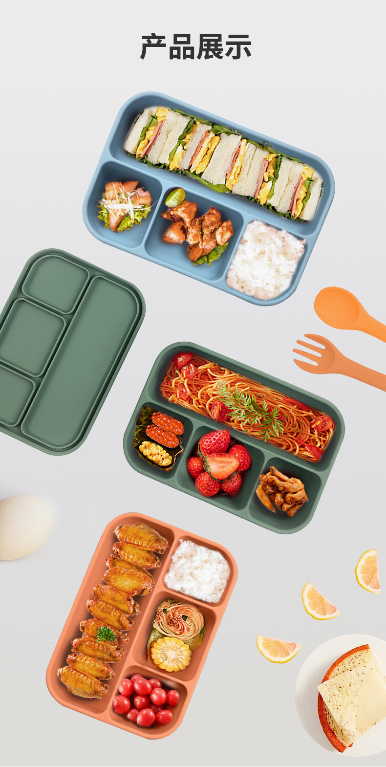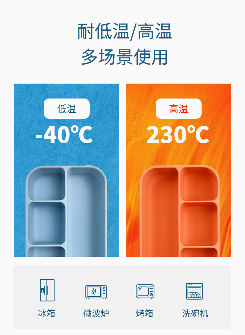 新款微波炉加热午餐盒冰箱收纳盒学生便当盒4分格食品级硅胶饭盒