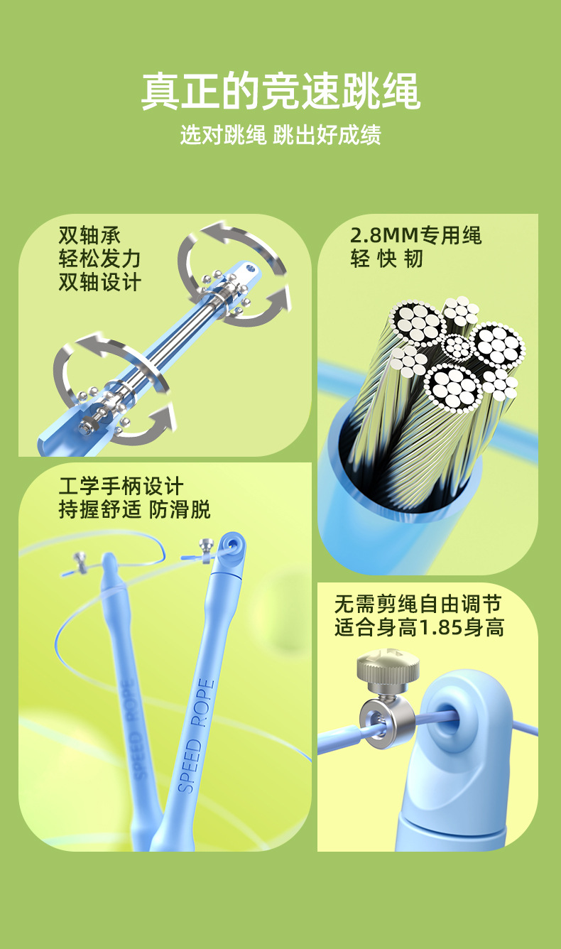 竞速跳绳儿童小学生体育中考试专用专业比赛极速度双摇钢丝长绳子