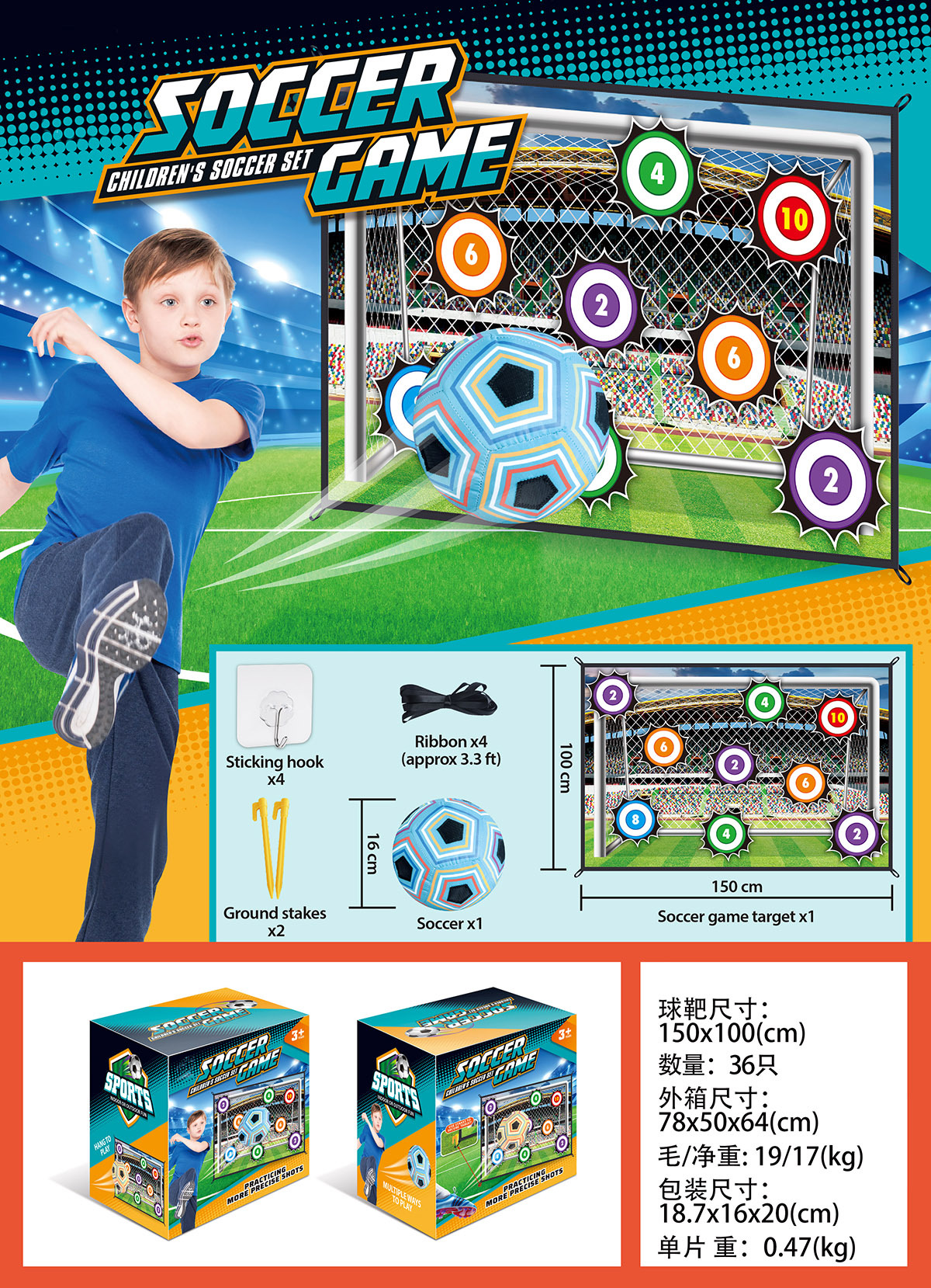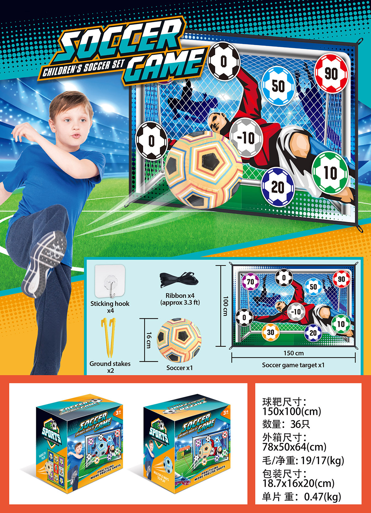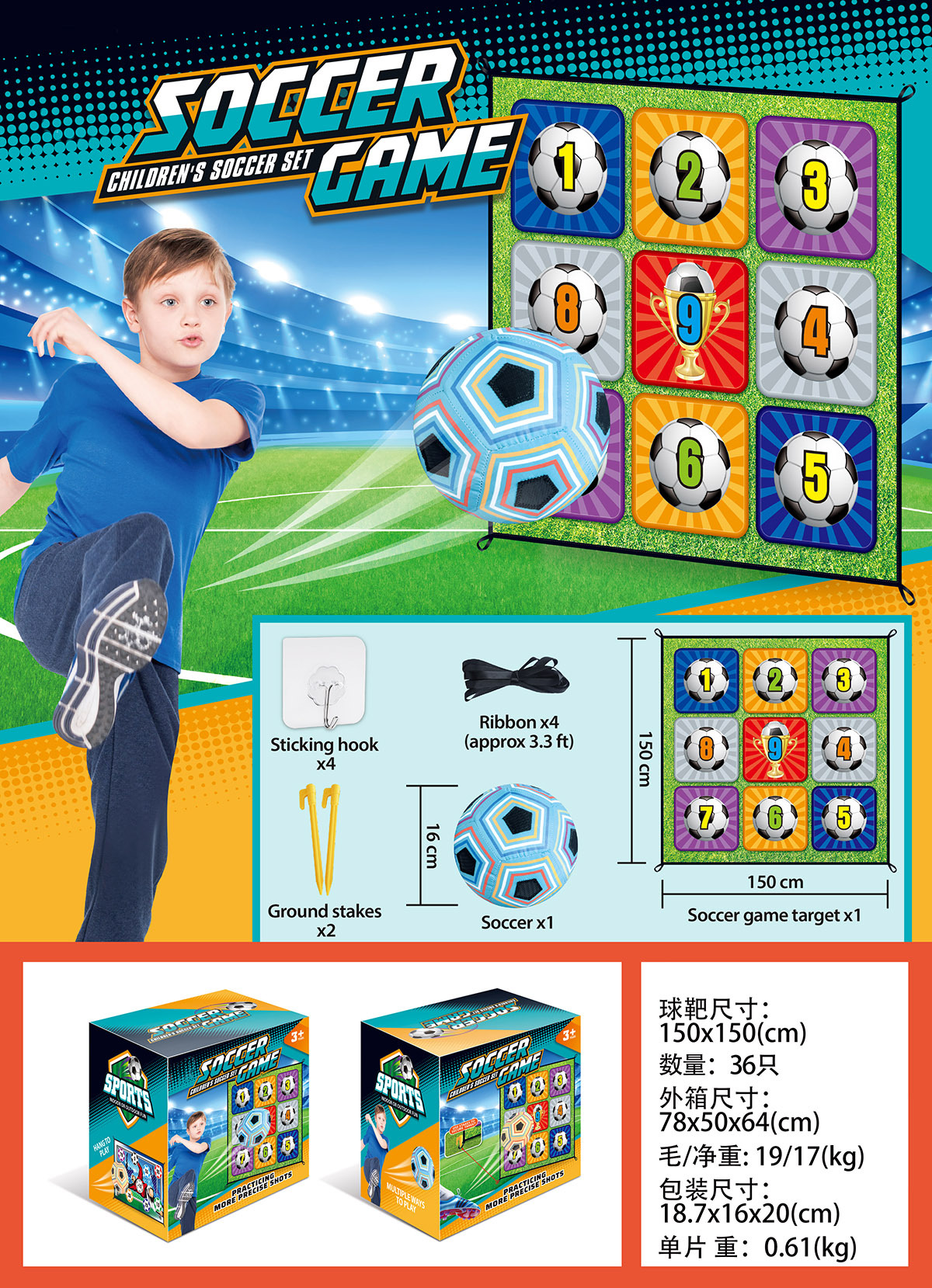 【亚马逊热卖】儿童足球游戏室内外运动足球九宫格门框体育玩具