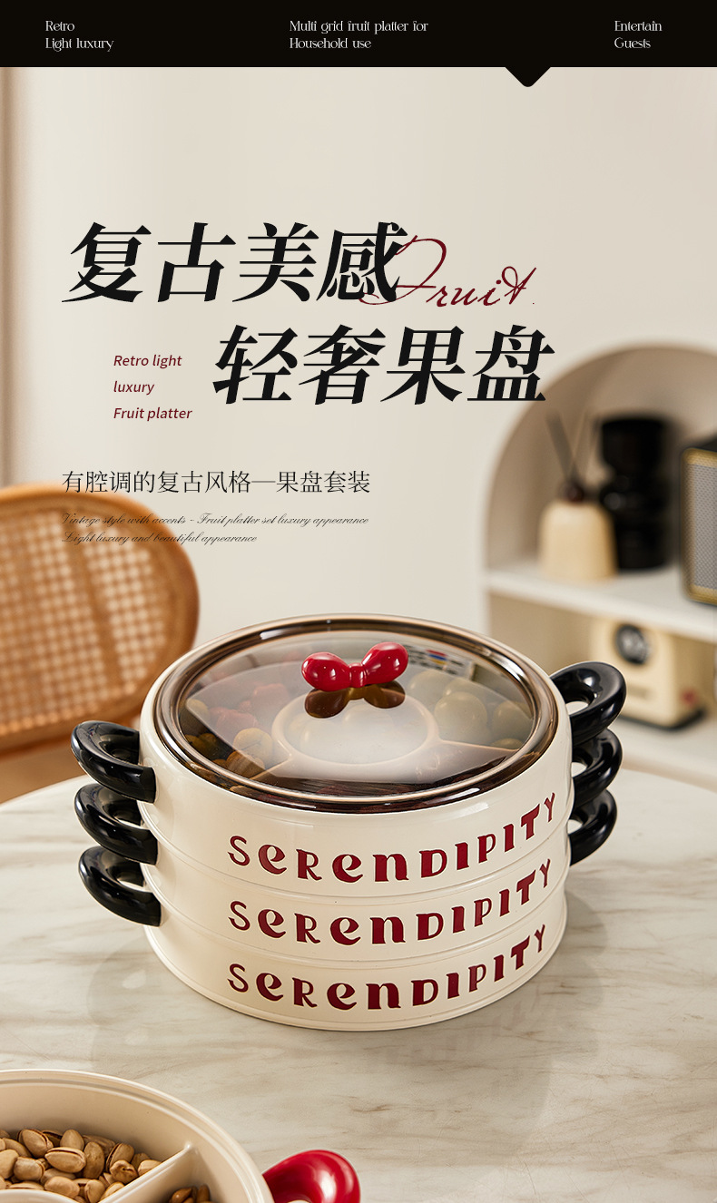 批发蝴蝶结糖果盒家用客厅茶几轻奢可叠加带盖糖果盒零食盘干果盒