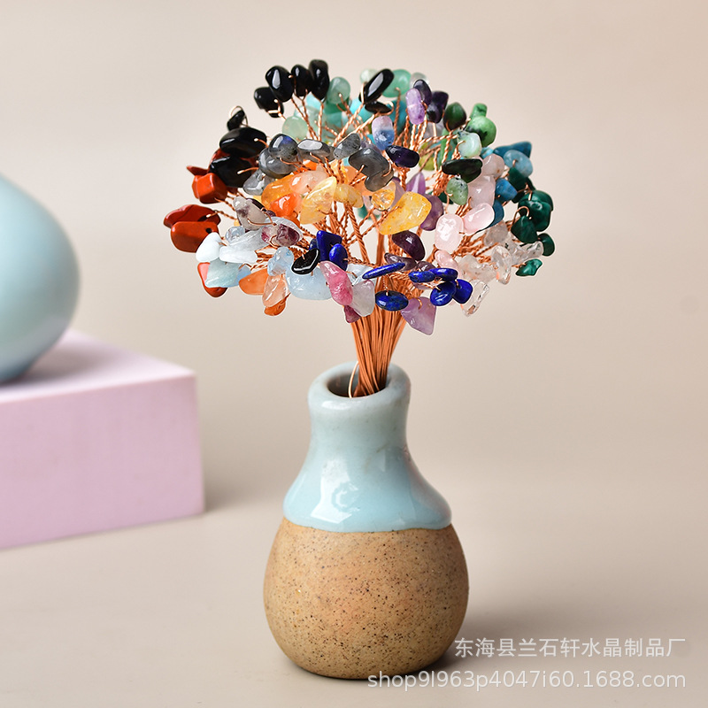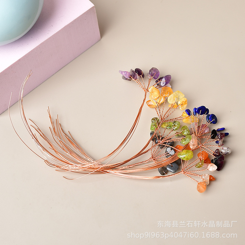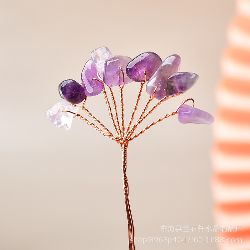 厂家批发九粒水晶碎石发财树花枝天然能量生命树配件手工DIY摆件