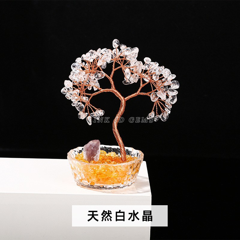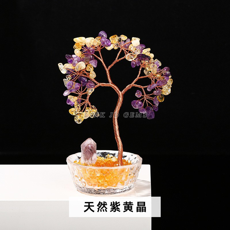 晶典珠宝 天然水晶碎石许愿瓶发财树桌面办公摆件水晶工艺品批发