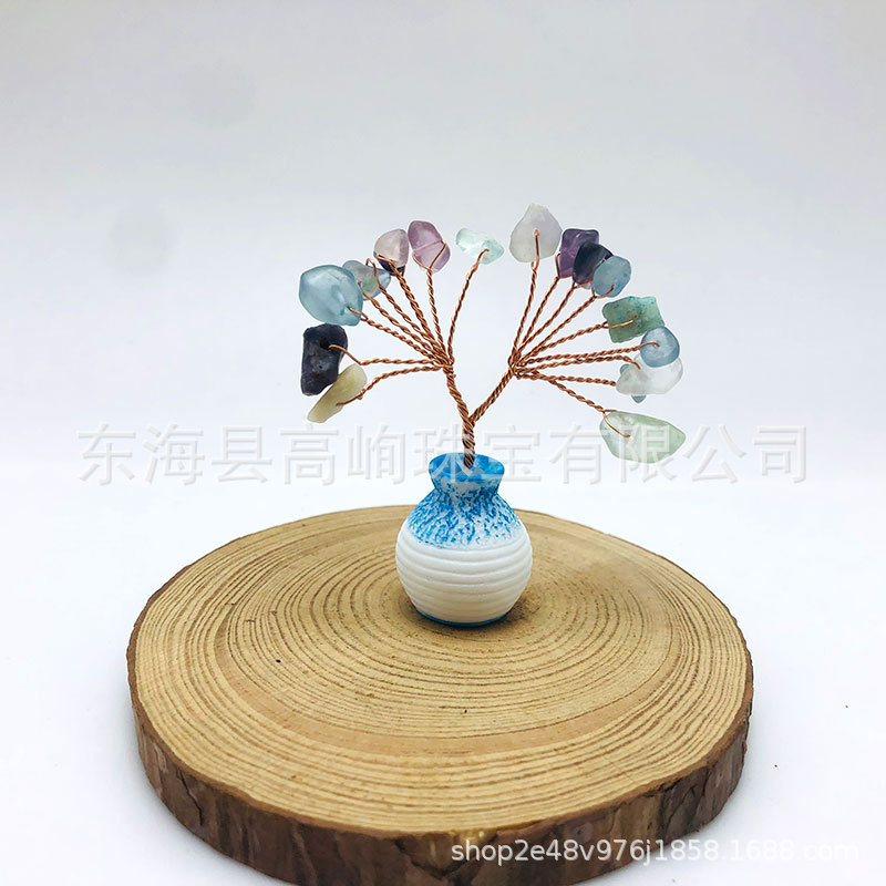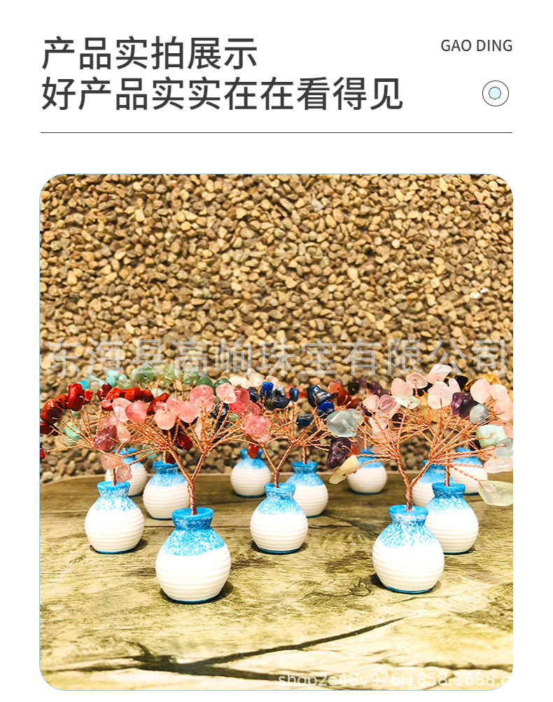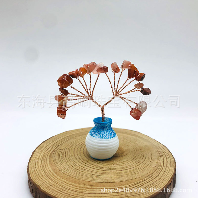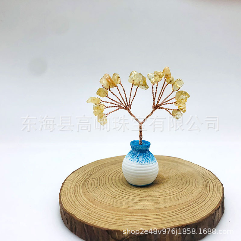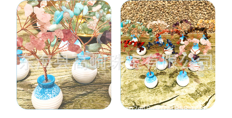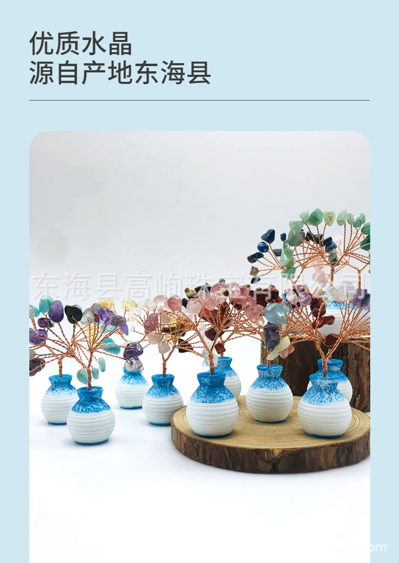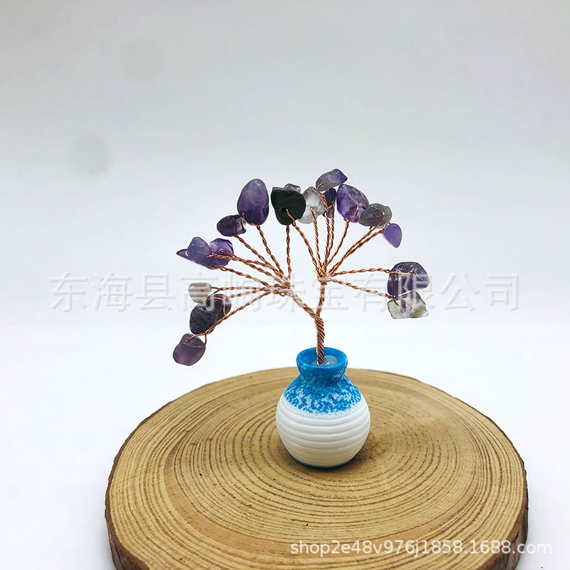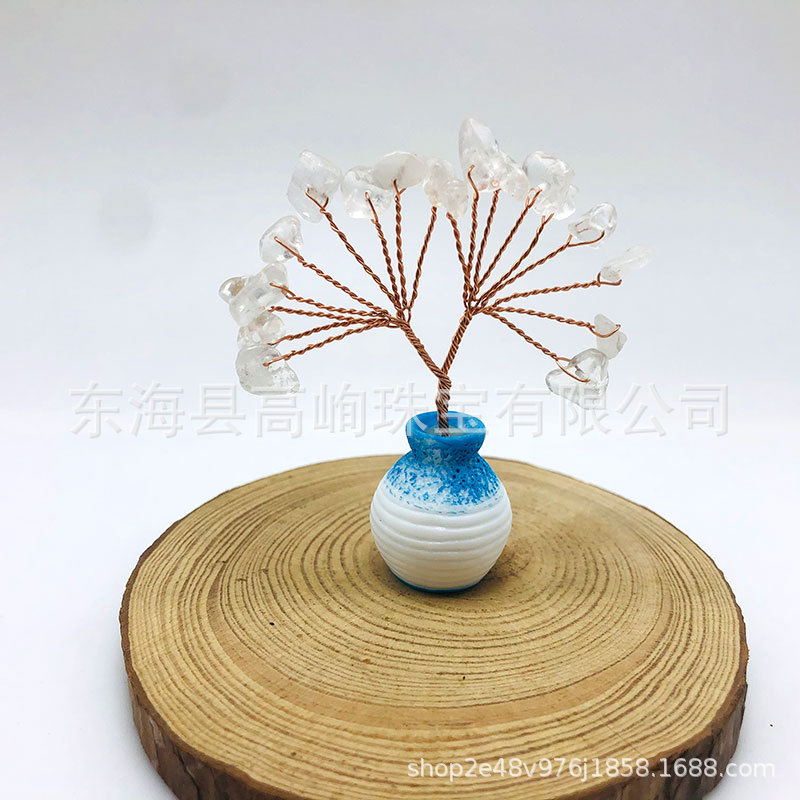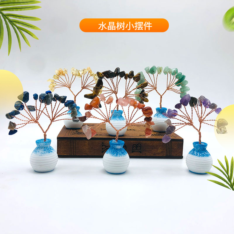 跨境天然水晶发财树迷你生命树小摆件家居车载书桌装饰花瓶水晶树