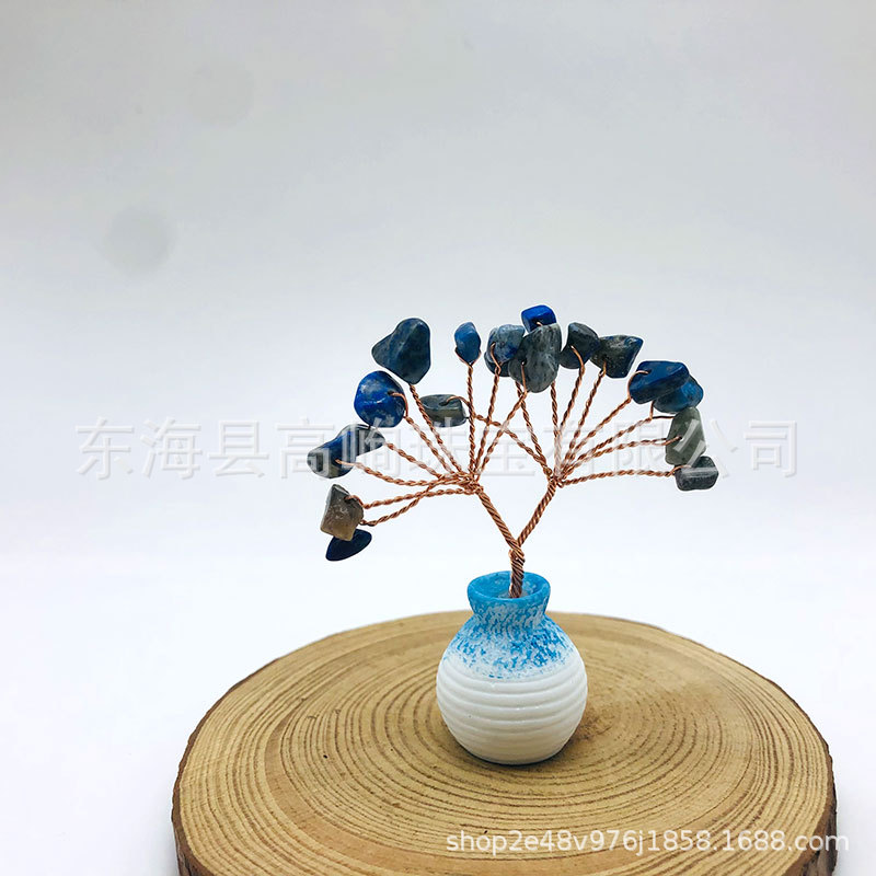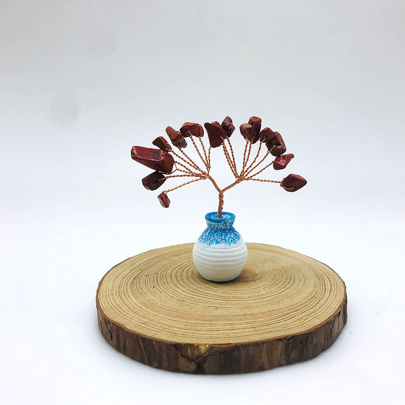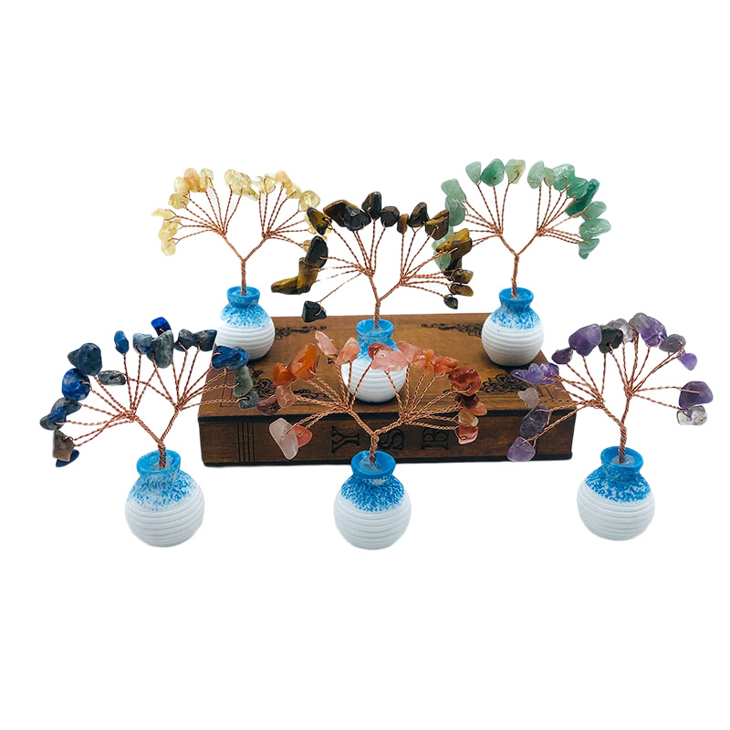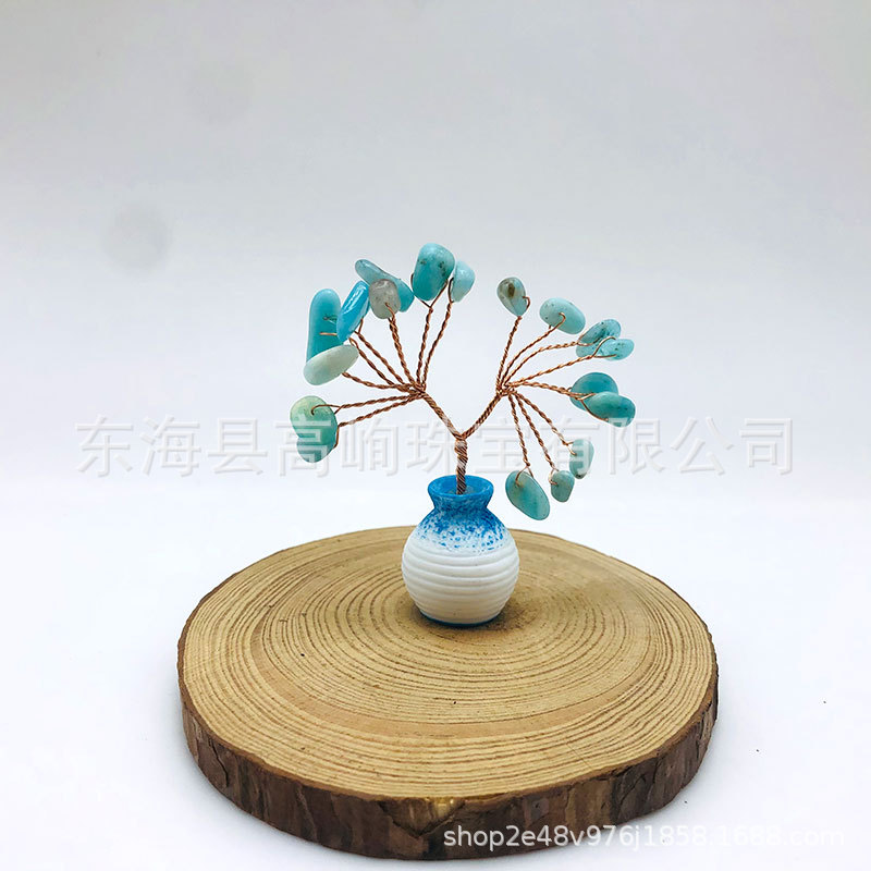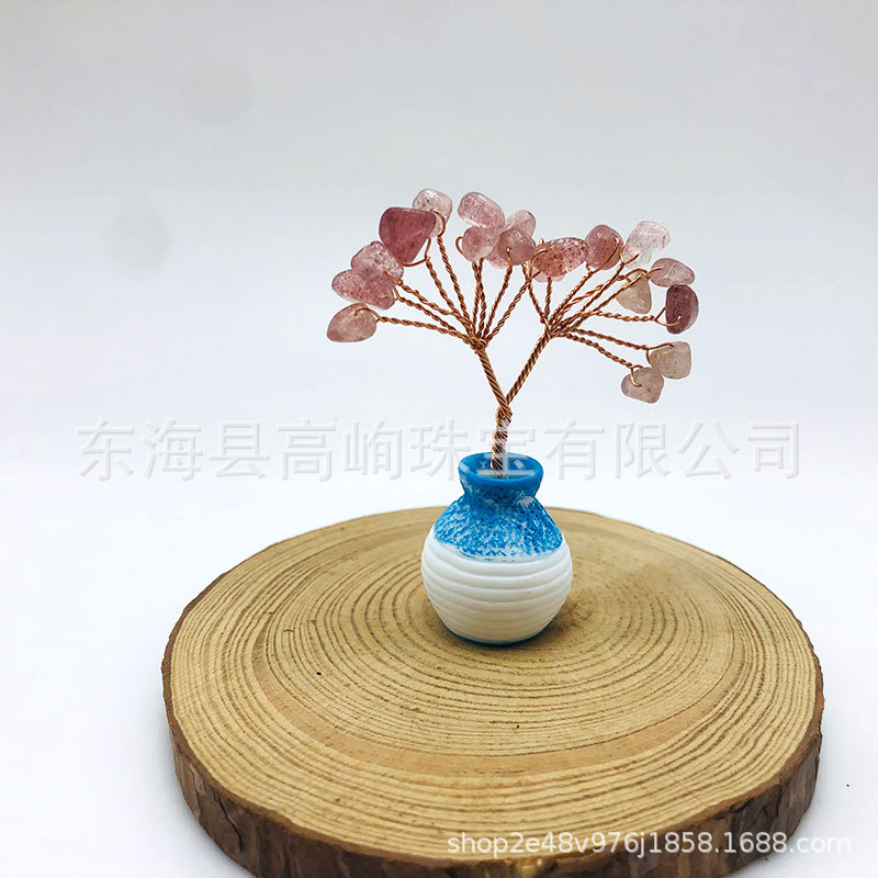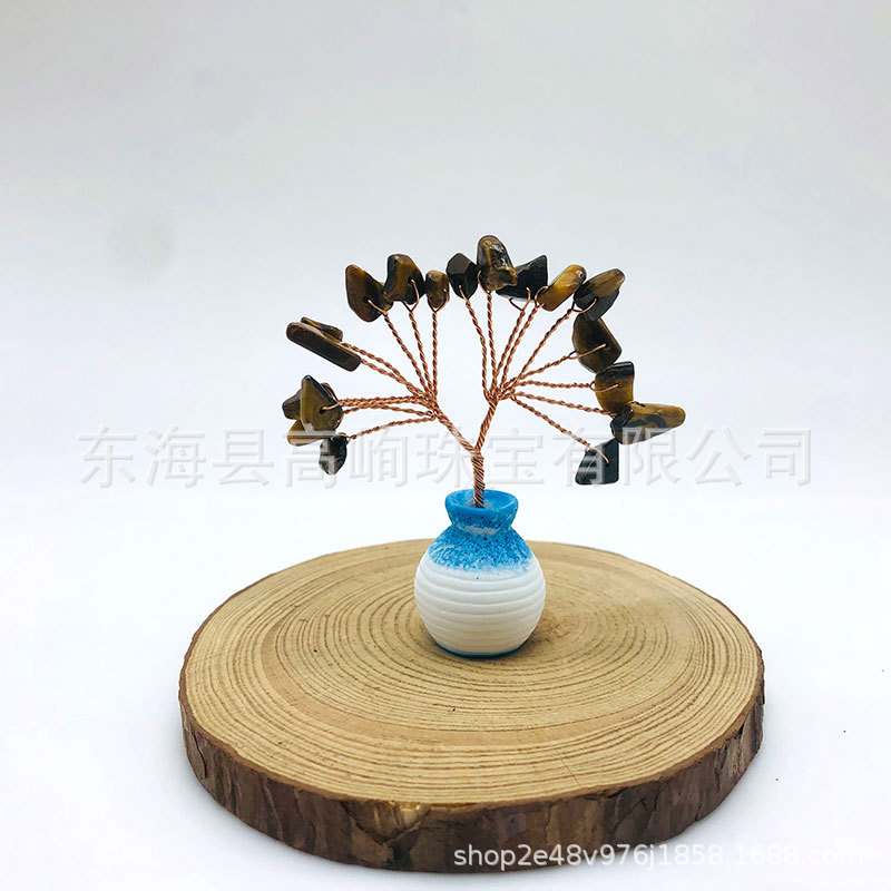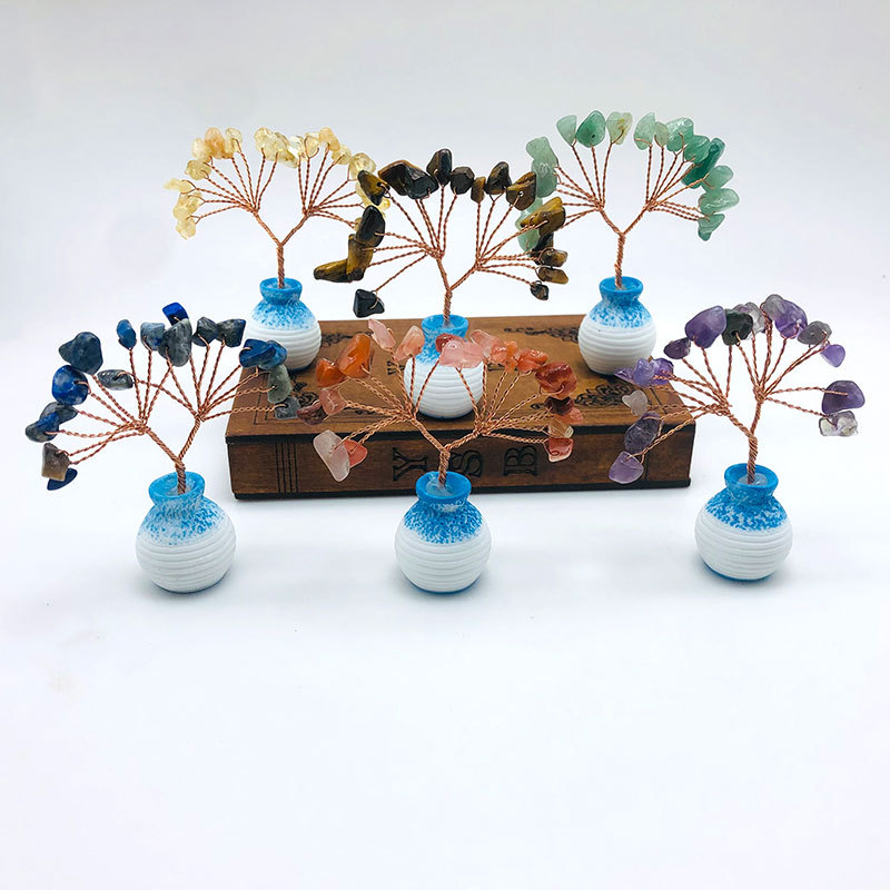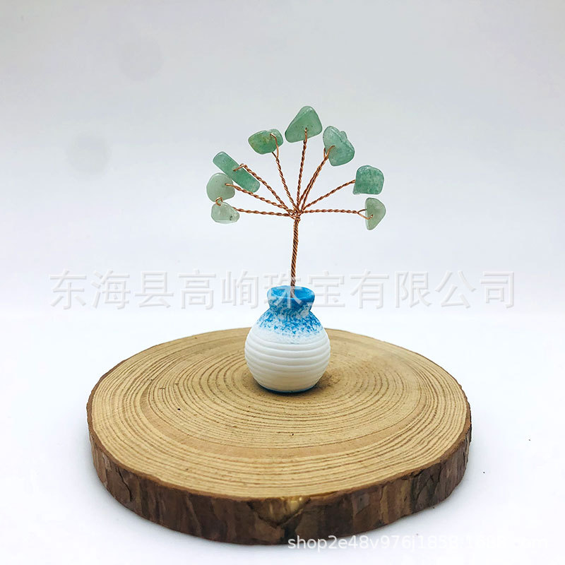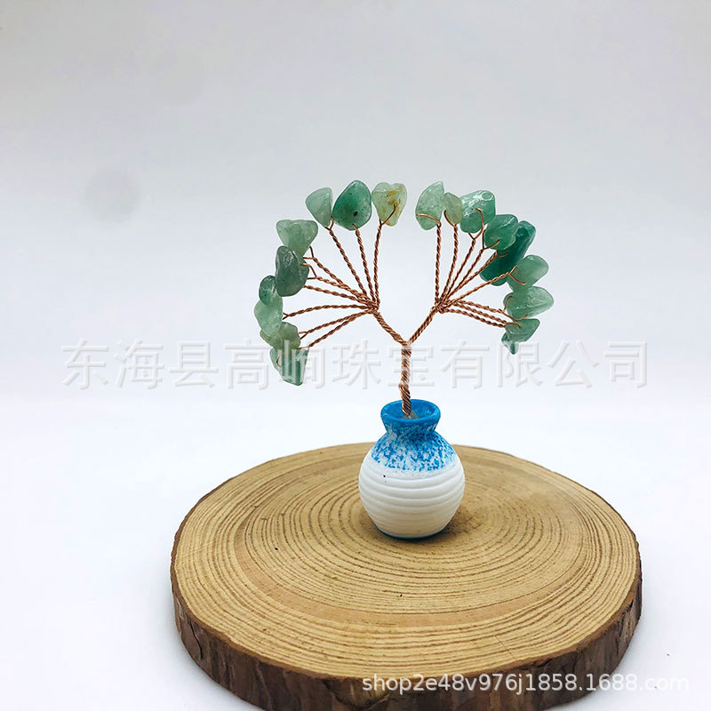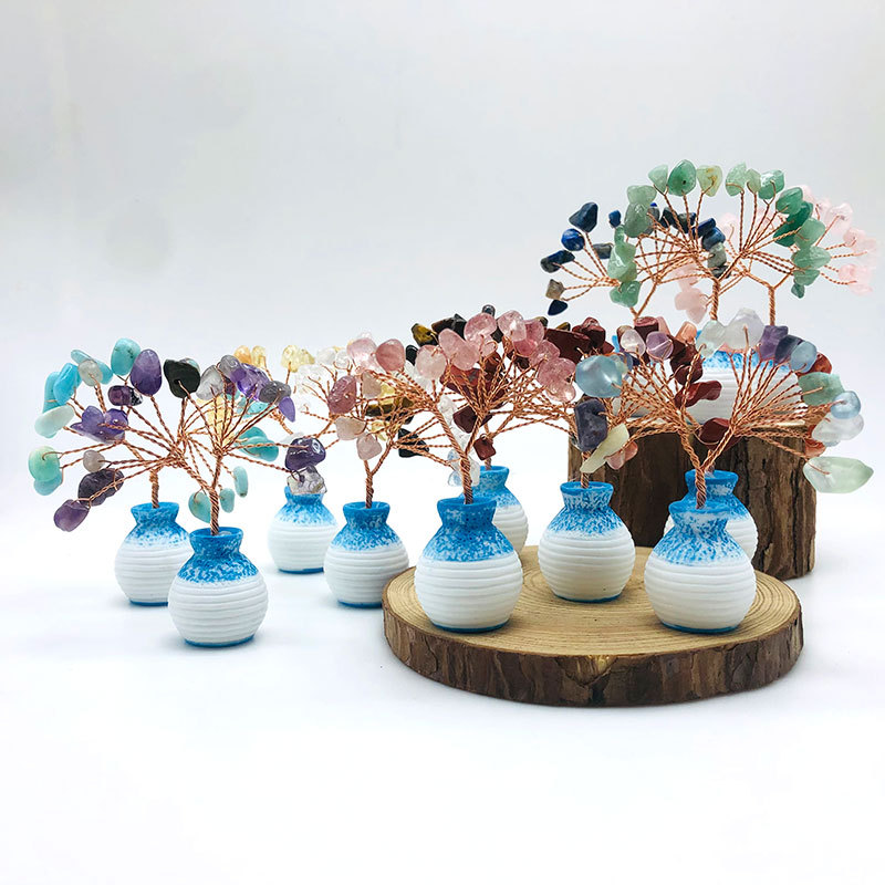 跨境天然水晶发财树迷你生命树小摆件家居车载书桌装饰花瓶水晶树