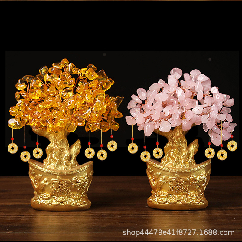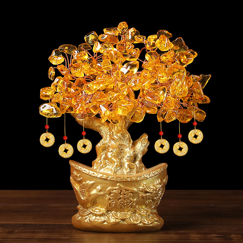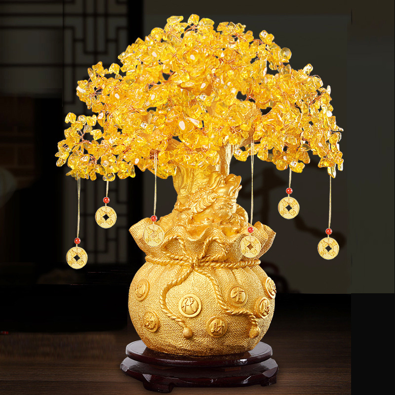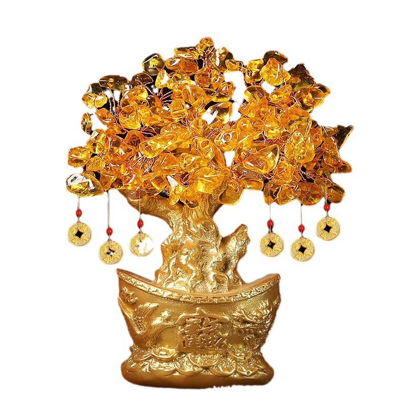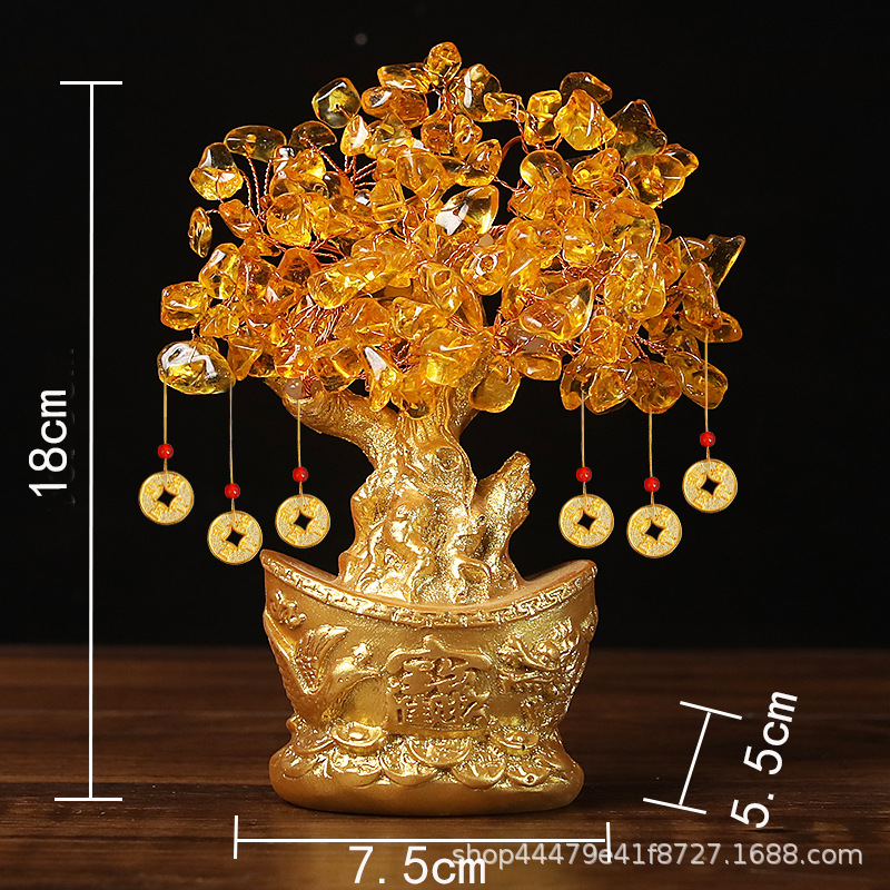 黄水晶发财树金元宝树摇钱树树脂摆件酒柜玄关装饰开业送礼摆件