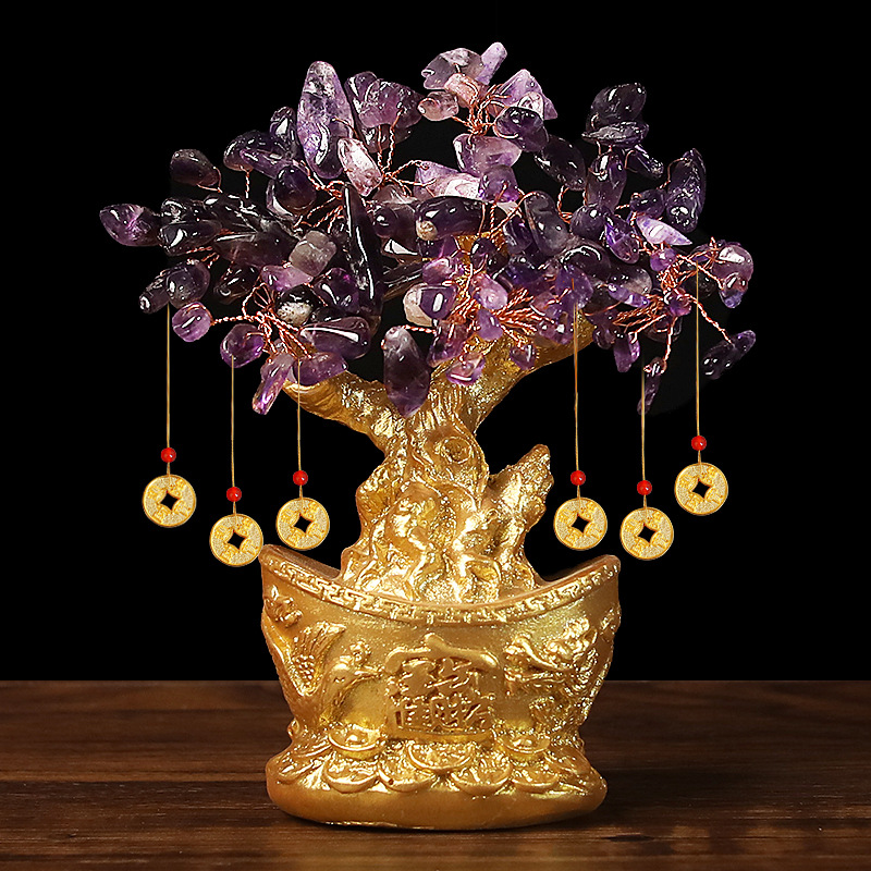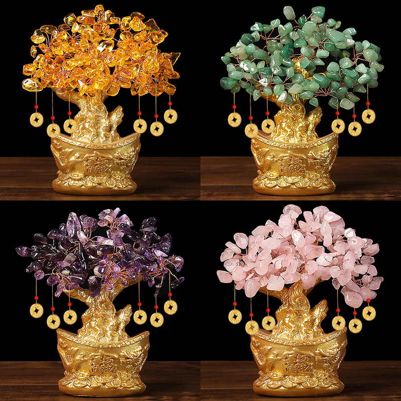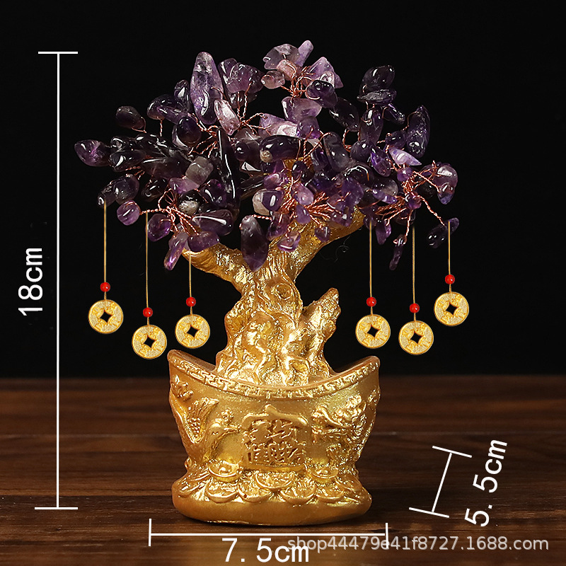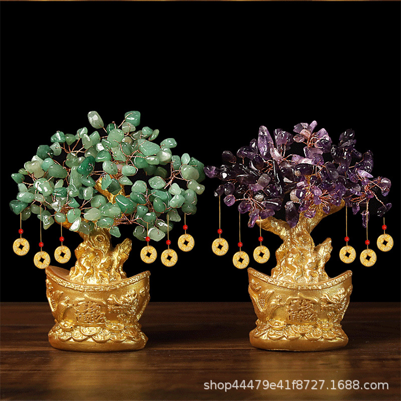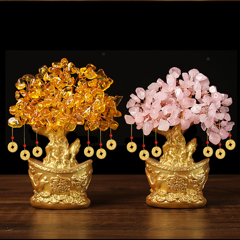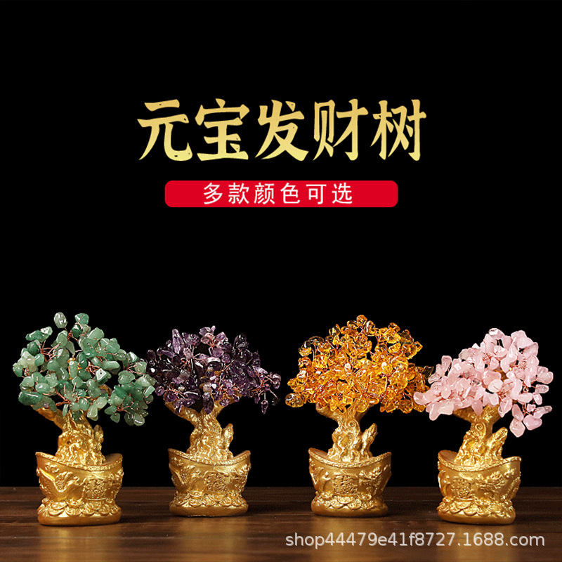 黄水晶发财树金元宝树摇钱树树脂摆件酒柜玄关装饰开业送礼摆件