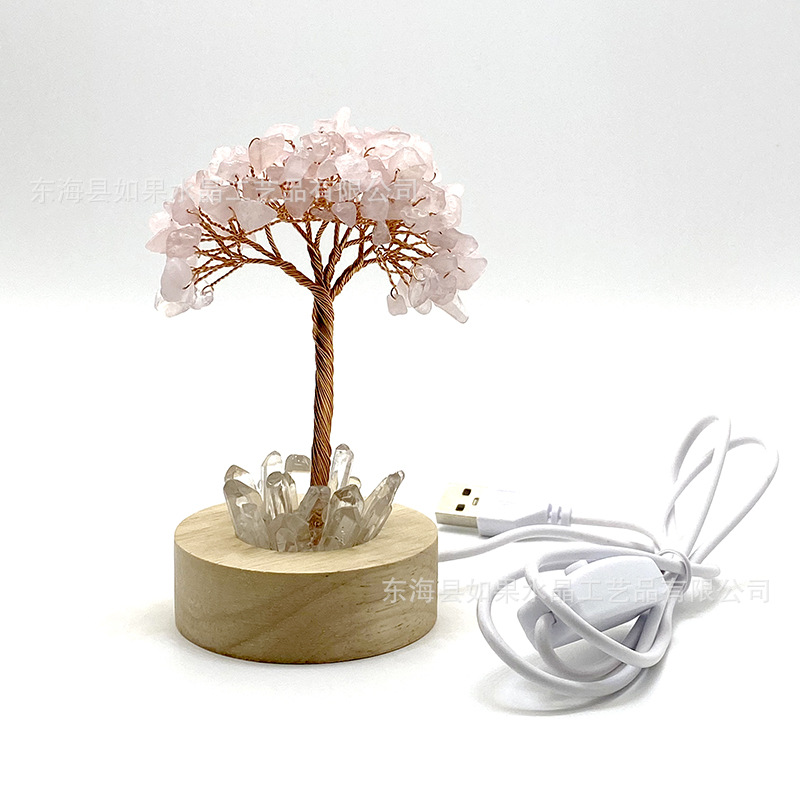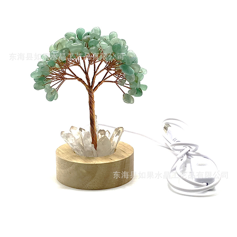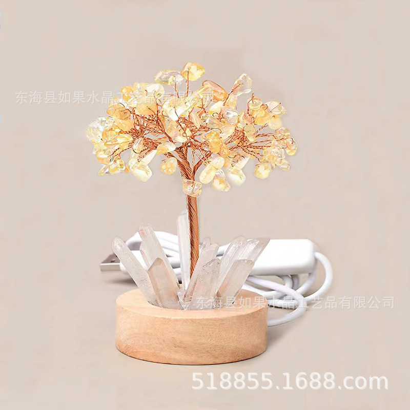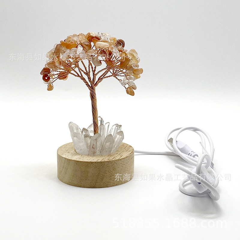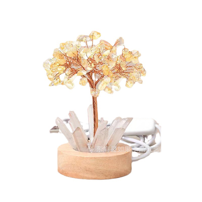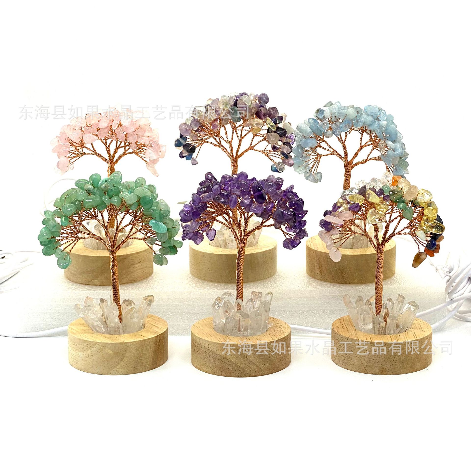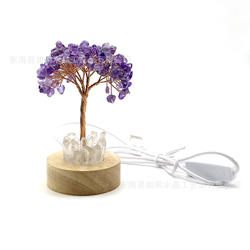 LED白灯底座天然水晶树黄紫粉绿水晶发财树水晶碎石生命树工艺品