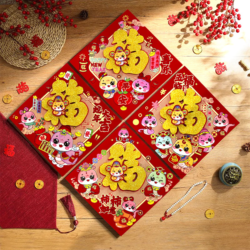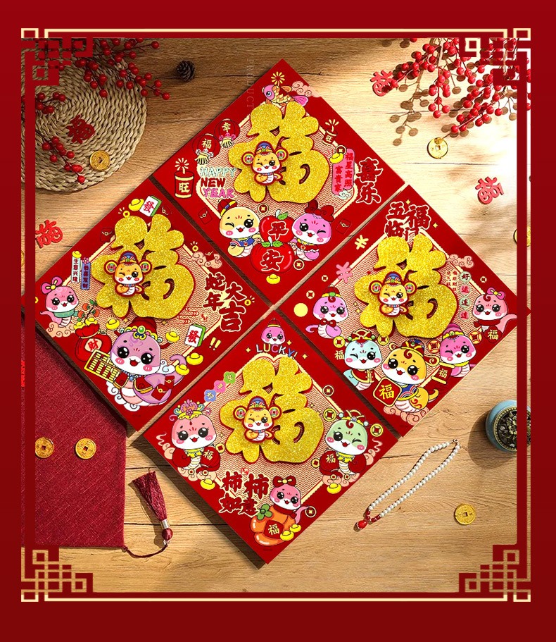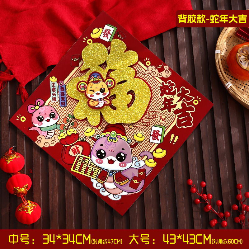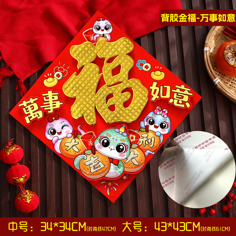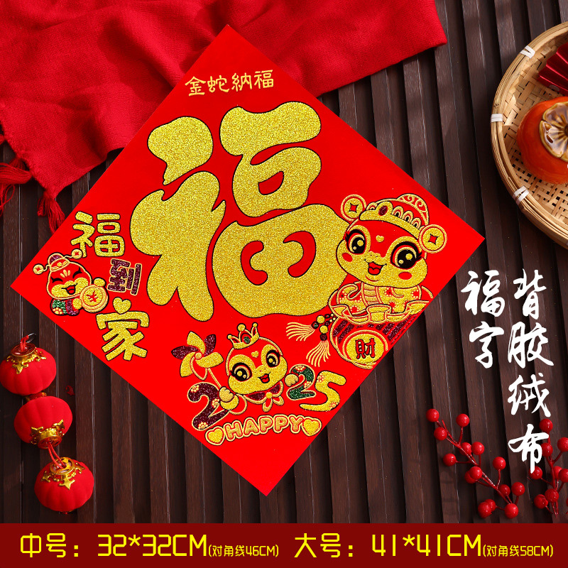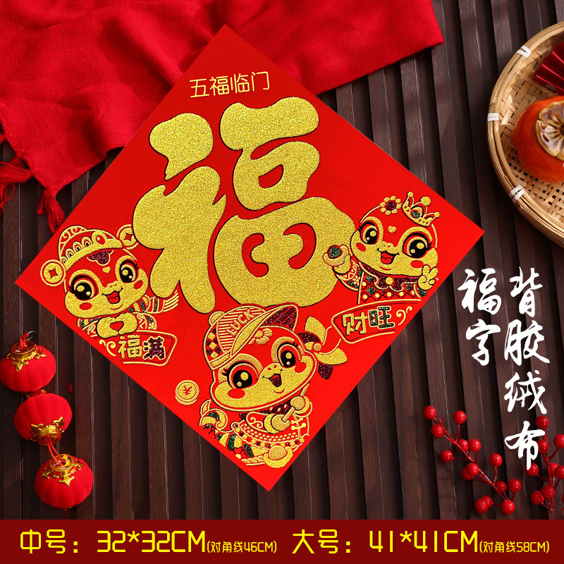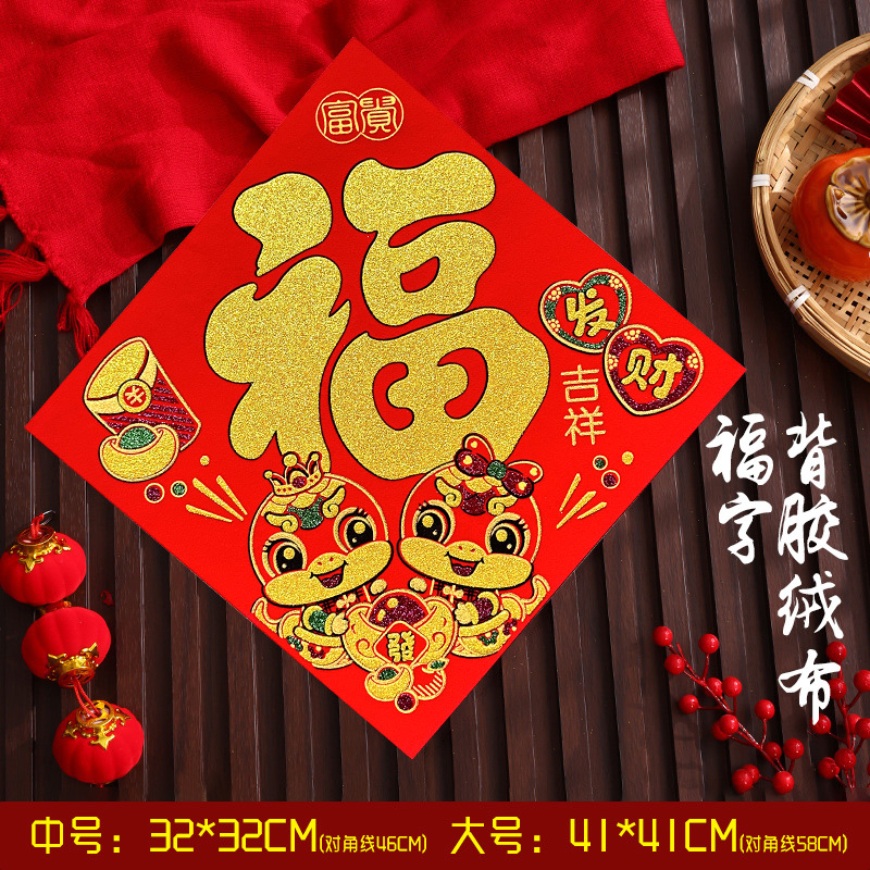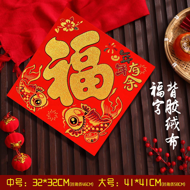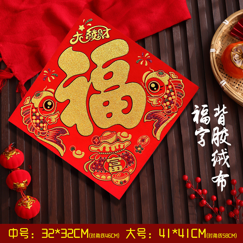 新年福字贴带背胶门贴植绒立体装饰新年福字贴自粘福字批发