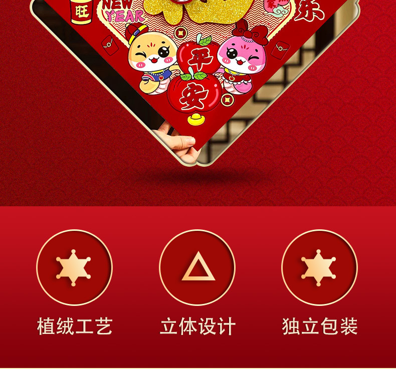 本店植绒立体福字为现货,量大价优!可定制,需要定制请直接旺旺或者电话联系,支持加印LOGO,已印好广告LOGO无法二次销售,没有质量问题一律不接受退换货,谢谢!