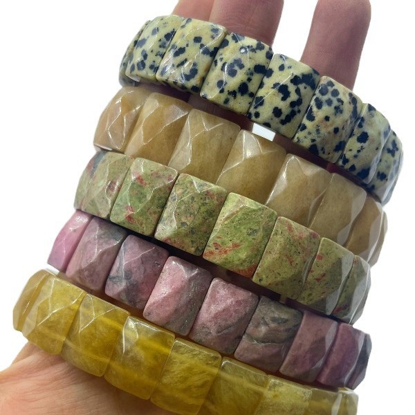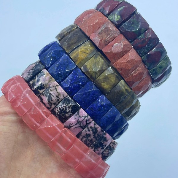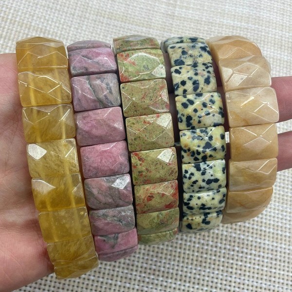 天然玉石水晶斑点切角度方形圆角形手环弹性手串男女通用跨境热销