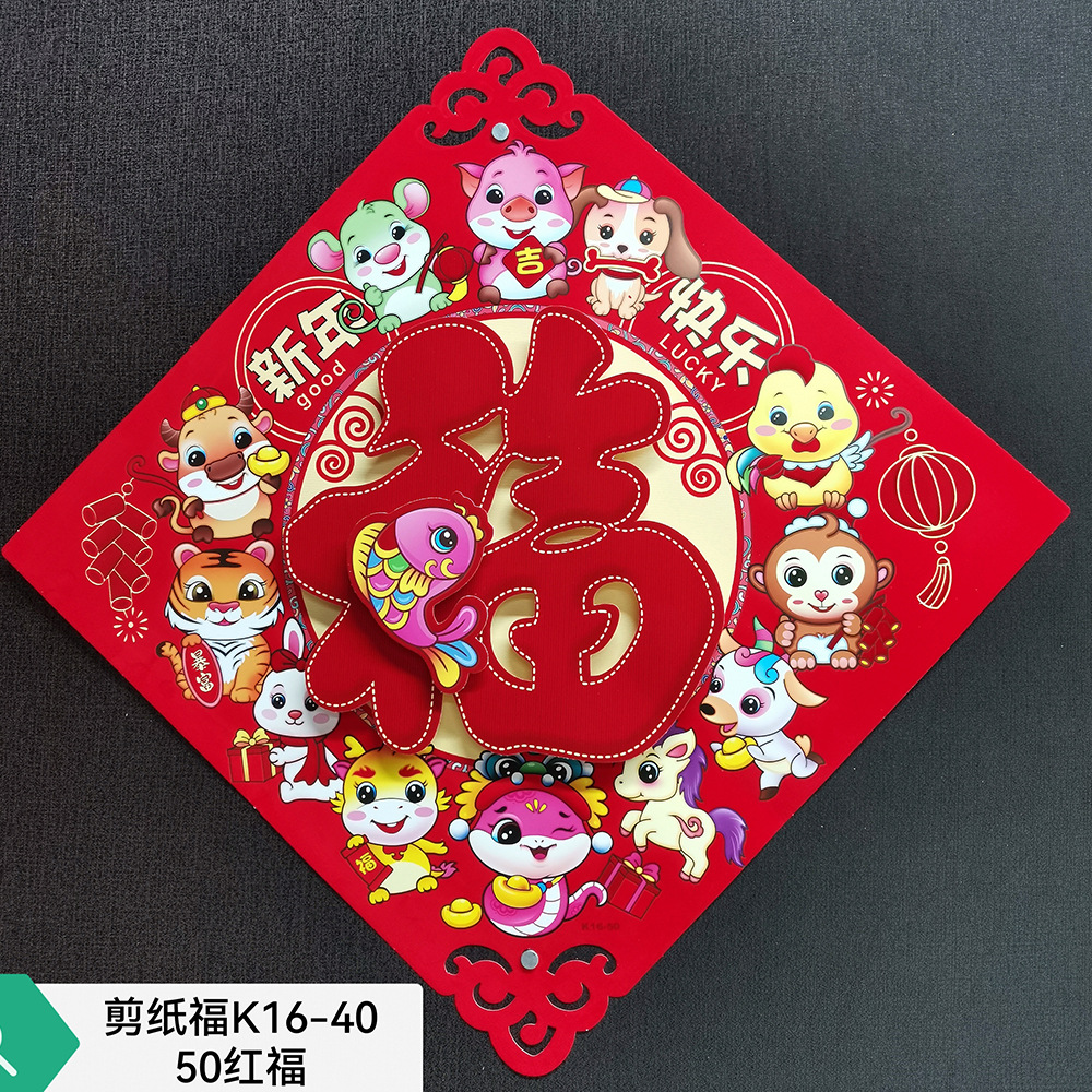 新年福字贴新款植绒立体福子门贴春节大门装饰用品福字贴过年