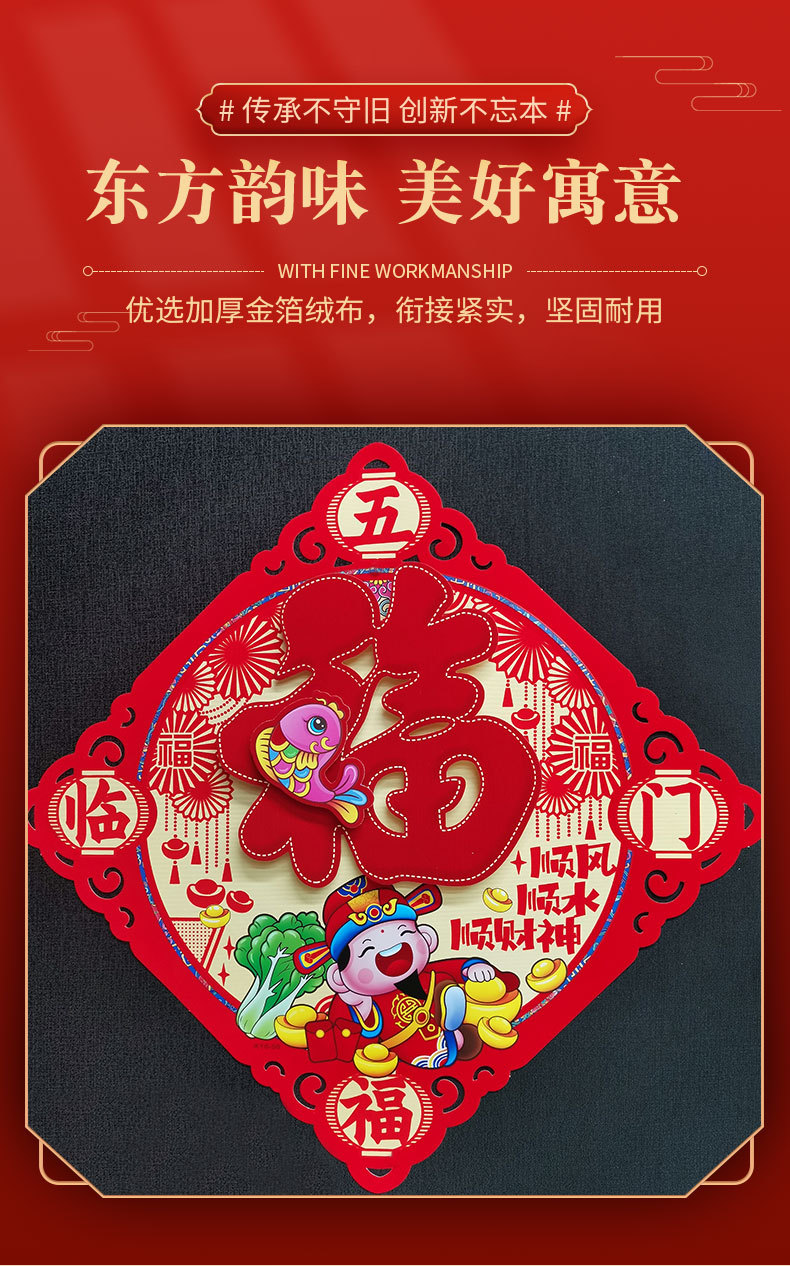 本店植绒立体福字为现货,量大价优!可定制,需要定制请直接旺旺或者电话联系,支持加印LOGO,已印好广告LOGO无法二次销售,没有质量问题一律不接受退换货,谢谢!