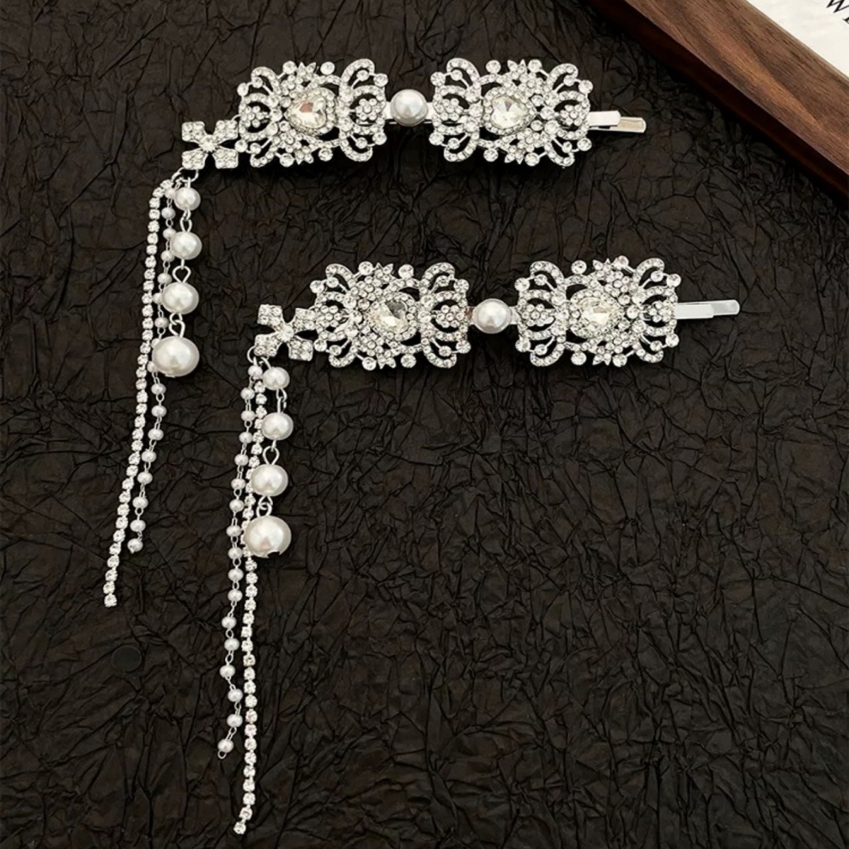超闪满钻珍珠流苏发夹民族风轻奢发饰新娘蒙古头饰轻奢发夹头饰