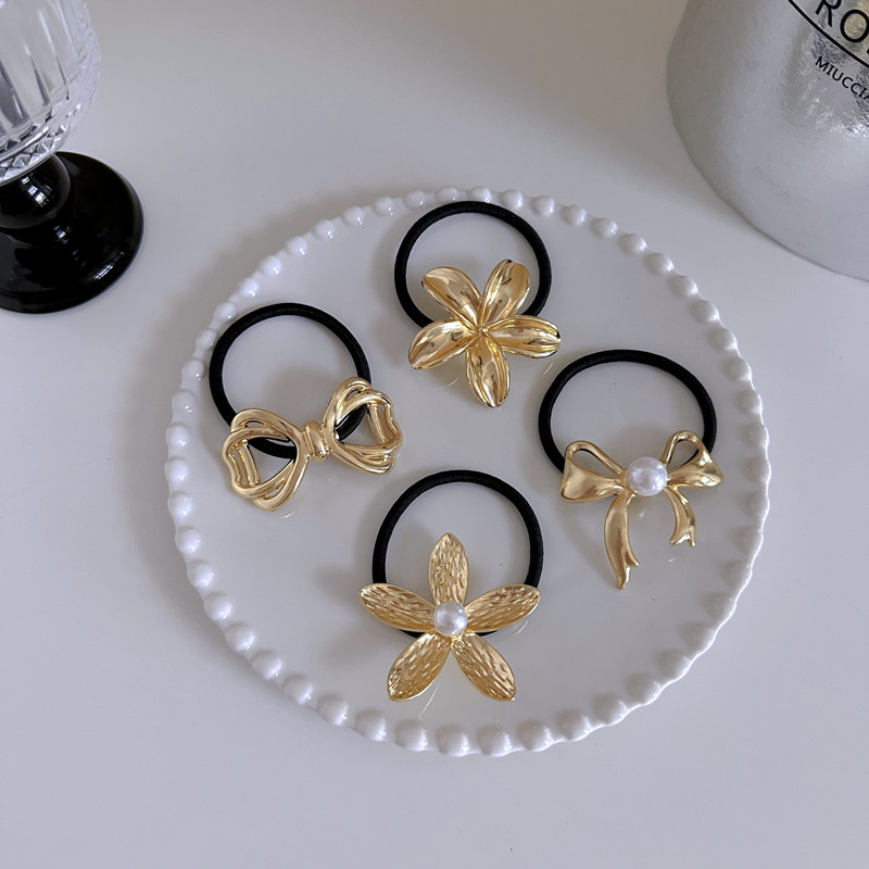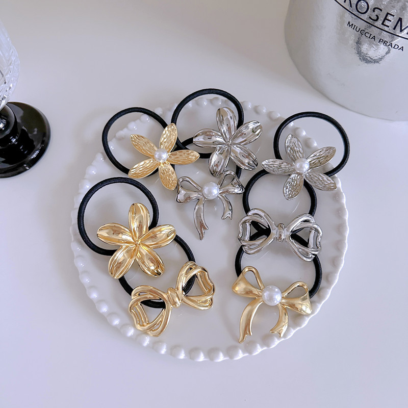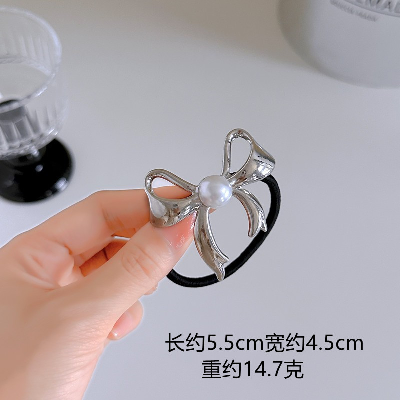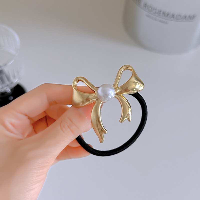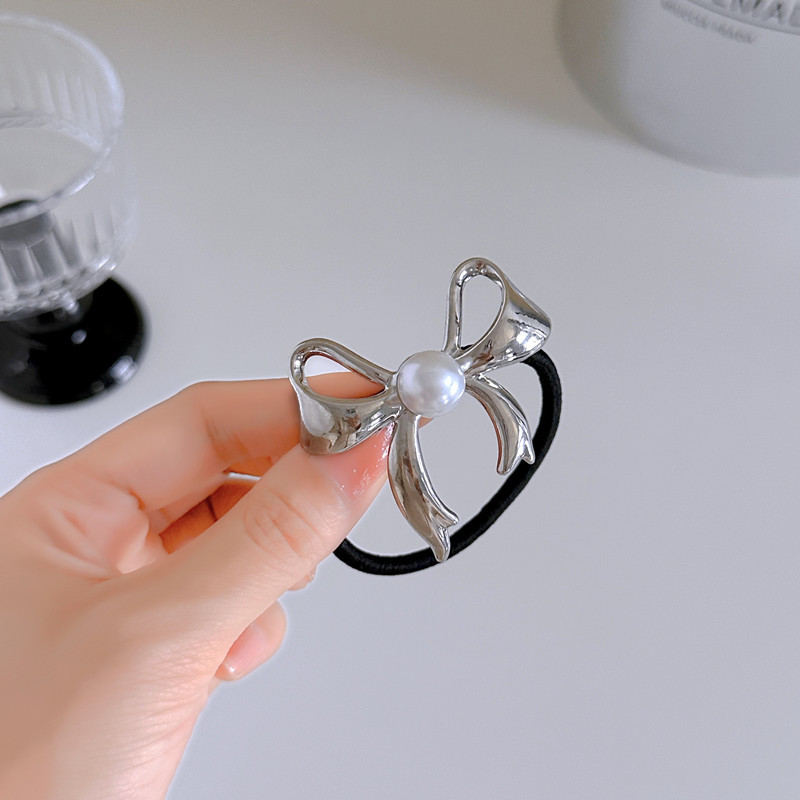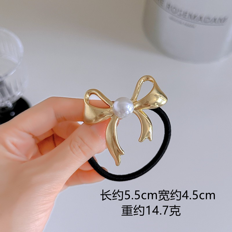 高弹力皮筋发圈时尚珍珠蝴蝶结圆头绳女扎高马尾发绳合金新款