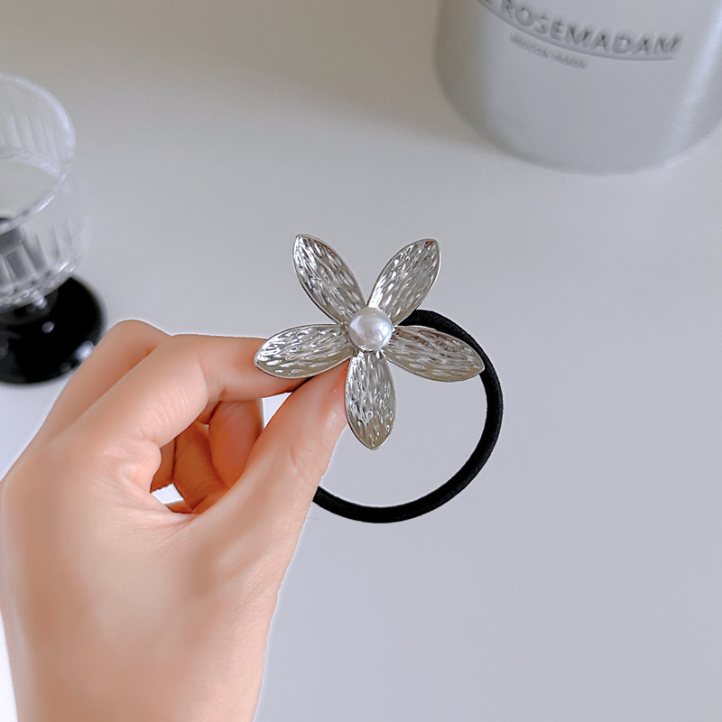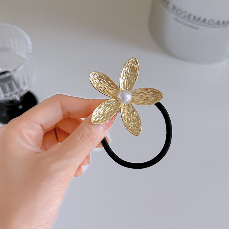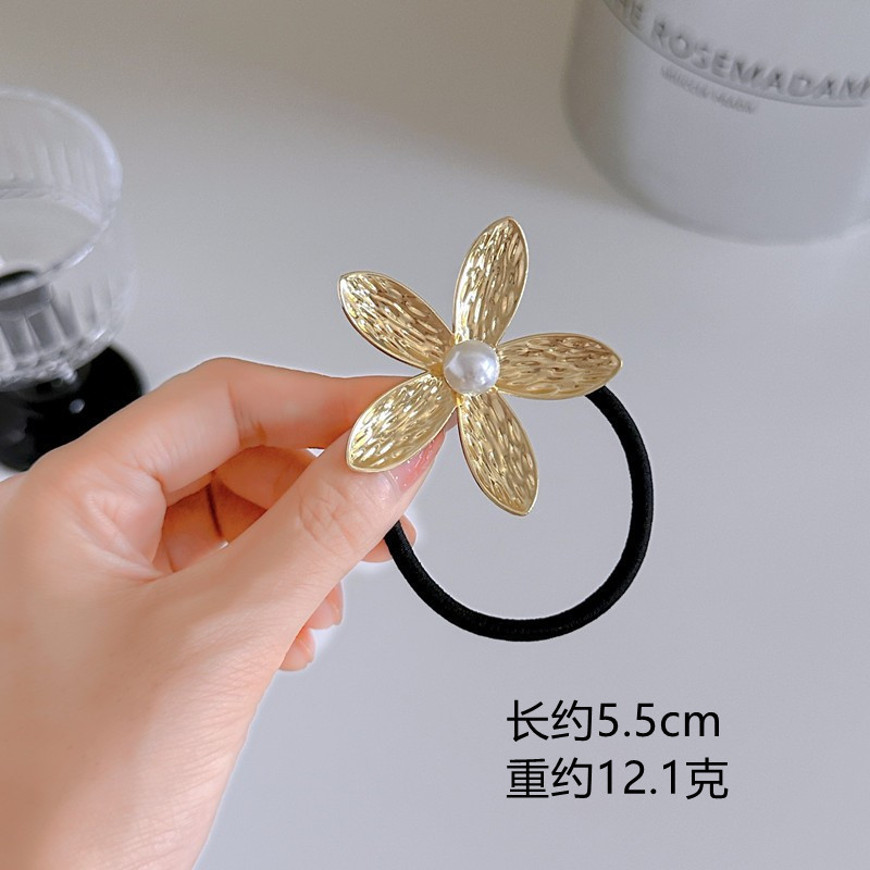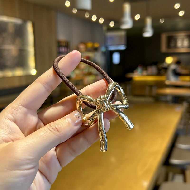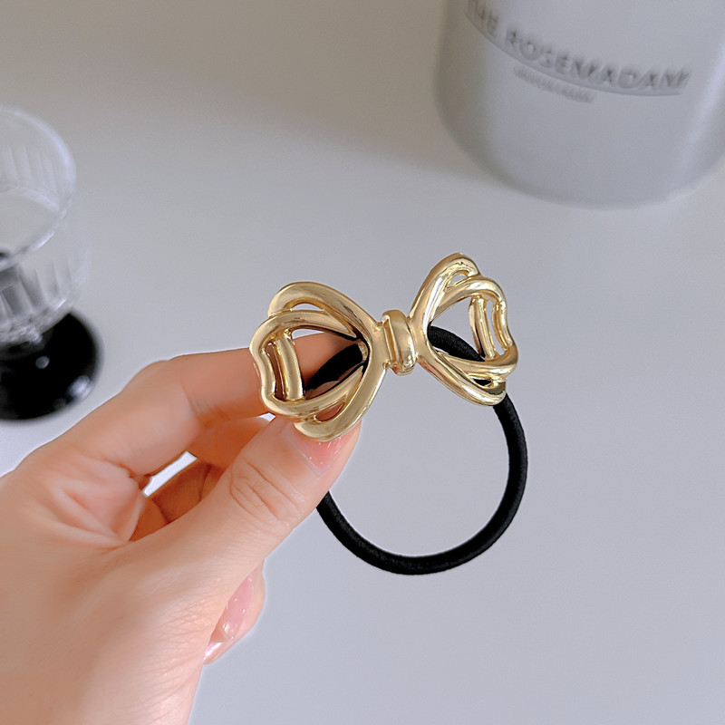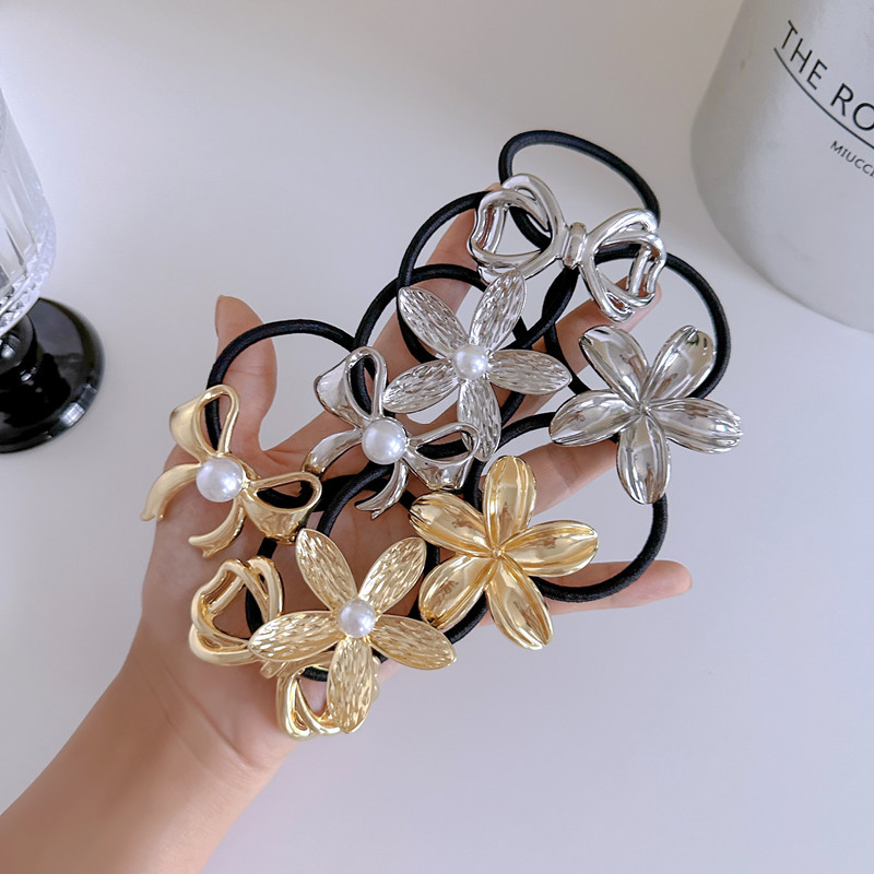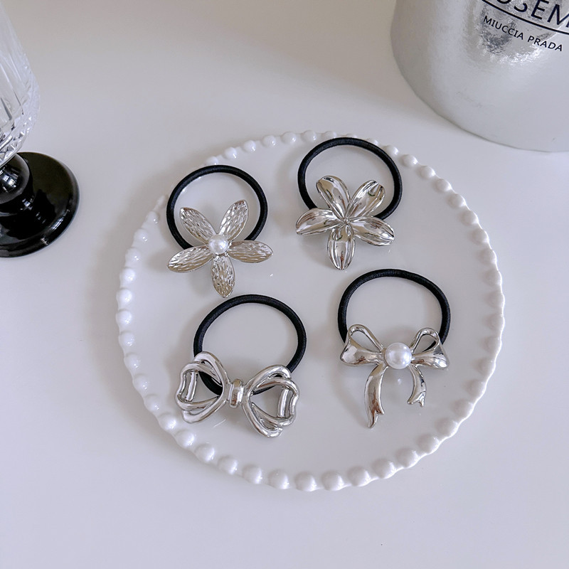 高弹力皮筋发圈时尚珍珠蝴蝶结圆头绳女扎高马尾发绳合金新款