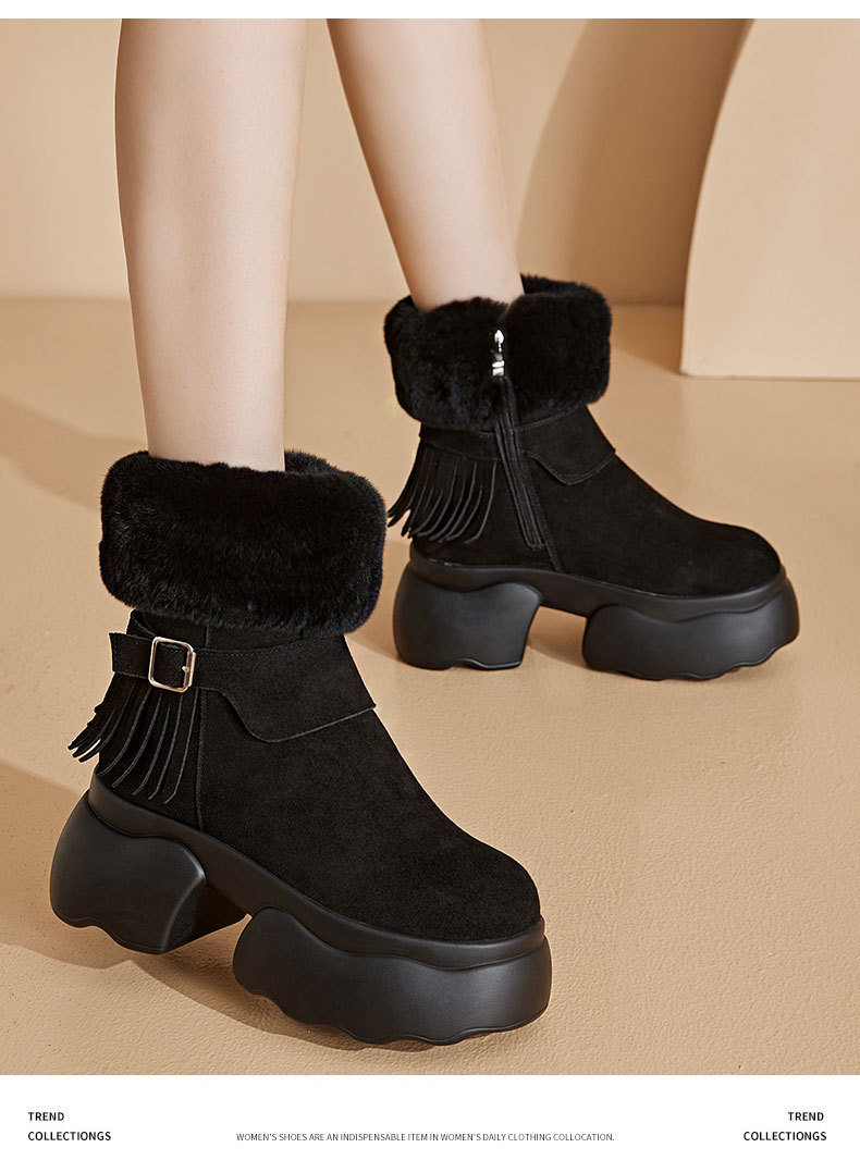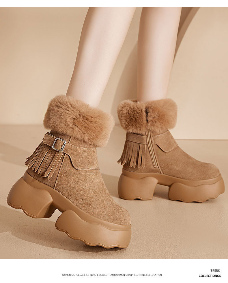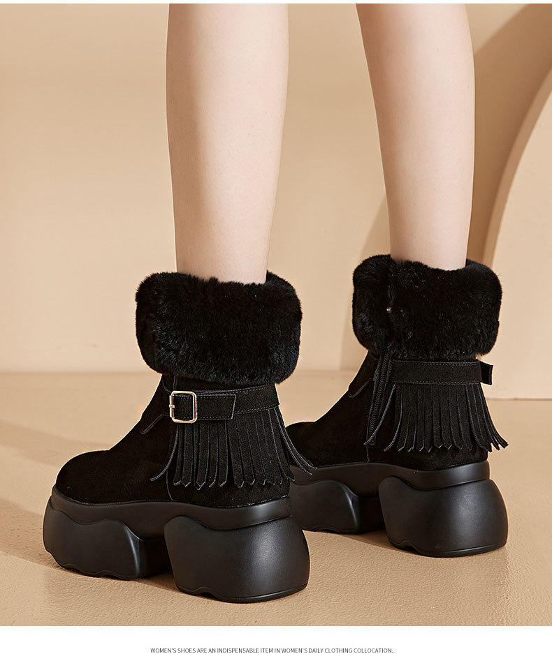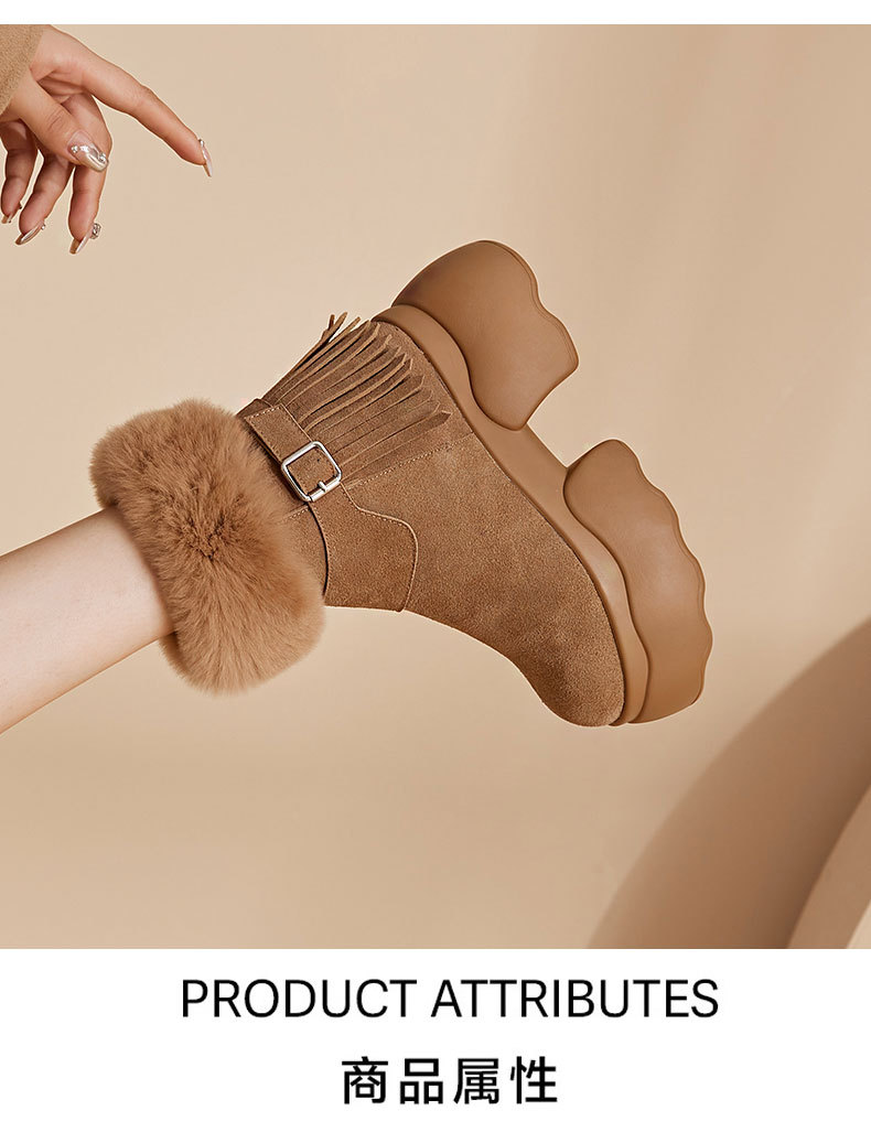 兔毛厚底桑坡雪地靴女2024冬季新款短筒加绒加厚中筒流苏棉靴女