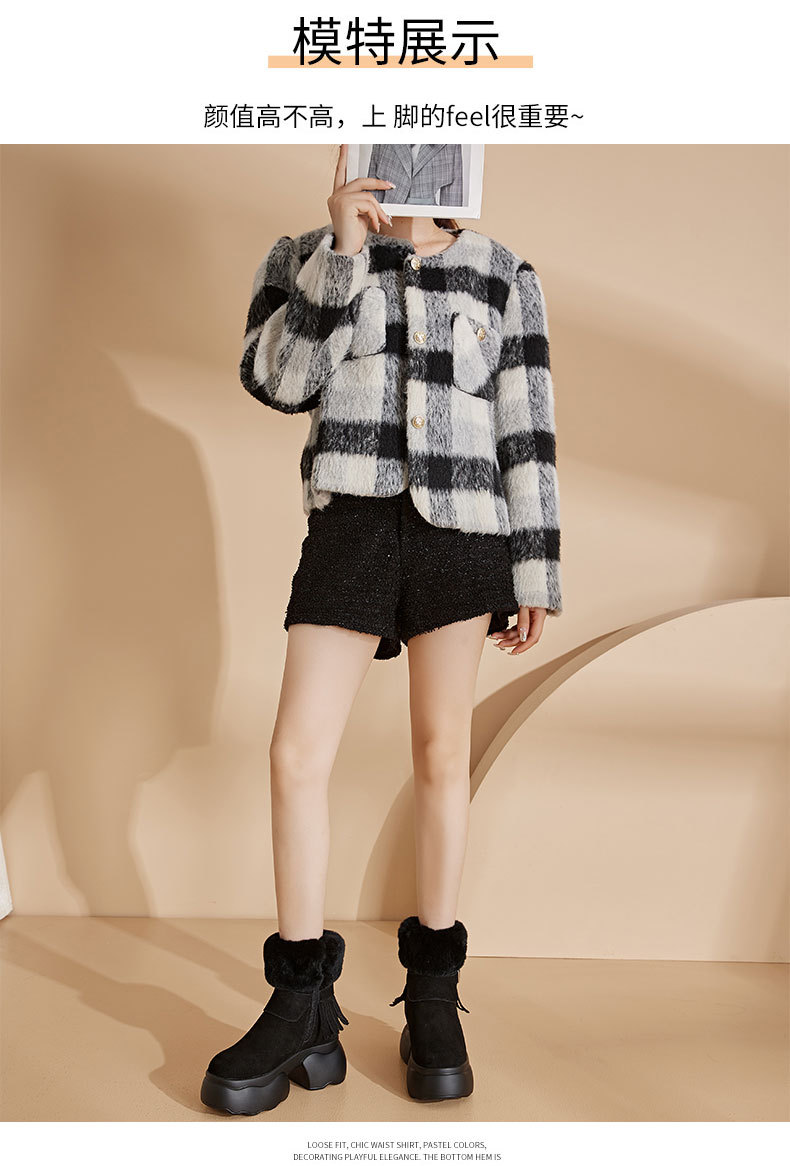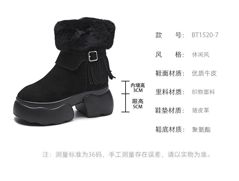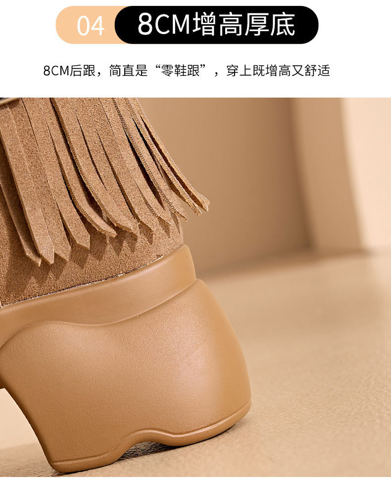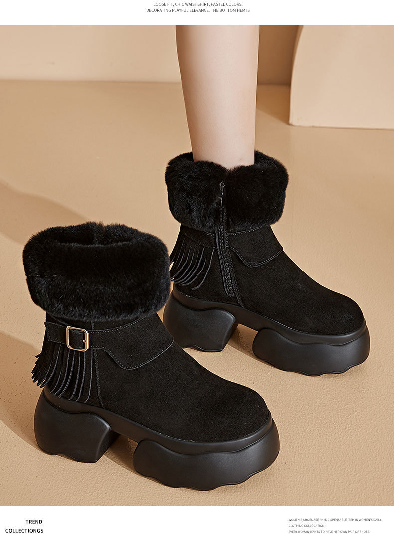 兔毛厚底桑坡雪地靴女2024冬季新款短筒加绒加厚中筒流苏棉靴女