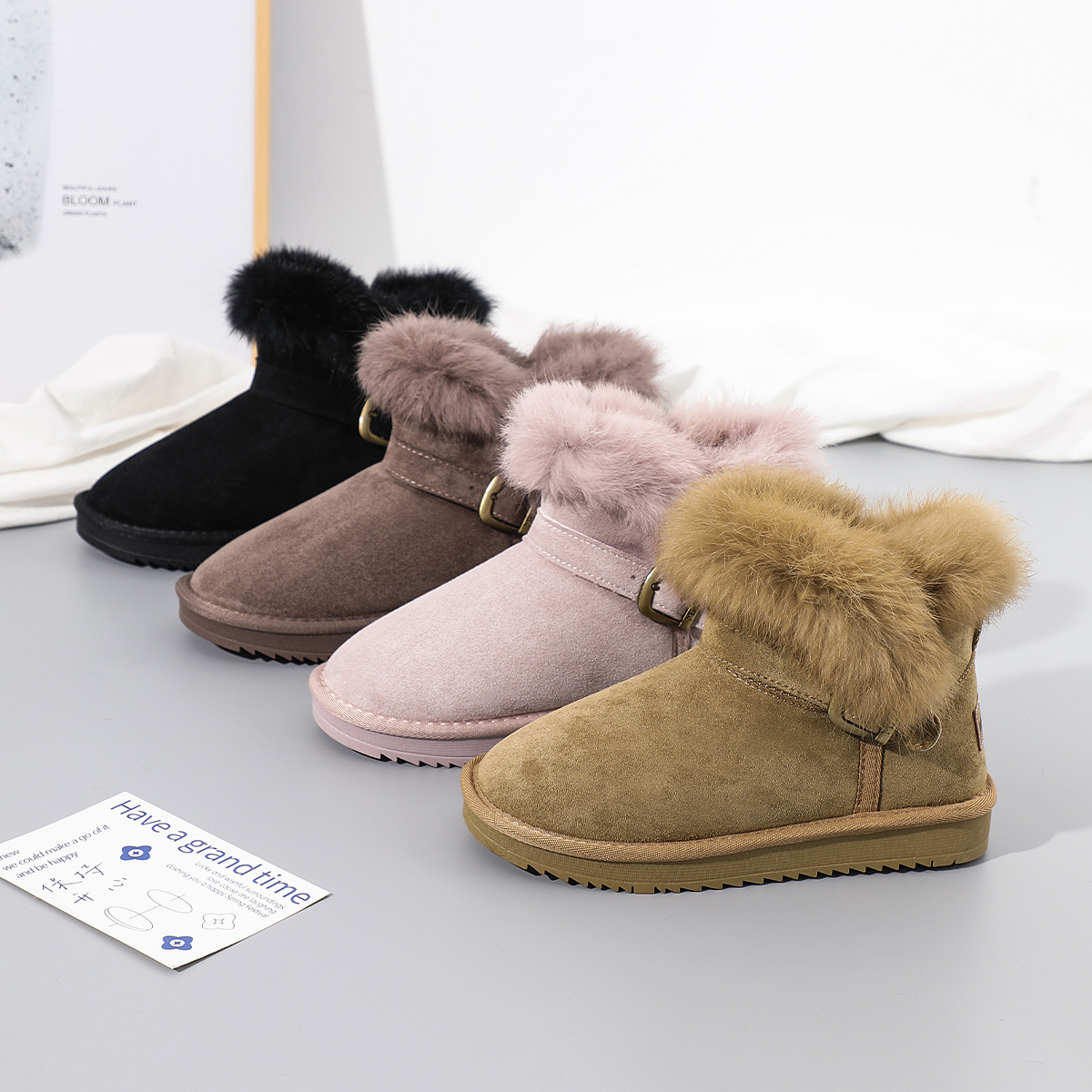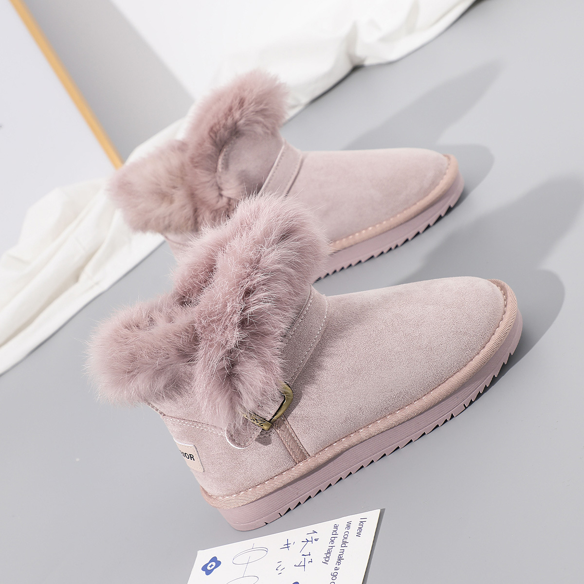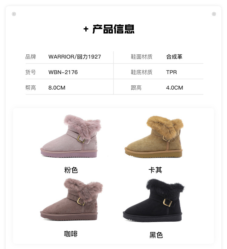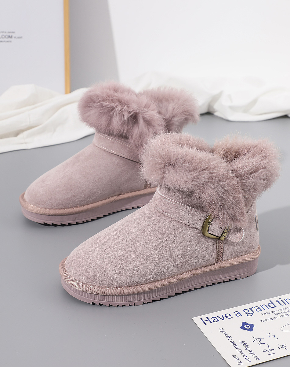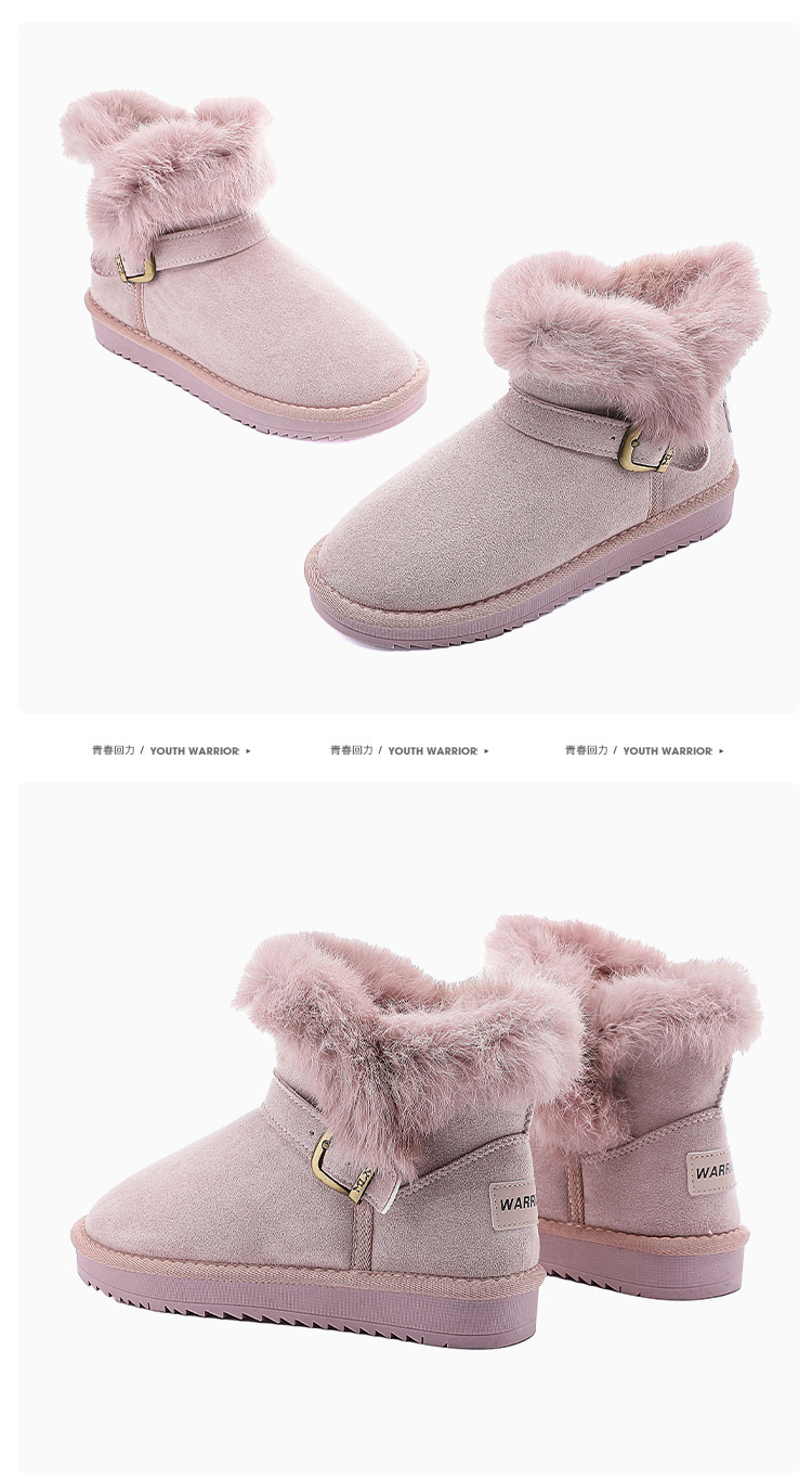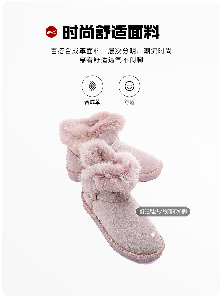 回力雪地靴女2024冬季新款加绒加厚皮毛一体樱花粉短筒东北女棉鞋