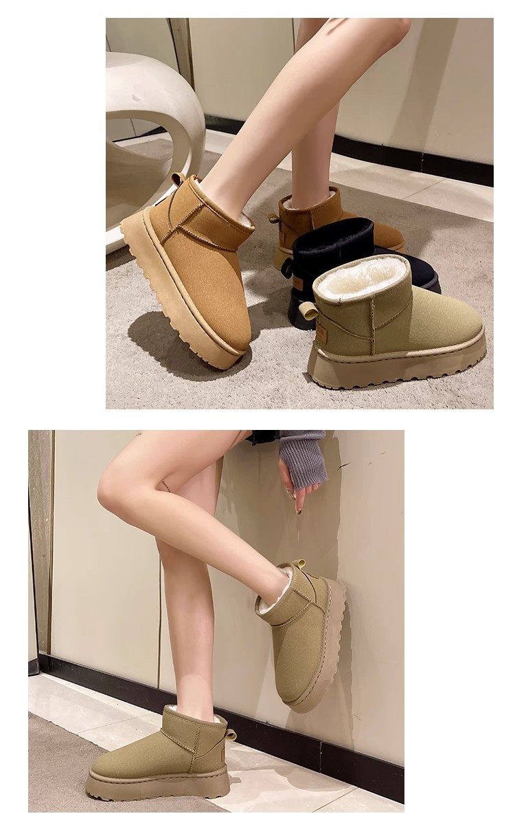 加绒雪地靴女外穿厚底2024年冬季新款皮毛一体短筒靴加厚防滑棉鞋
