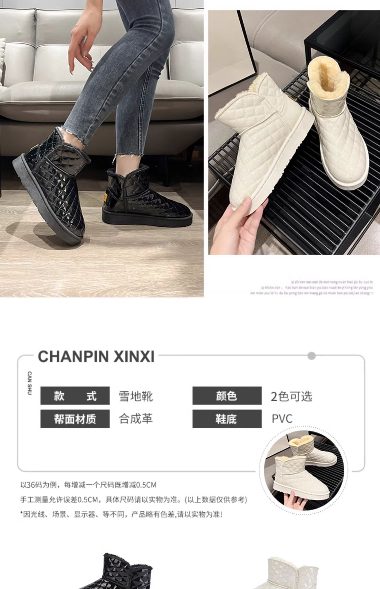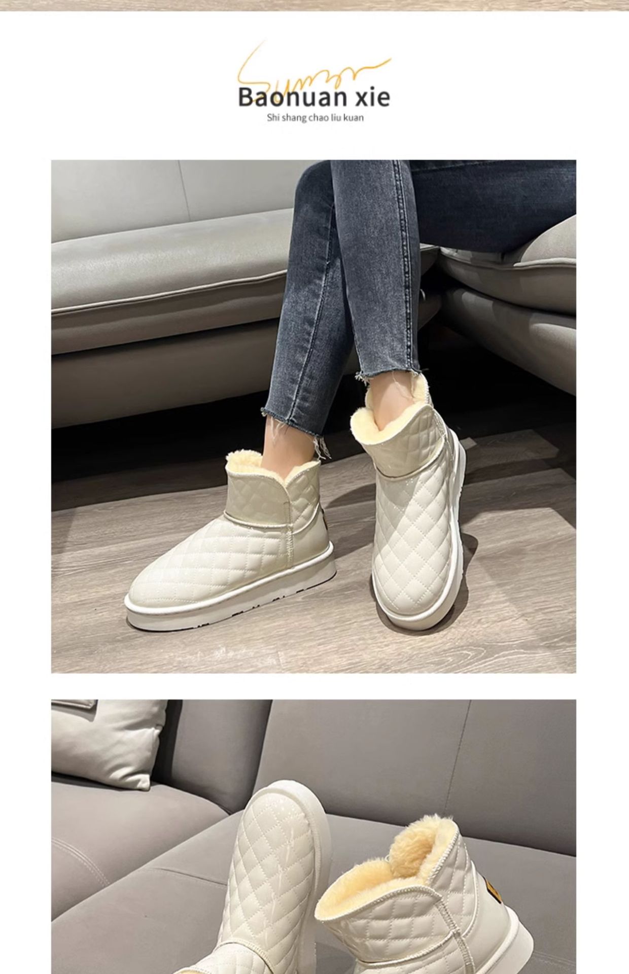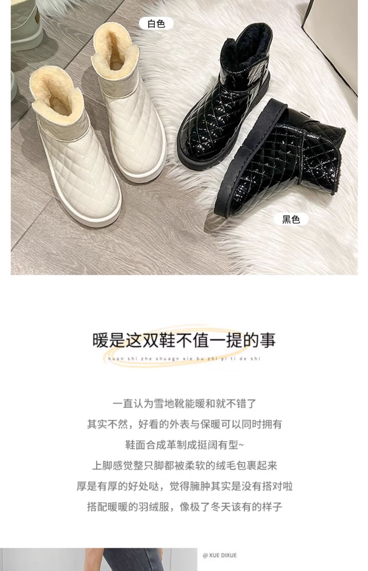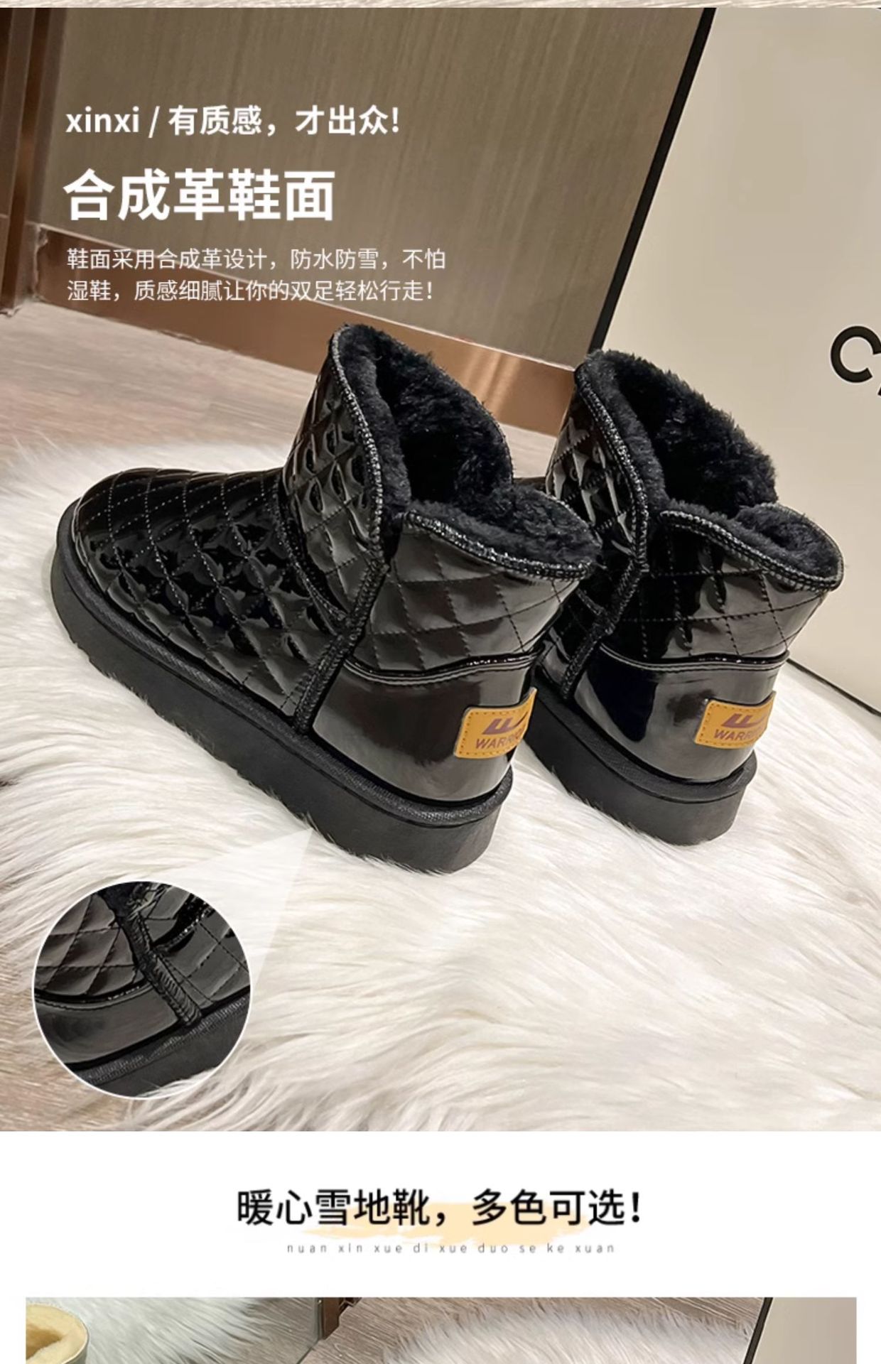 回力雪地靴女冬季2024新款加绒加厚面包鞋皮面防水保暖外穿雪地棉