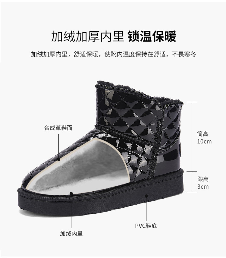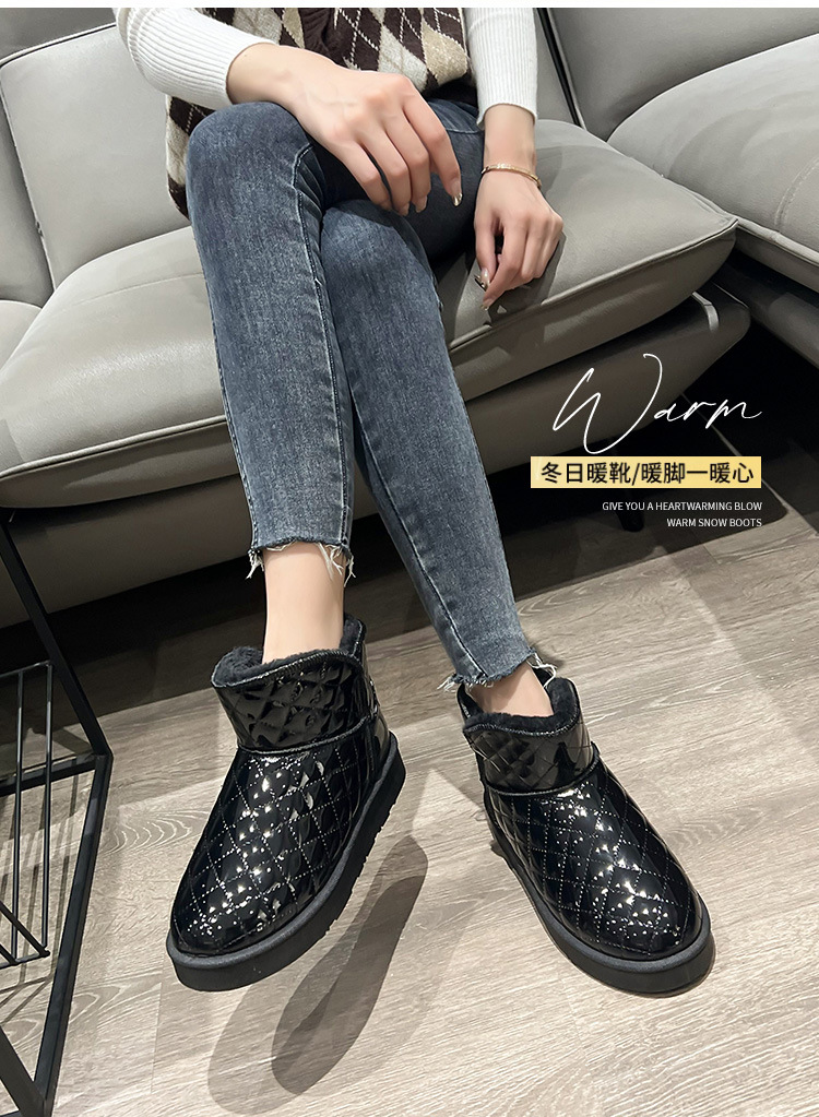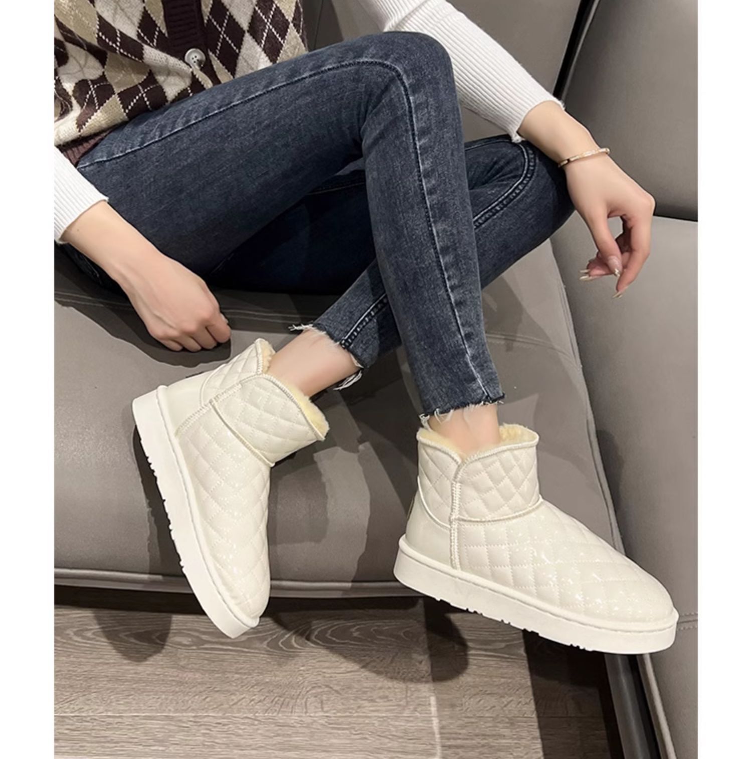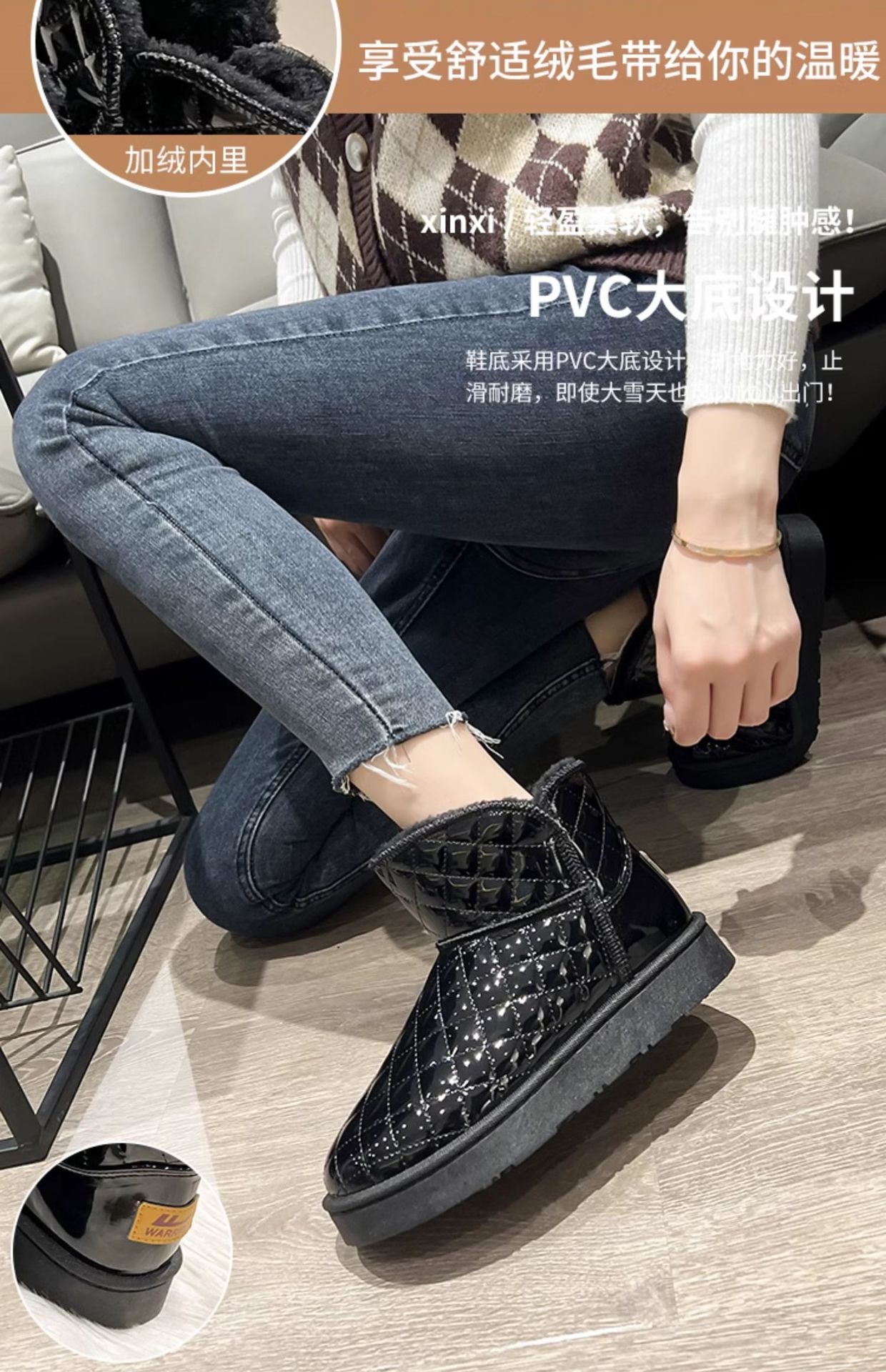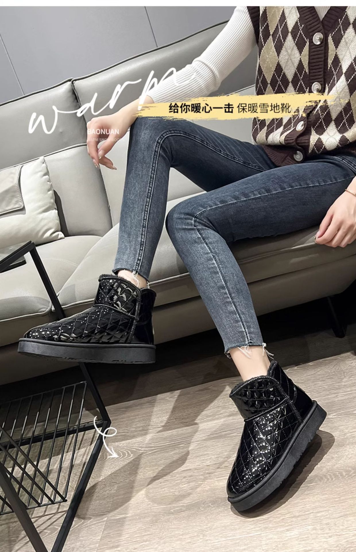 回力雪地靴女冬季2024新款加绒加厚面包鞋皮面防水保暖外穿雪地棉