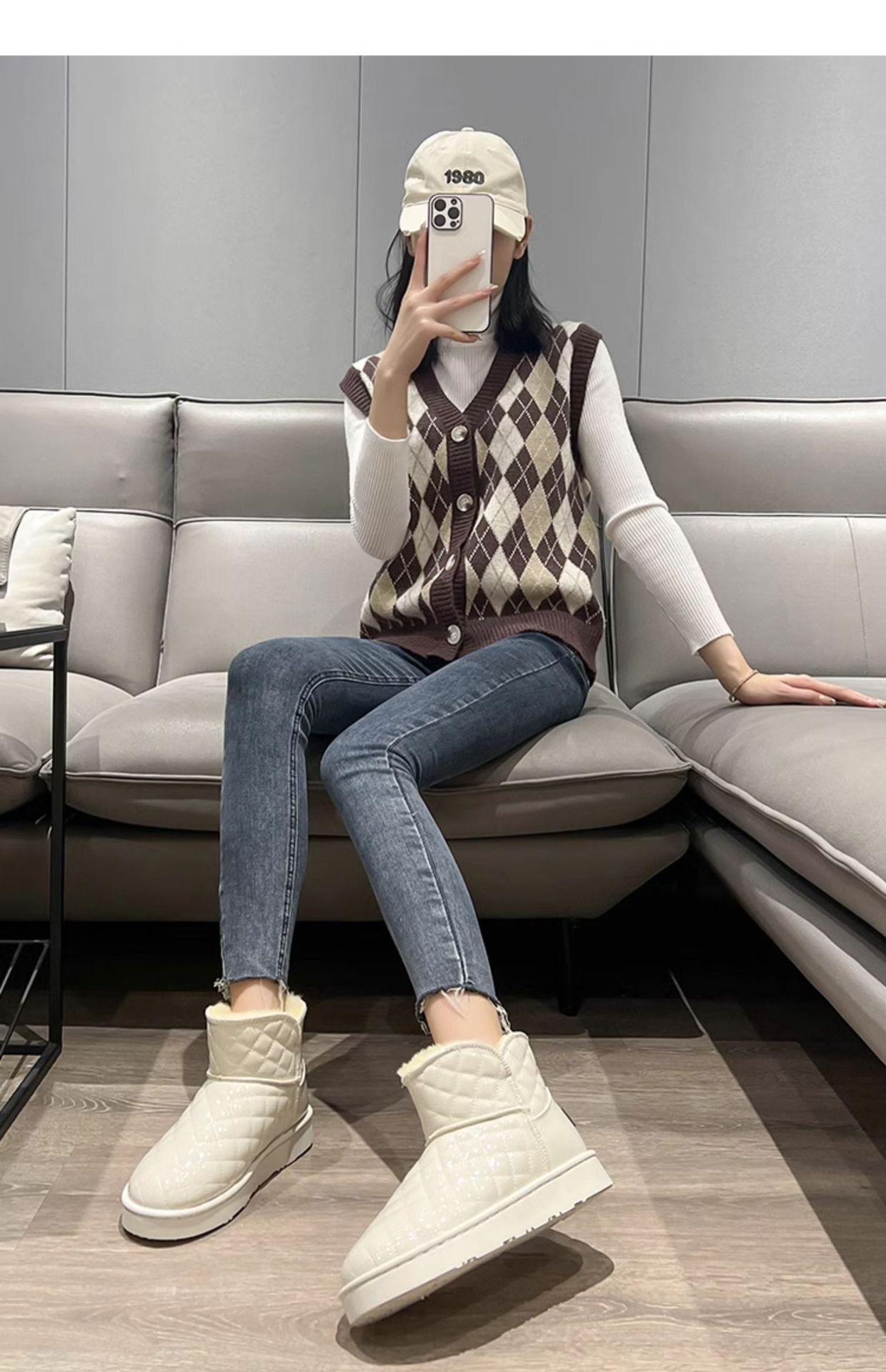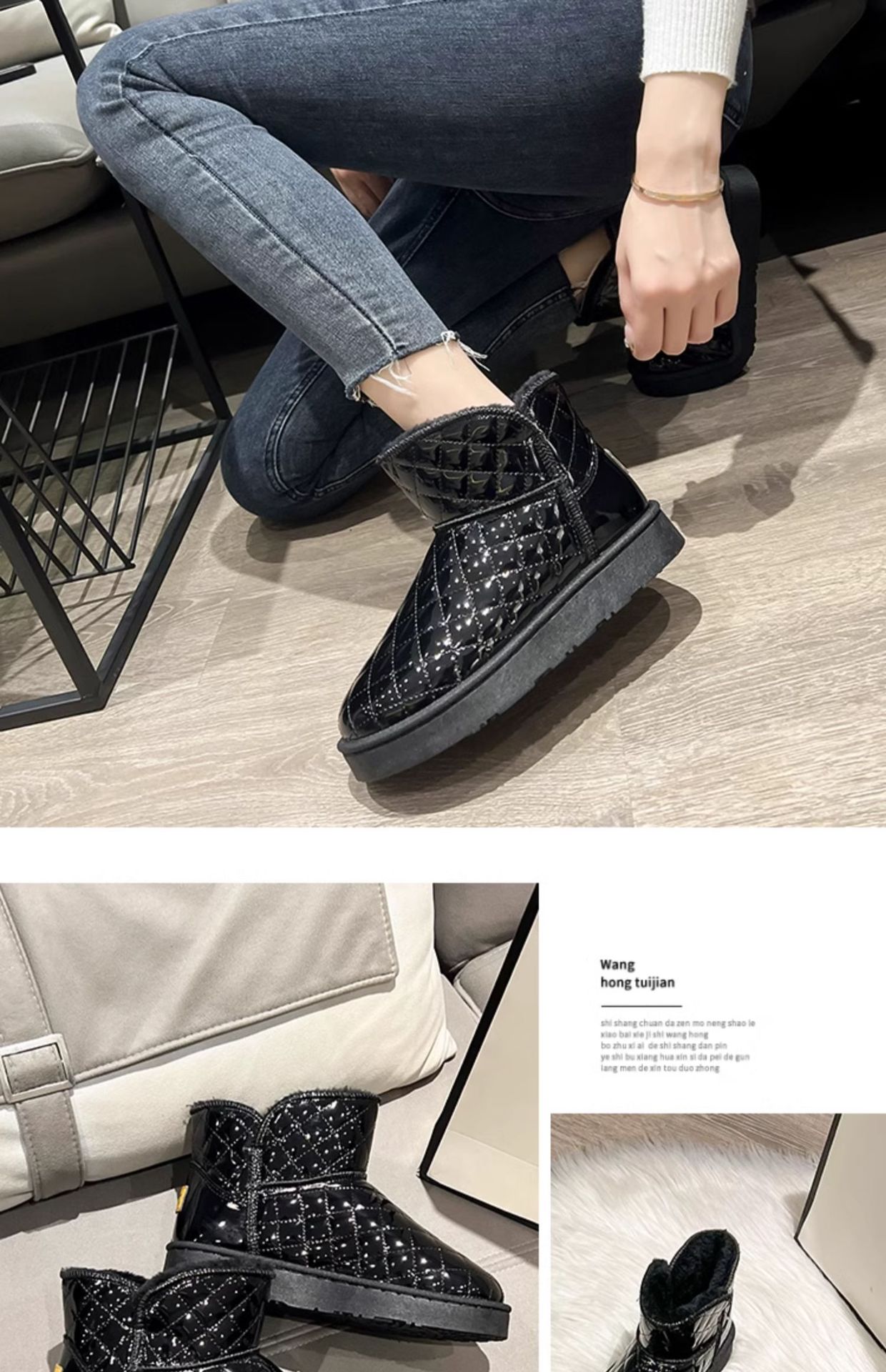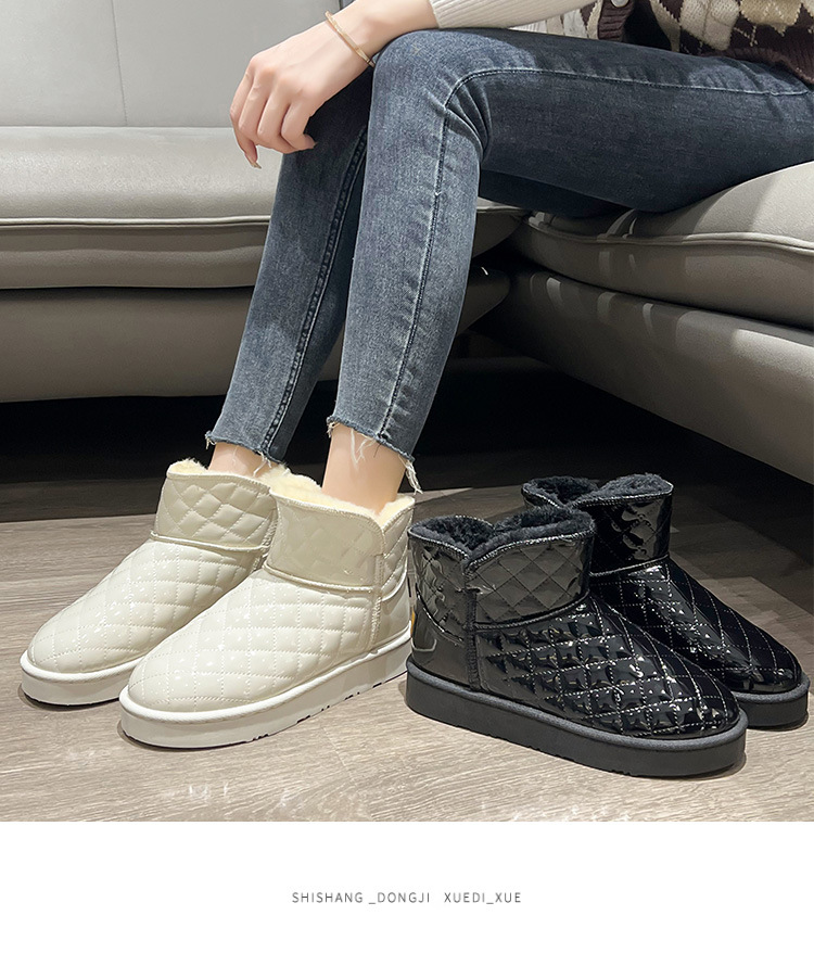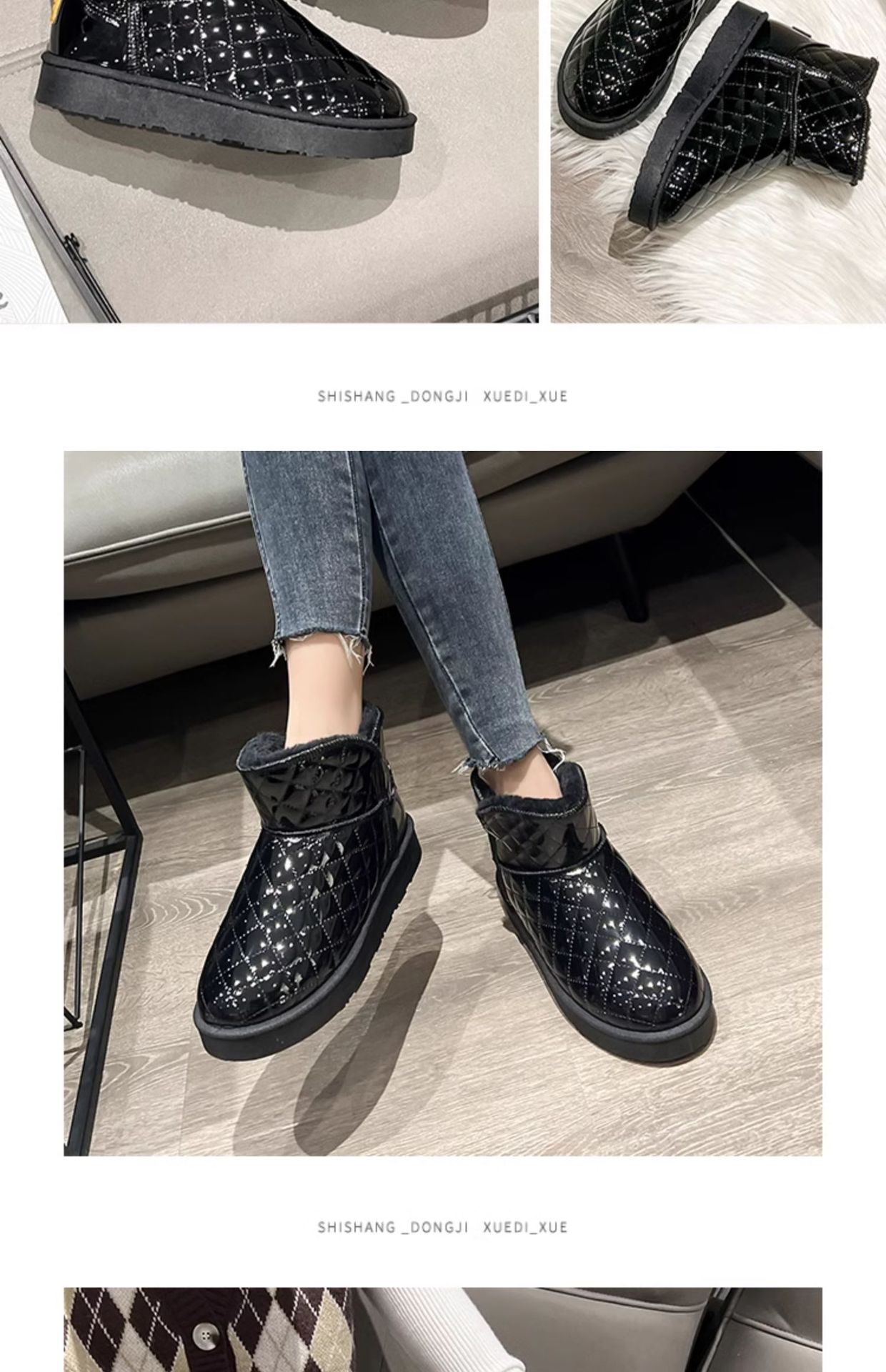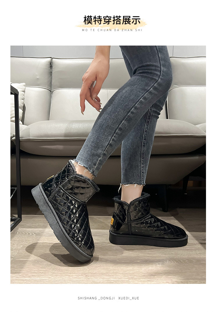 回力雪地靴女冬季2024新款加绒加厚面包鞋皮面防水保暖外穿雪地棉