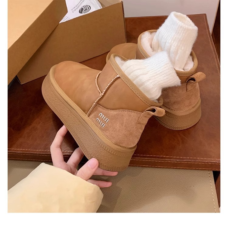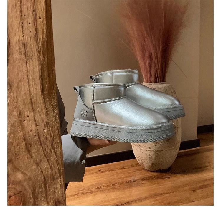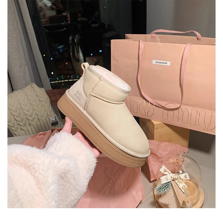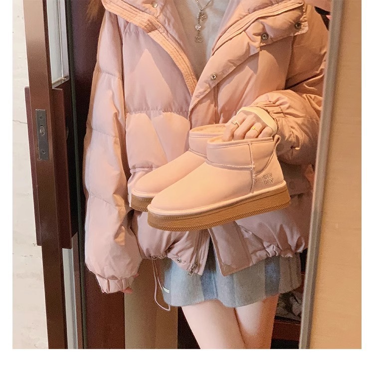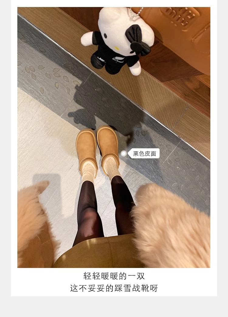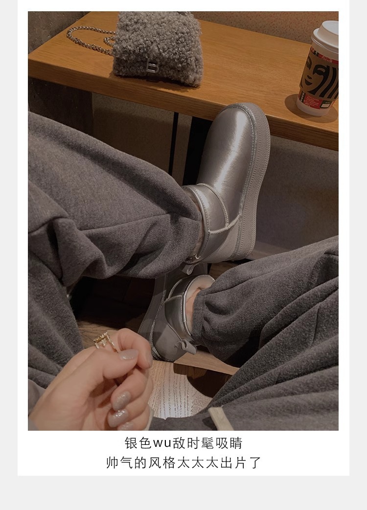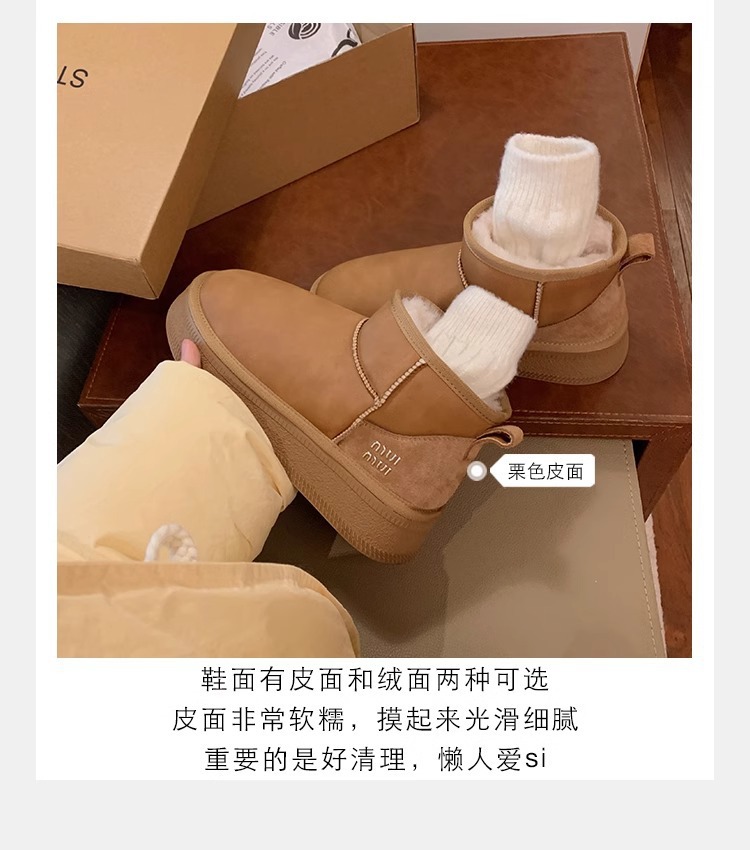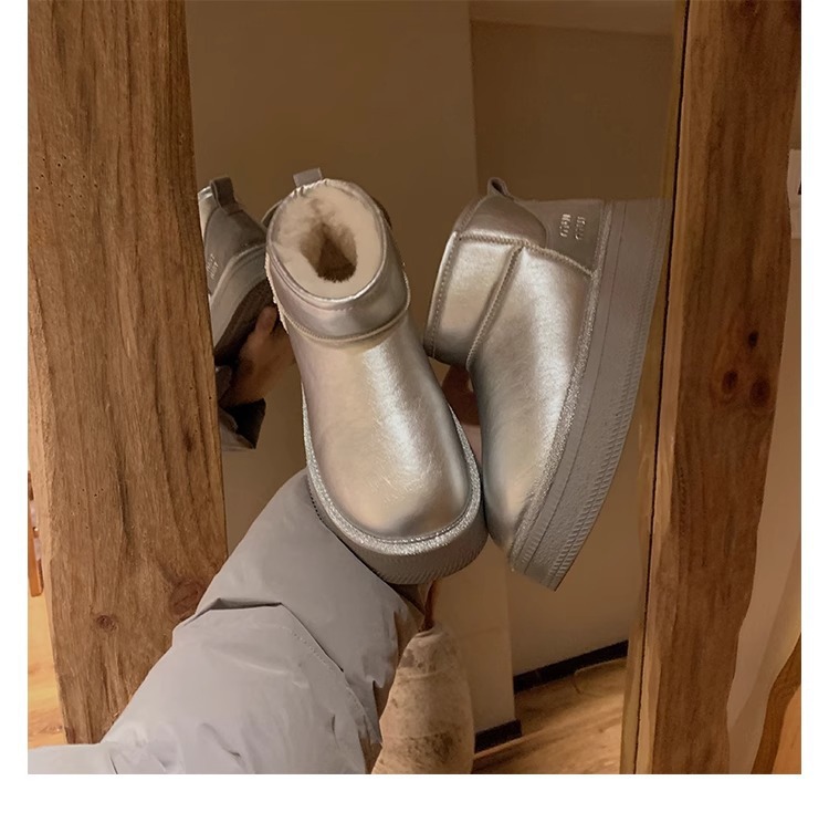 厚底皮面雪地靴女加绒加厚休闲短靴2024新款冬季防水防滑面包棉鞋