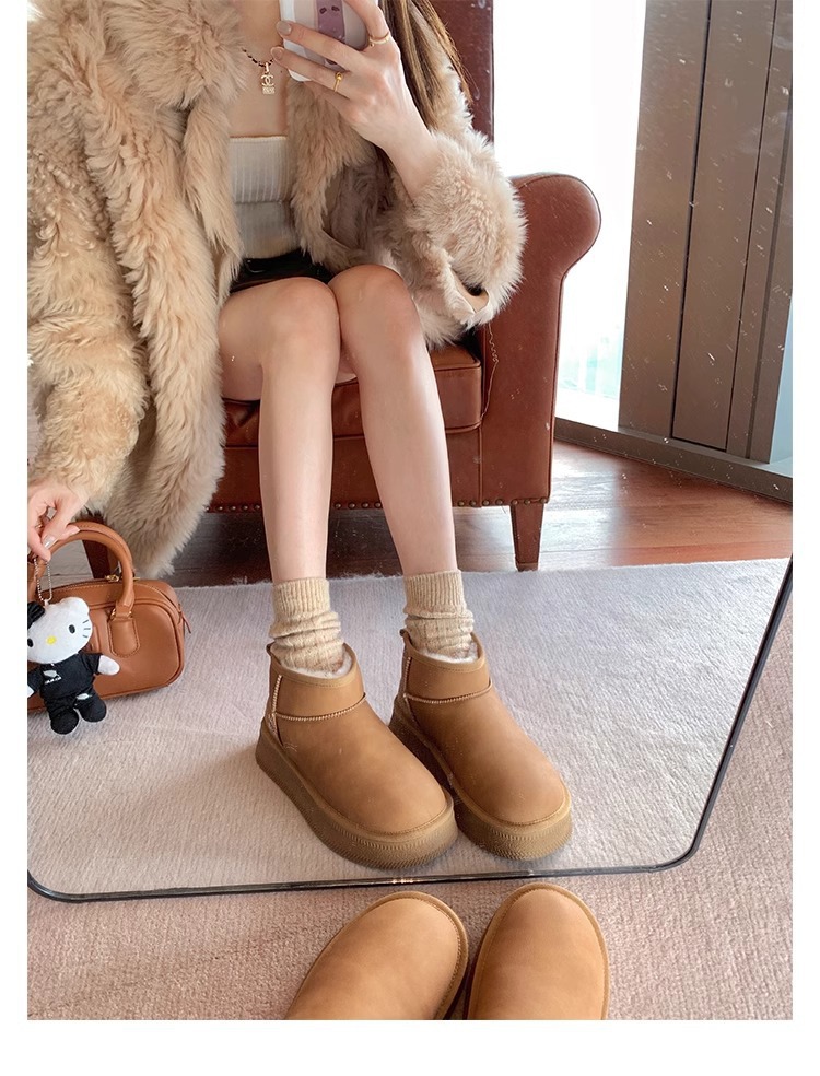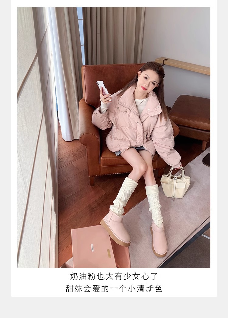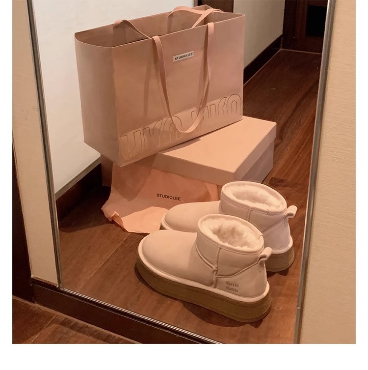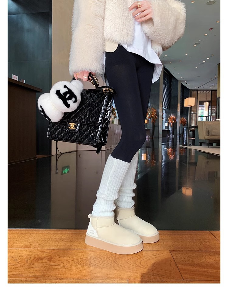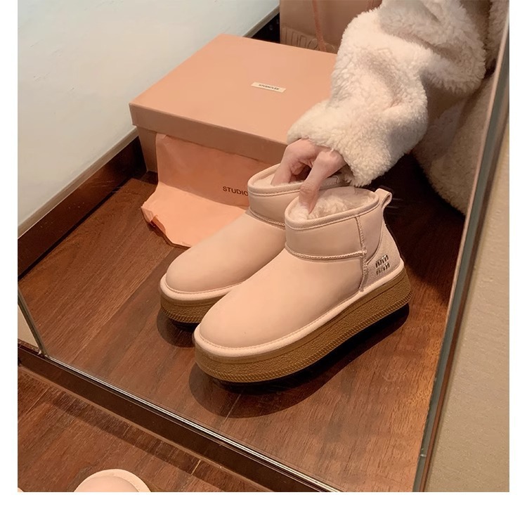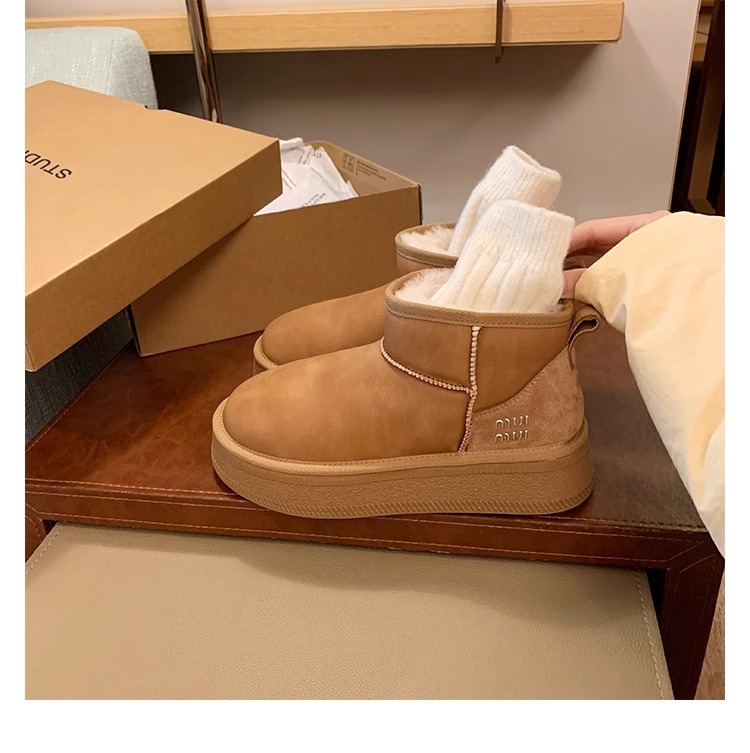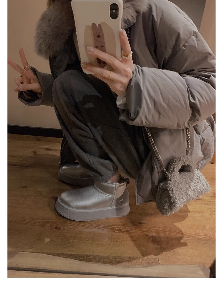 厚底皮面雪地靴女加绒加厚休闲短靴2024新款冬季防水防滑面包棉鞋