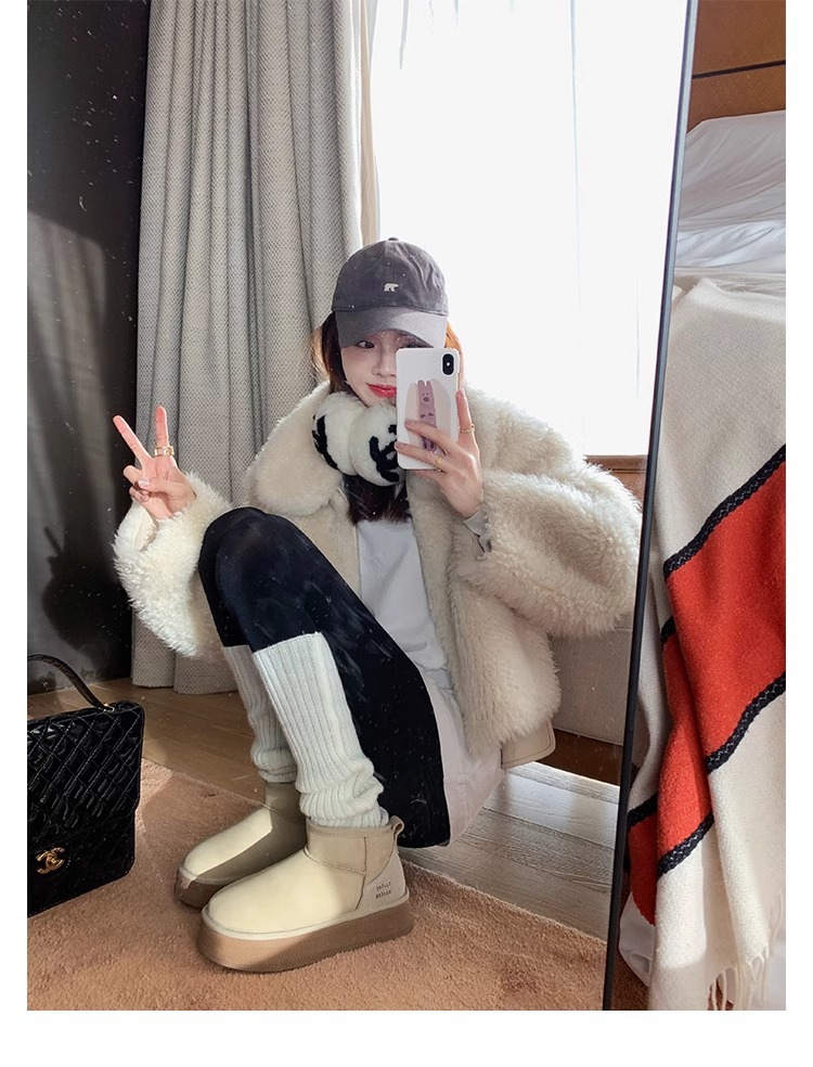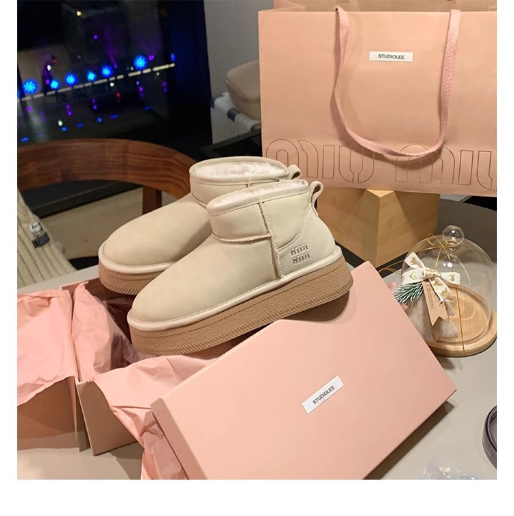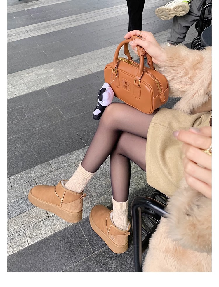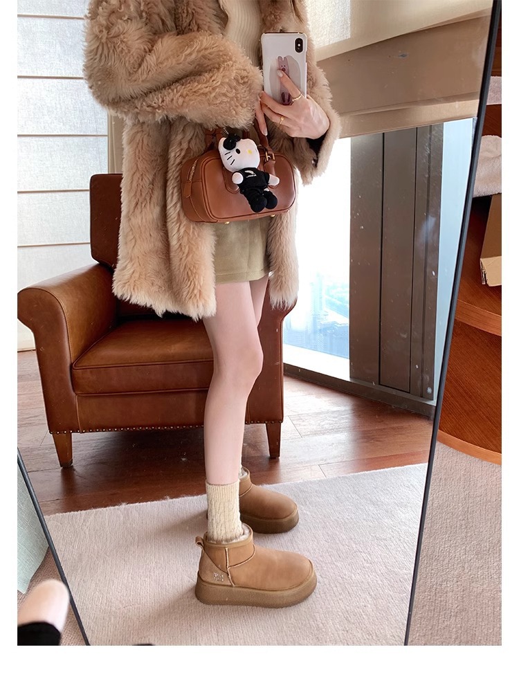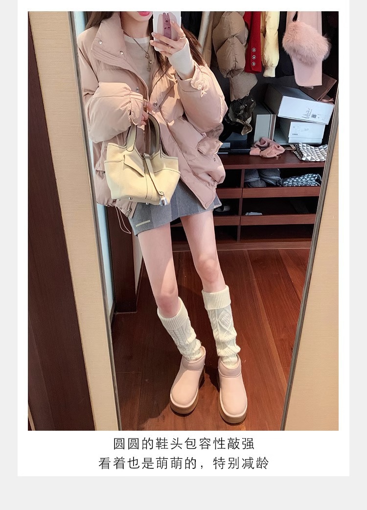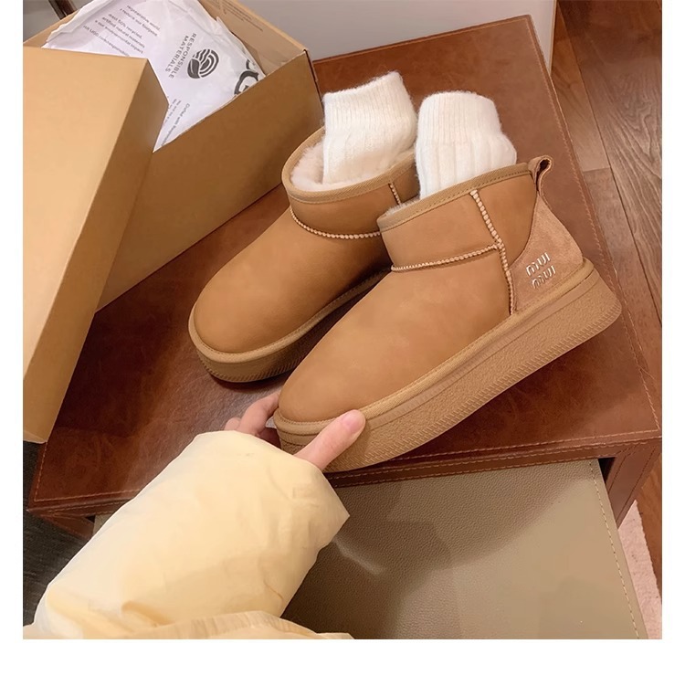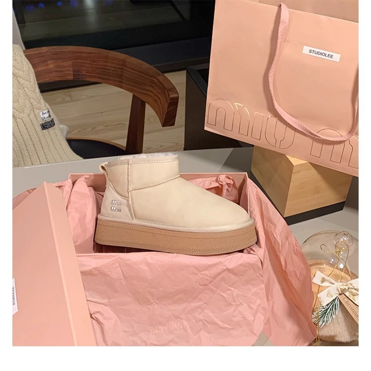 厚底皮面雪地靴女加绒加厚休闲短靴2024新款冬季防水防滑面包棉鞋