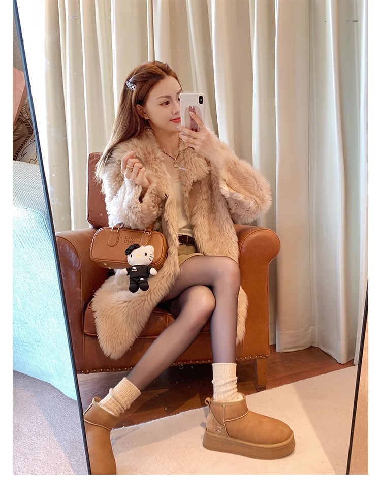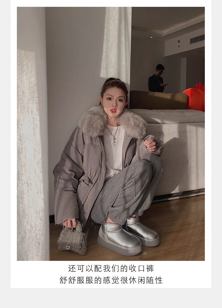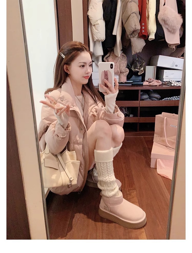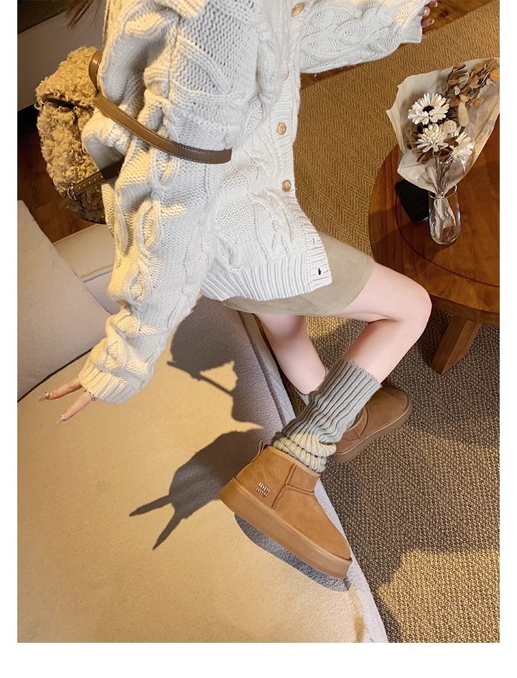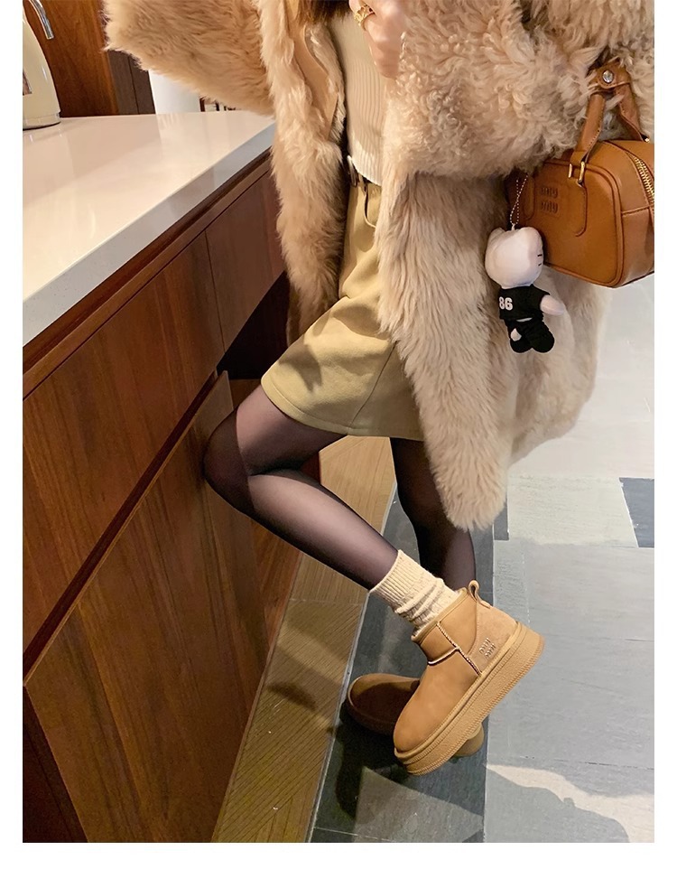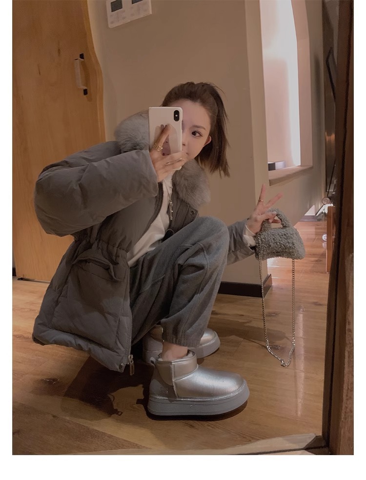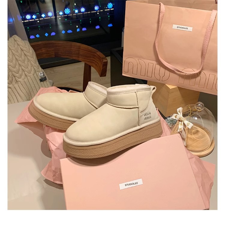 厚底皮面雪地靴女加绒加厚休闲短靴2024新款冬季防水防滑面包棉鞋