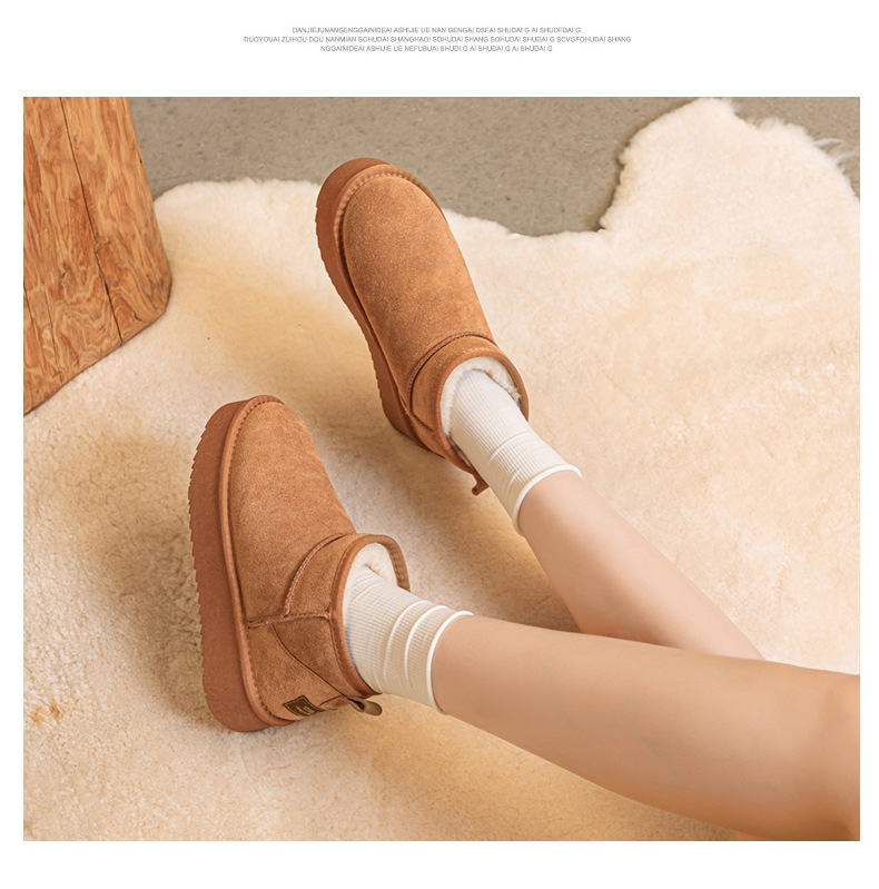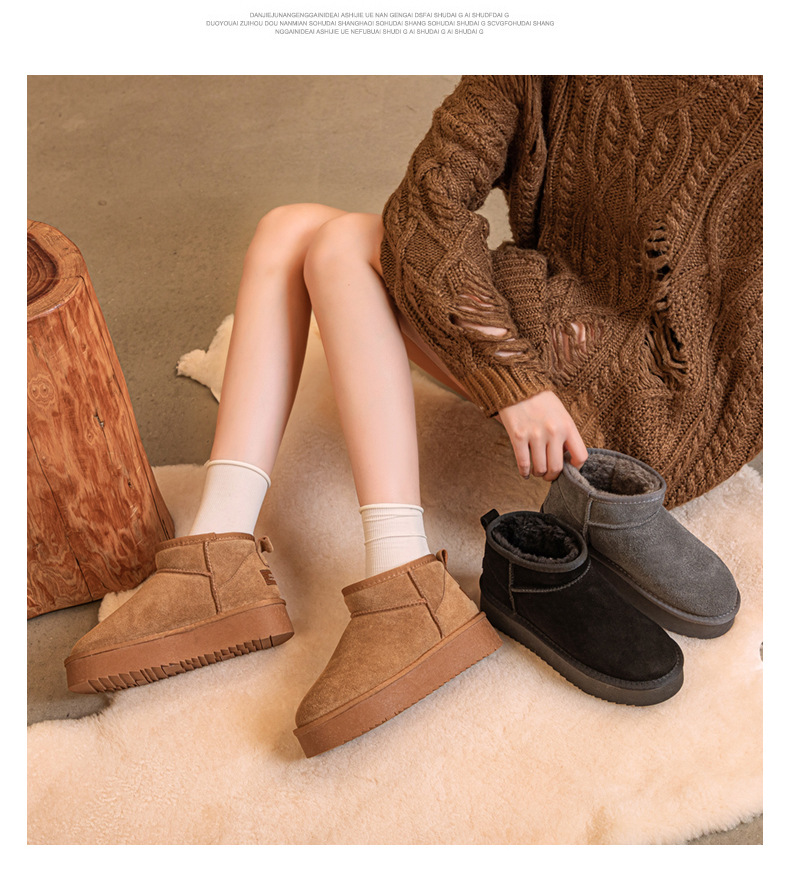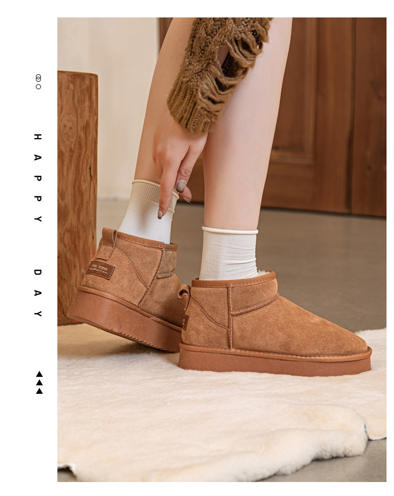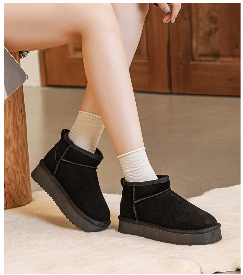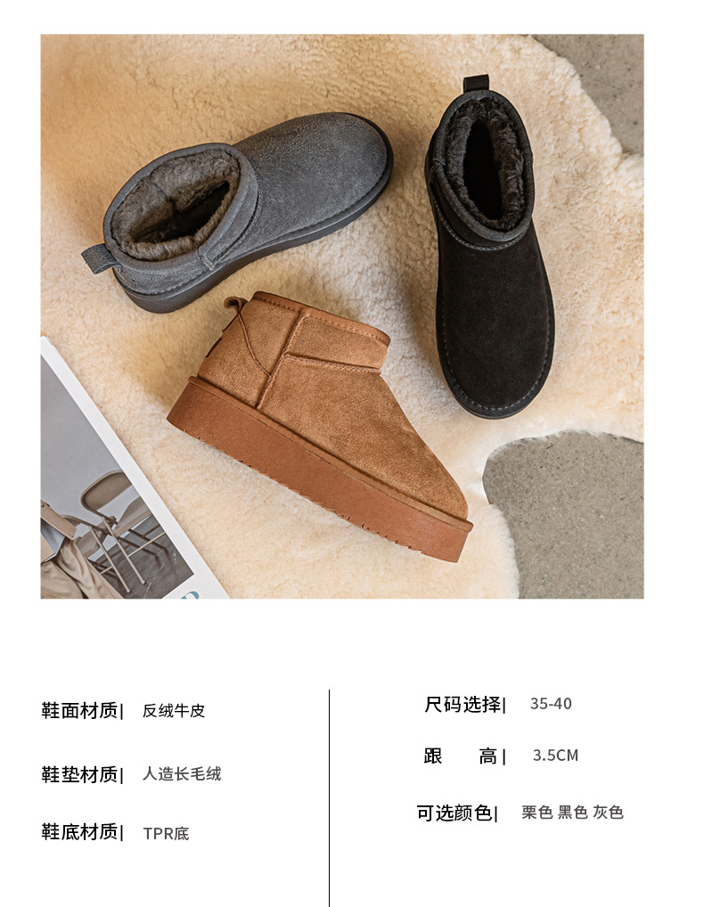 真皮雪地靴冬季新款冬雨同款皮毛一体厚底短筒靴加绒加厚保暖女鞋