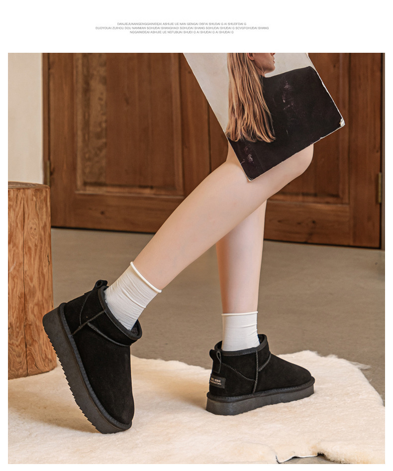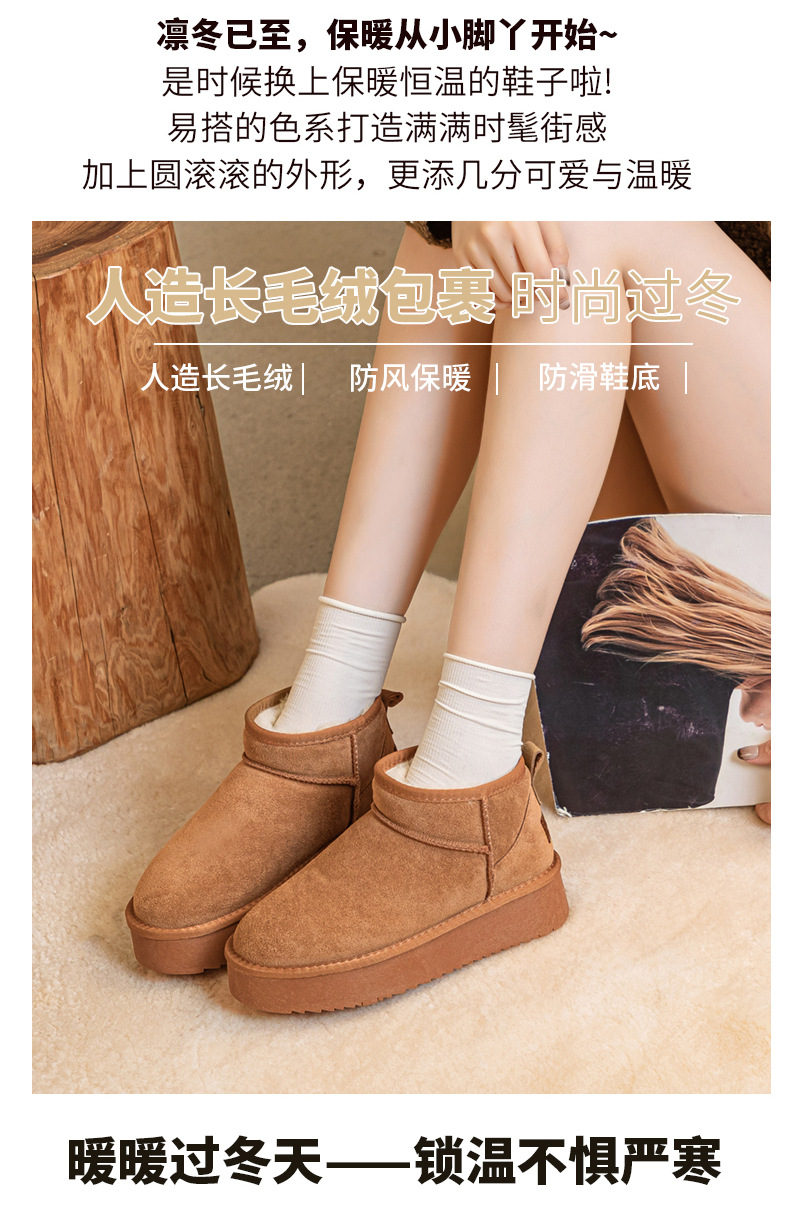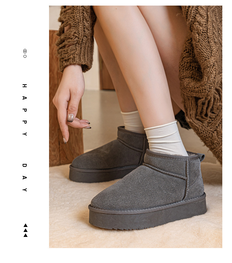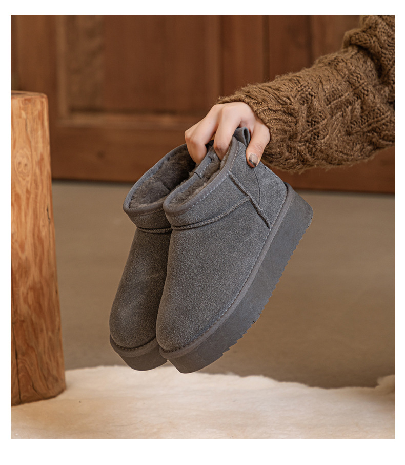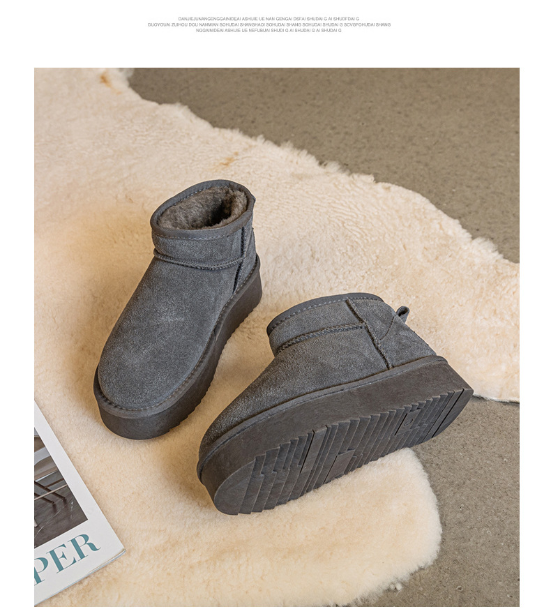 真皮雪地靴冬季新款冬雨同款皮毛一体厚底短筒靴加绒加厚保暖女鞋