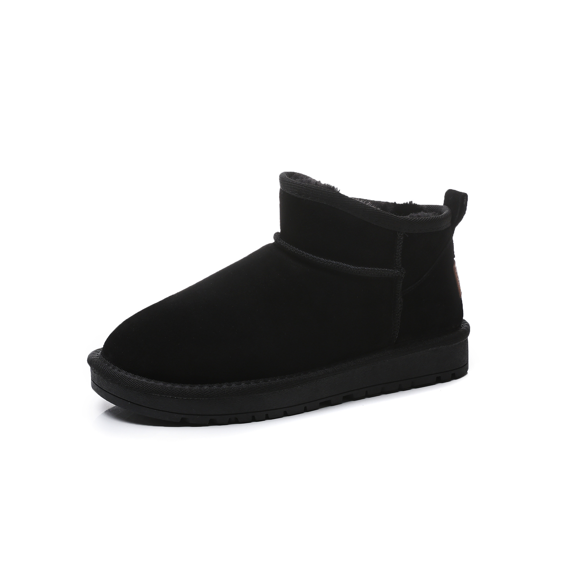 真皮雪地靴女冬天新款低帮牛皮大码保暖棉鞋子情侣款加厚平跟靴子