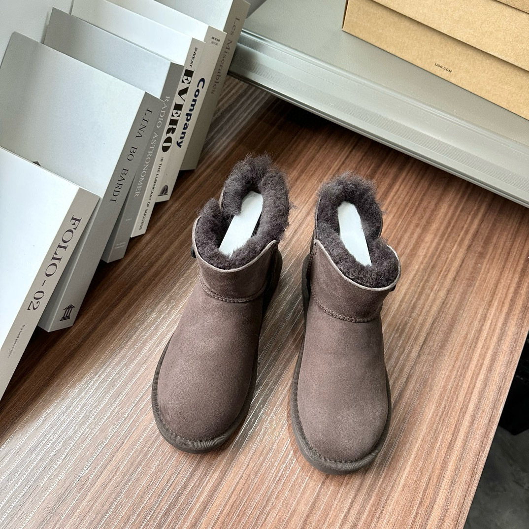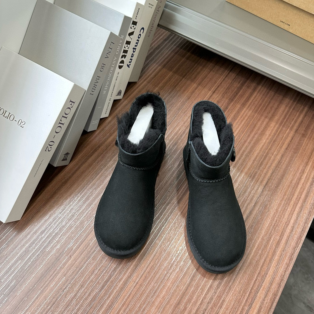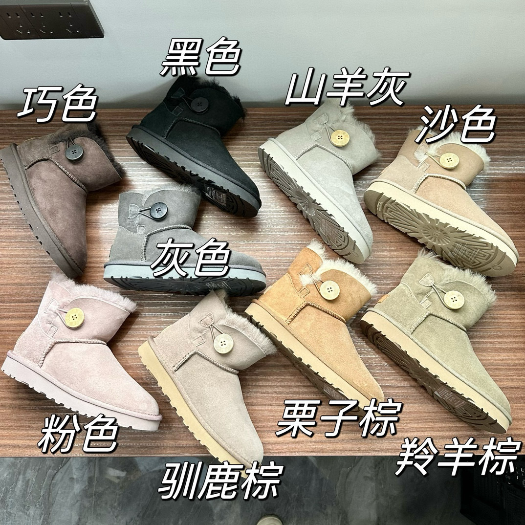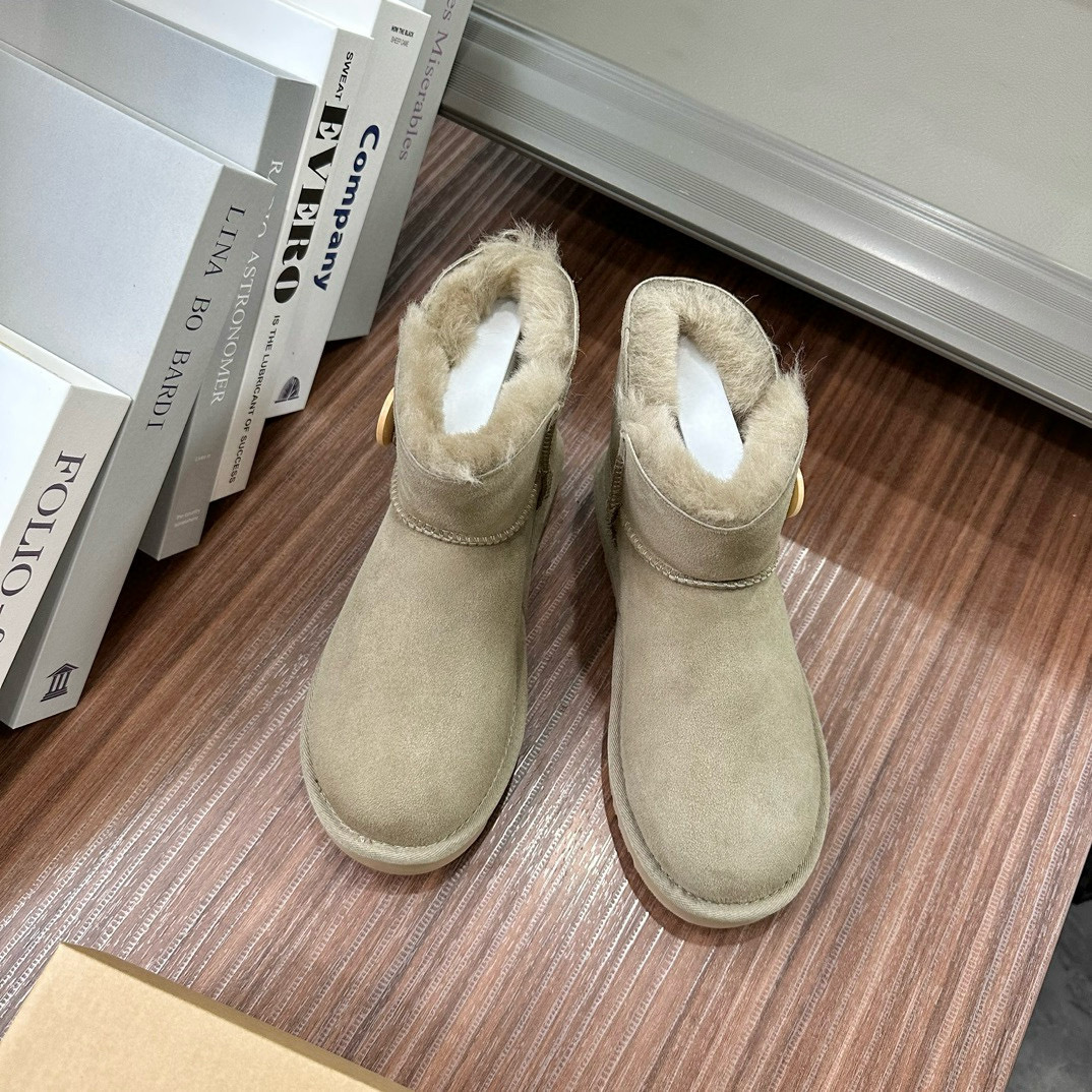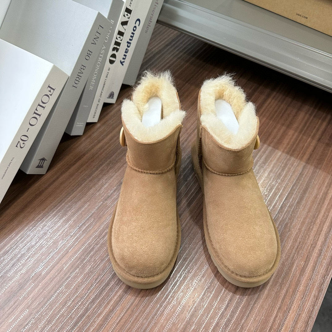 桑坡扣子款羊皮毛一体低筒基本款木扣雪地靴短筒秋冬新款羊毛靴