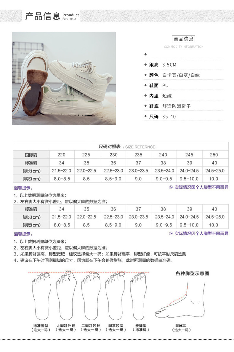 加绒加厚保暖小白鞋女款2024秋冬季新款百搭二棉鞋子休闲运动板鞋