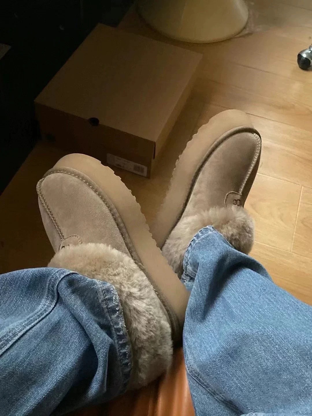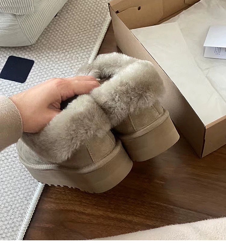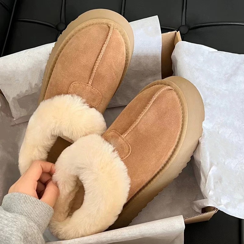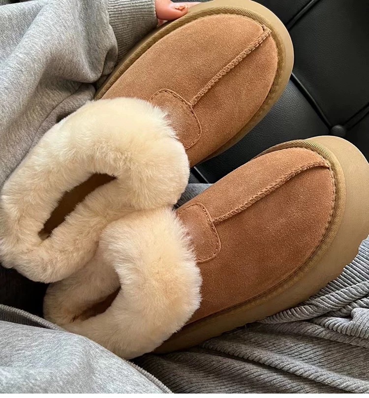塔茨特厚底2024年冬季新款雪地靴女羊皮毛一体加厚保暖低帮懒人鞋