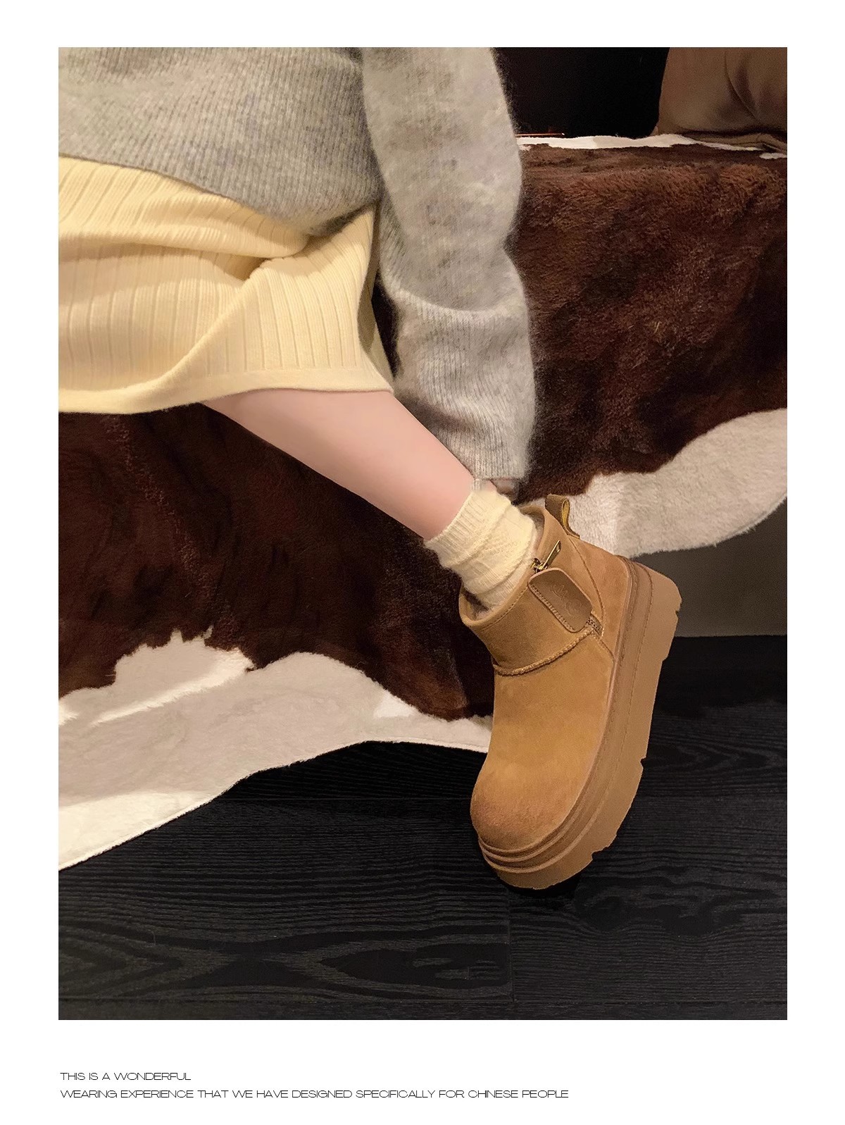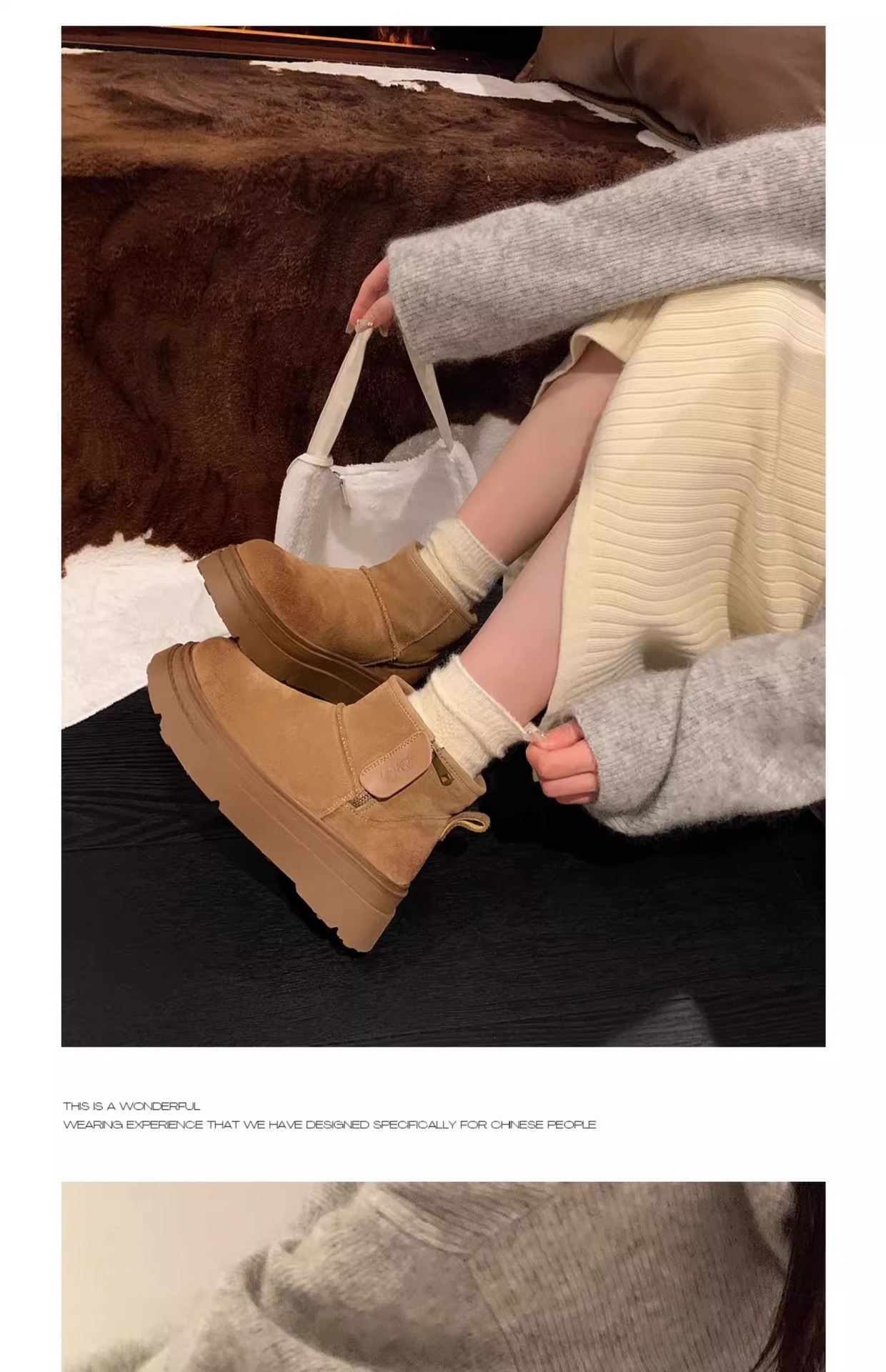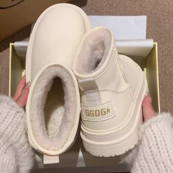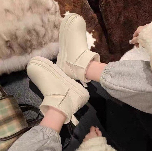 厚底雪地靴女皮毛一体雪地棉2024冬季新款皮面防水加绒东北大棉鞋