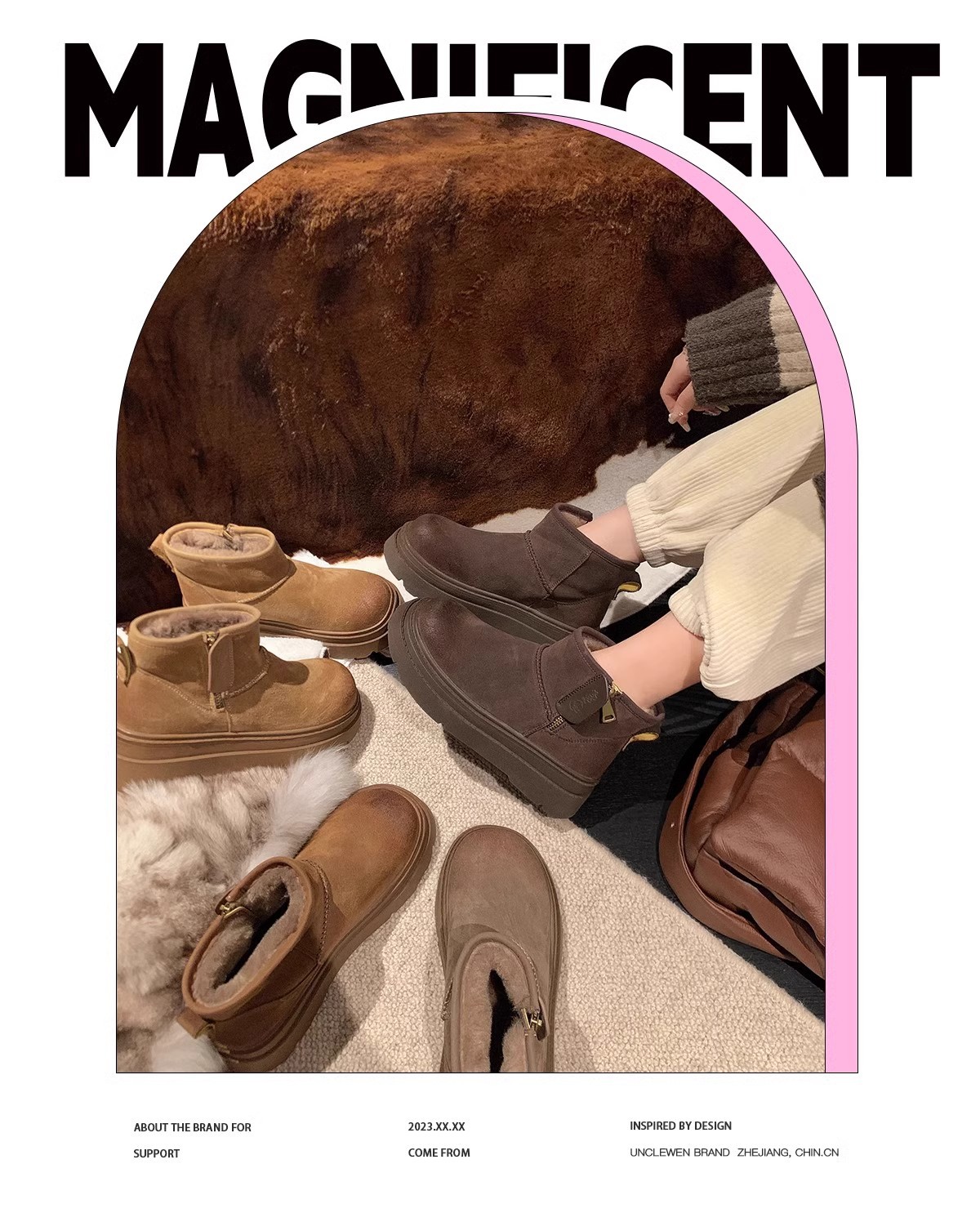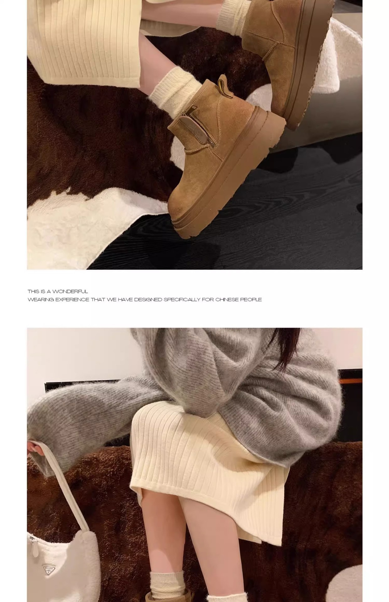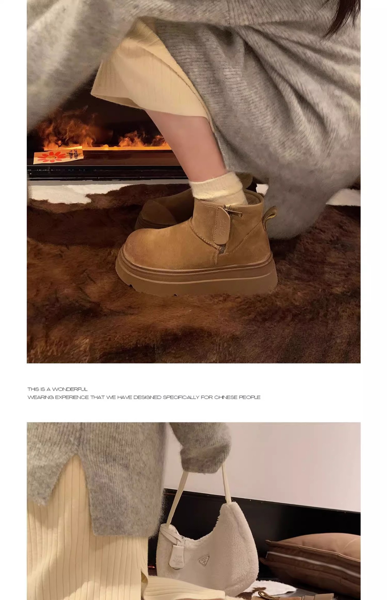 厚底雪地靴女皮毛一体雪地棉2024冬季新款皮面防水加绒东北大棉鞋